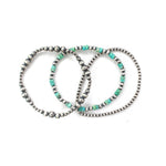 2025 BLACK FRIDAY Navajo Pearl Stretch Bracelet Set of 3 - All Silver/Turquoise