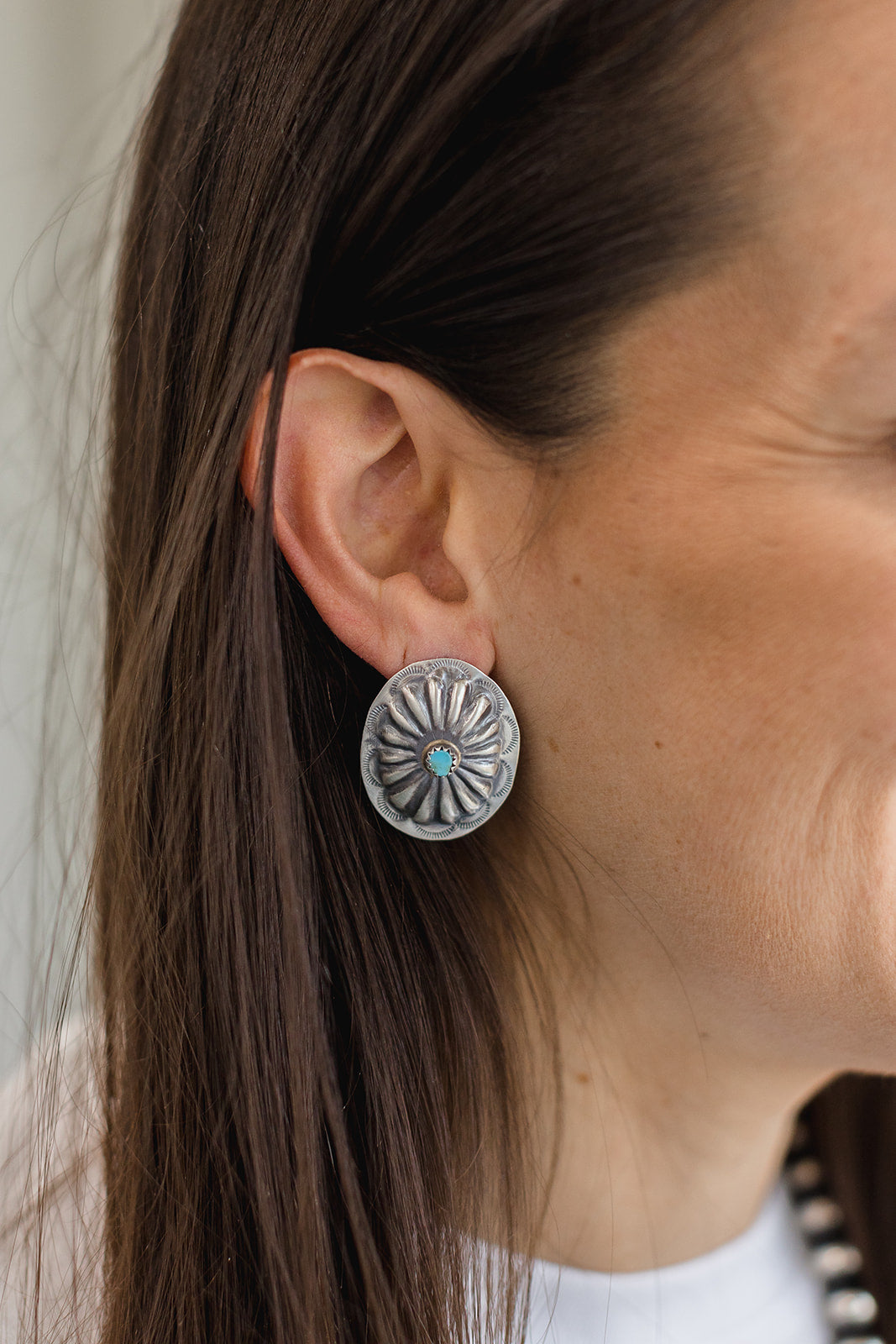 Set Includes: (1) Pair Concho Earrings, (1) 8mm Navajo Pearl Studs