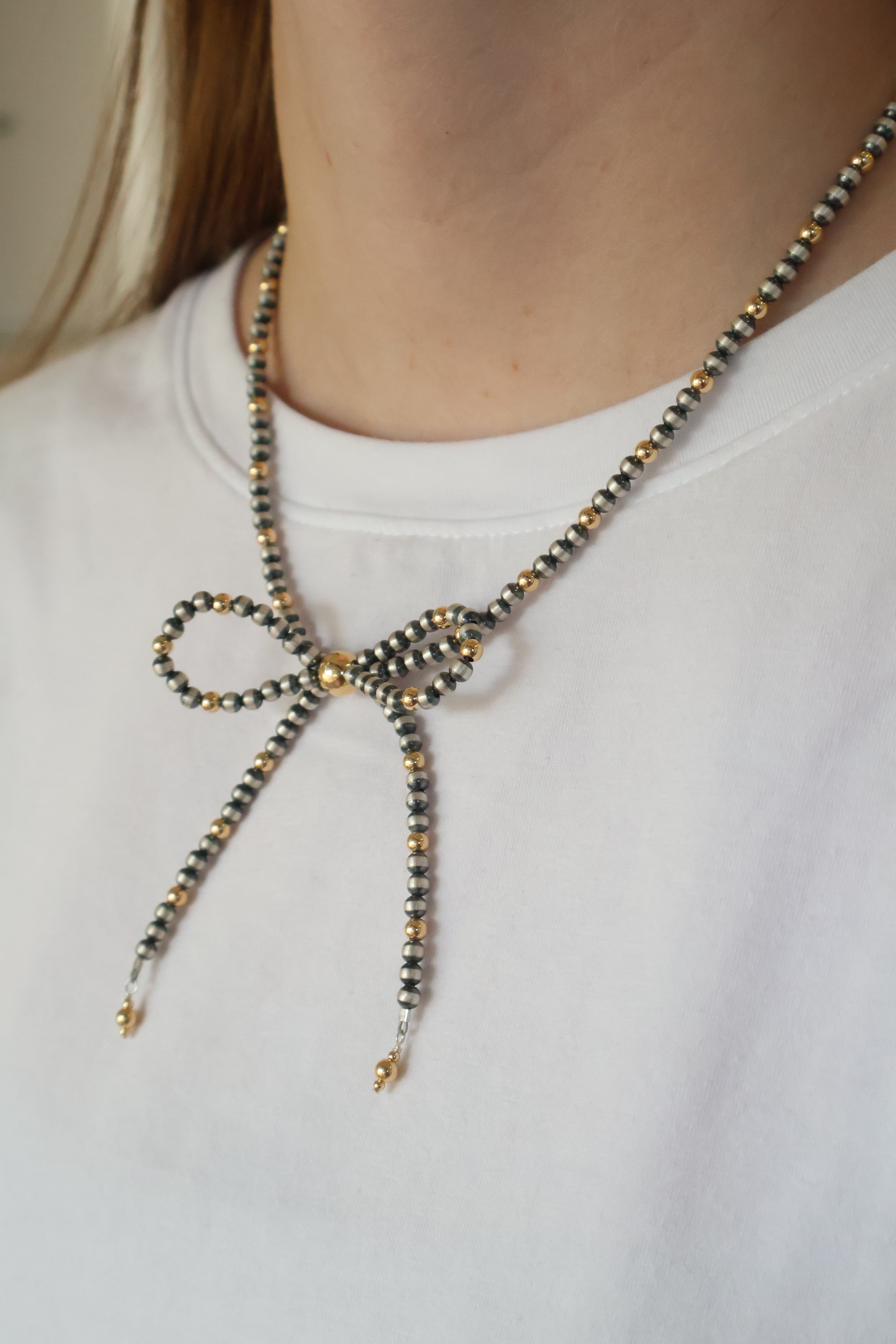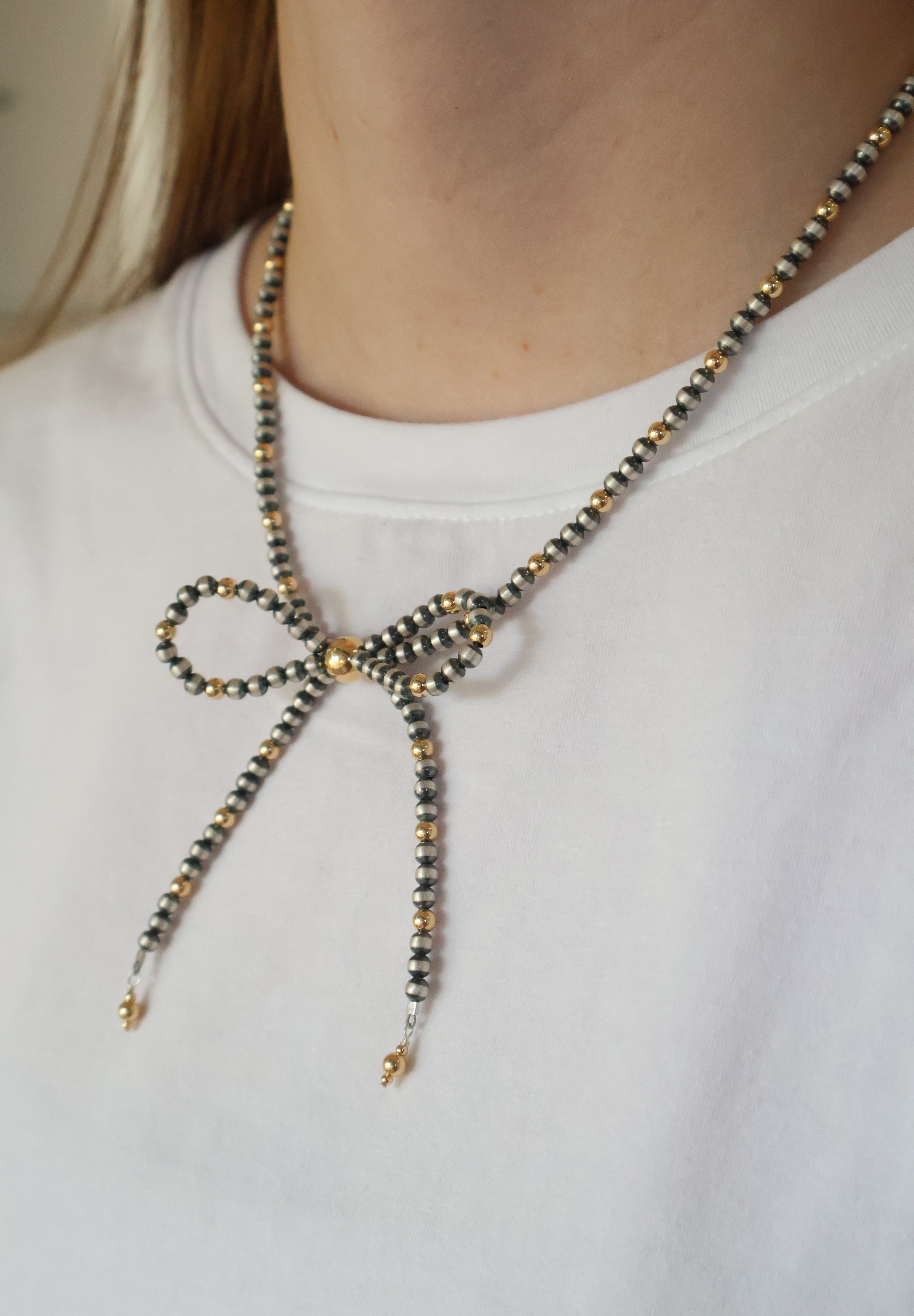 14k Gold Dipped Navajo Pearl Bow Necklace (18")
