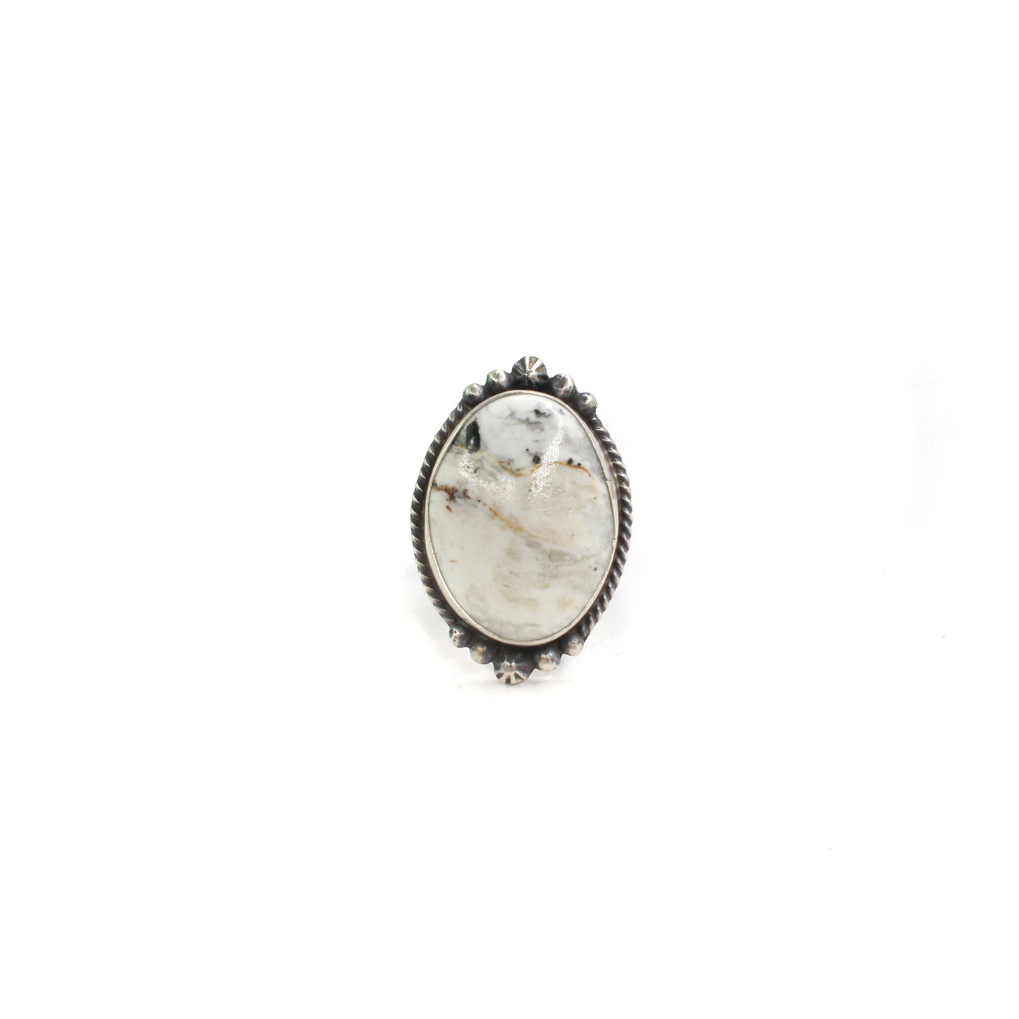 White Buffalo is in fact NOT turquoise. Although White Buffalo is often sold as turquoise, it's classification is actually magnesite and alumite. Its unique coloring comes from the presence of Calcite mineral. The only mine known to be home to White Buffalo is The Dry Creek Mine in Tonopah, NV. It was first discovered by the Otteson family in 1993. The name derives from the Native American belief that white buffaloes are pure and rare like the white buffalo stone. The white stone is surrounded by black and brown flint-like chert which creates beautiful patterns, and sometimes in rare pieces, a spider-web matrix. The stone appears in veins, is as hard as turquoise (Mohs hardness scale of 5.5 to 7.5) and cuts and polishes like turquoise.