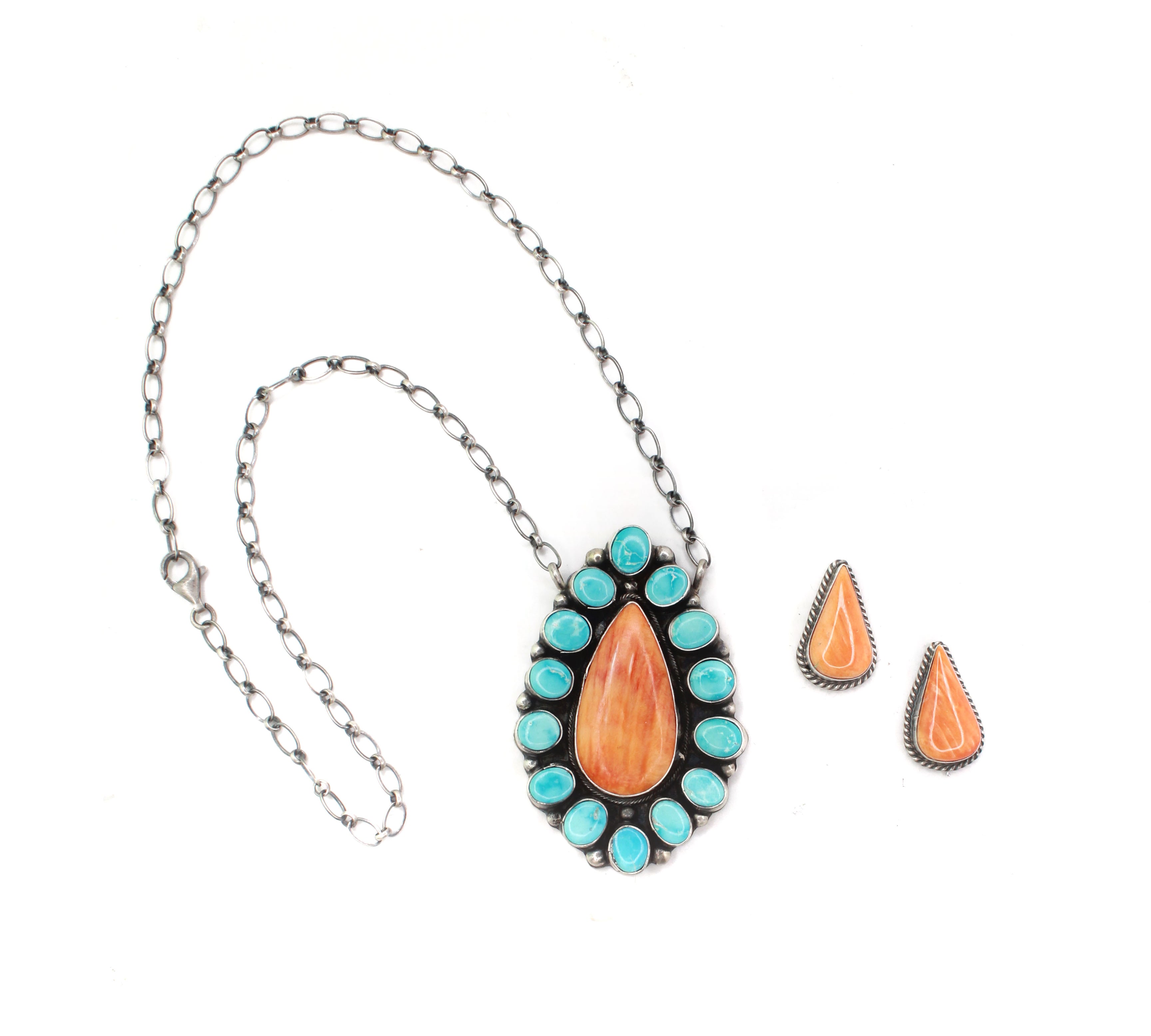 2025 BLACK FRIDAY: Pink Conch/Golden Hills Turquoise Pendant & Pink Conch Earrings