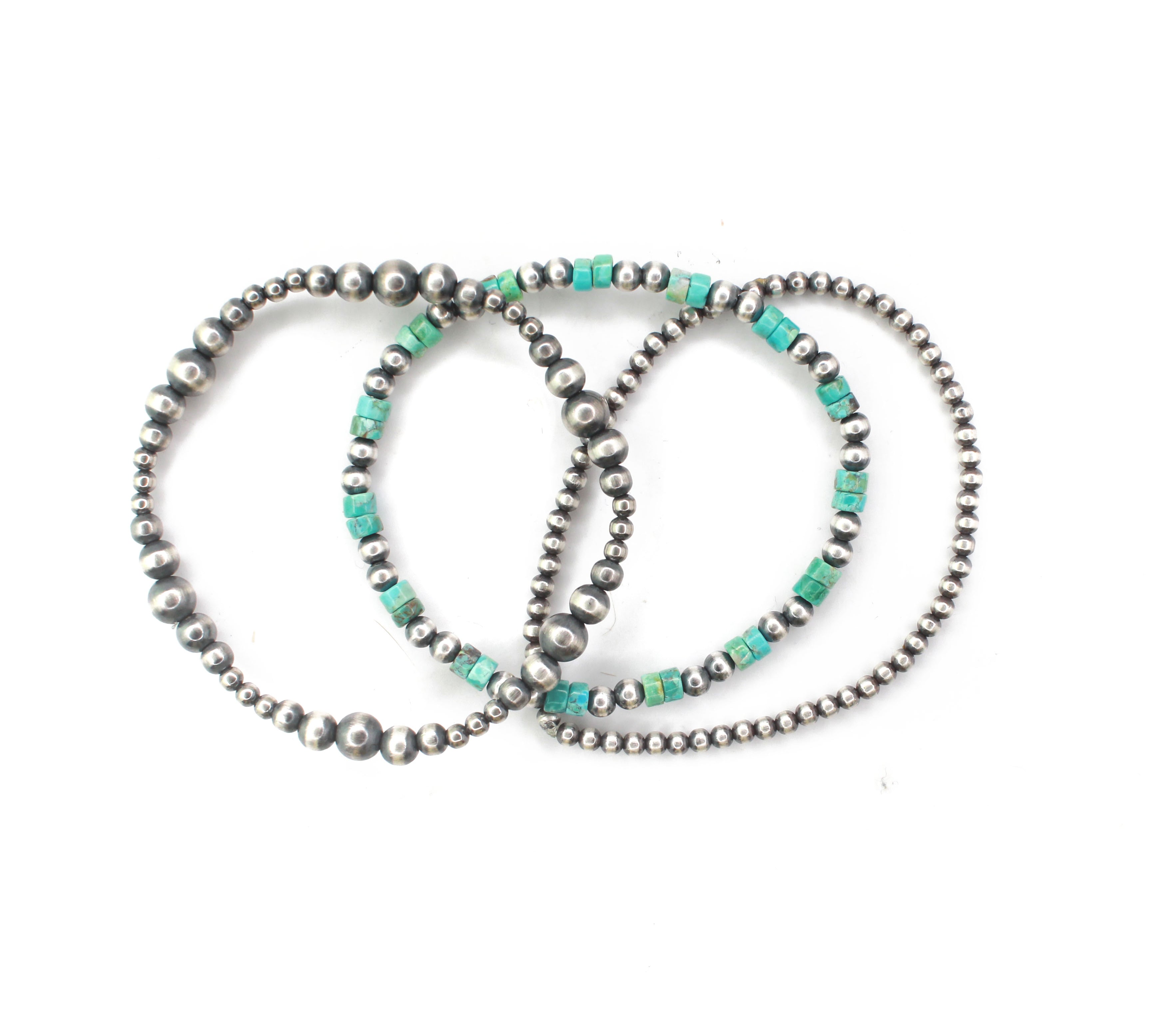 2025 BLACK FRIDAY Navajo Pearl Stretch Bracelet Set of 3 - All Silver/Turquoise