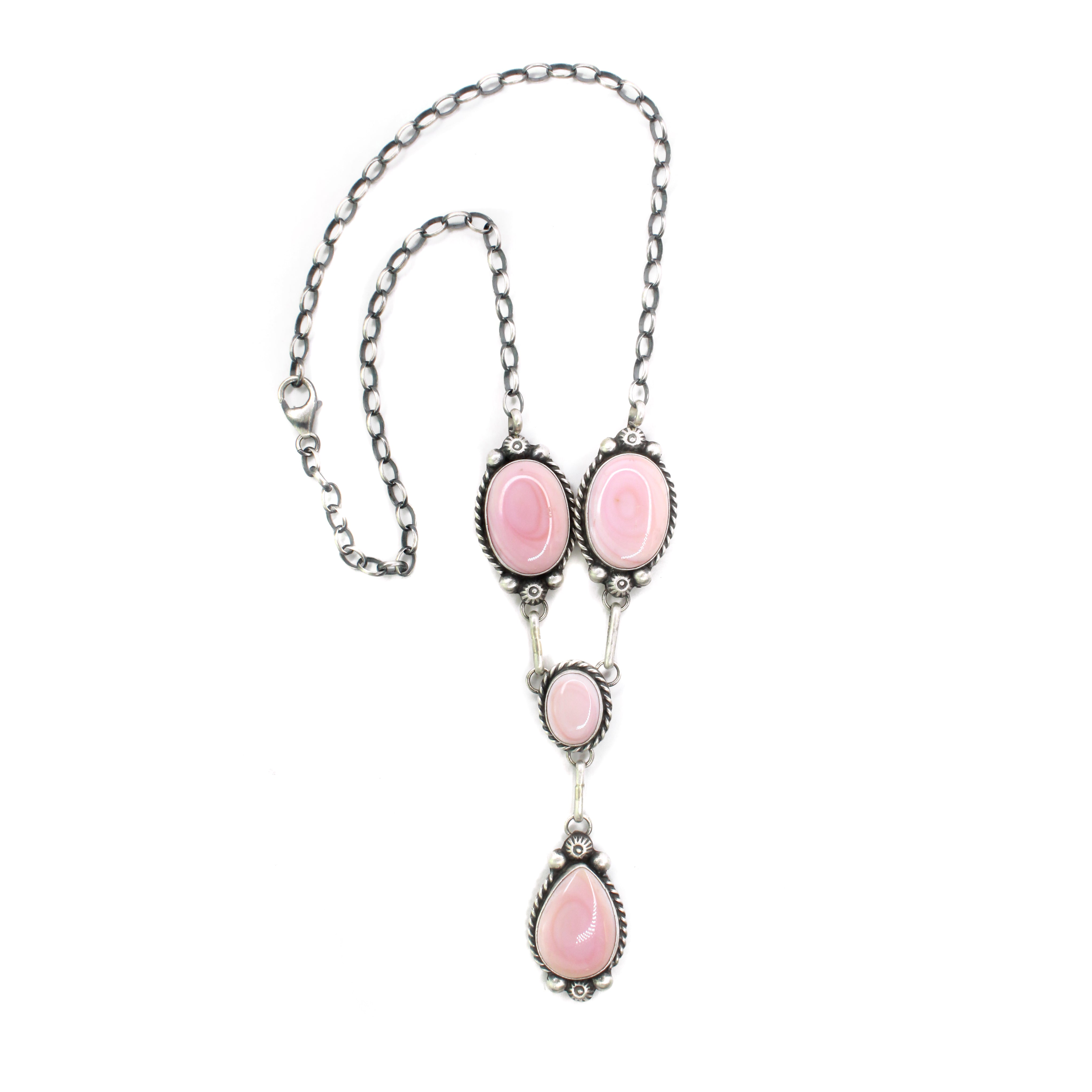 The 'end to end' length listed for Lariat necklaces is measured from clasp to hook and does not include the 'drop'. For a more accurate length reference, model photos are provided. Additionally, drop measurements are also included to give a complete view of the necklace's dimensions.