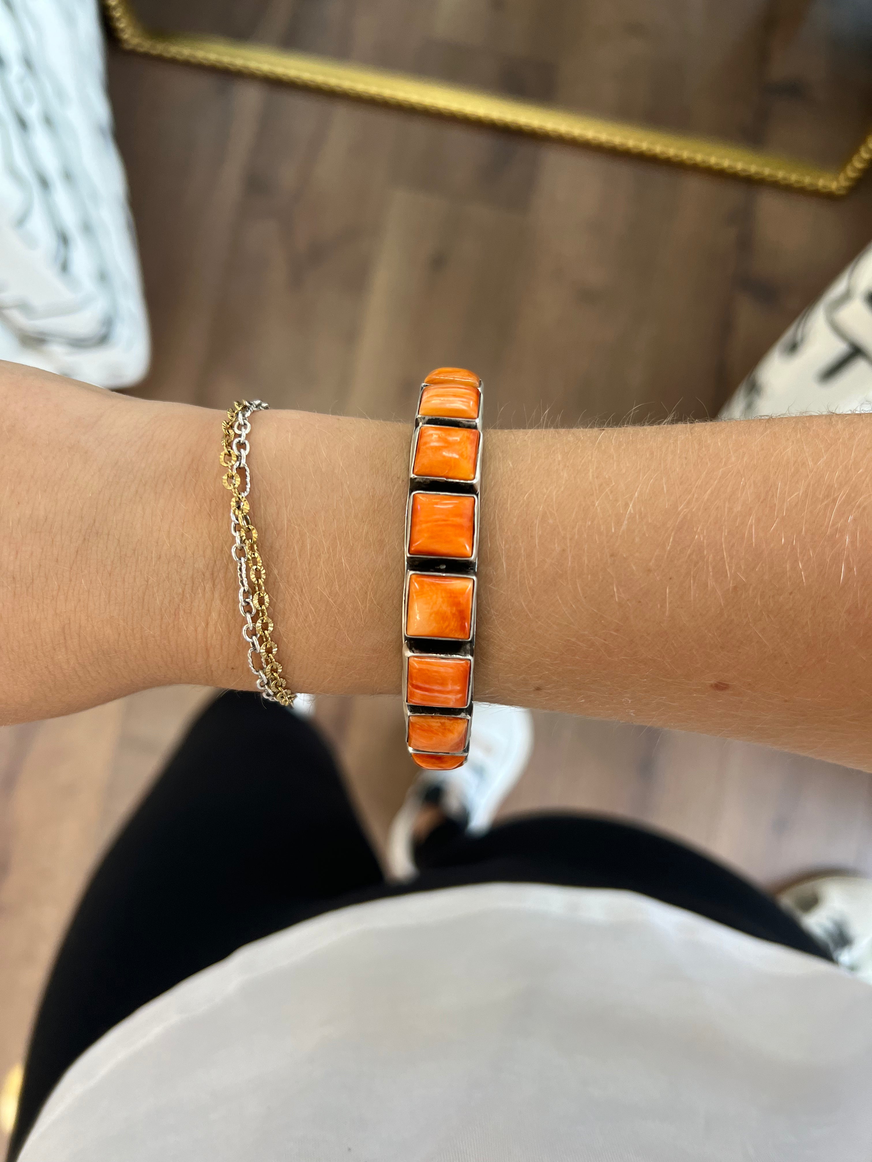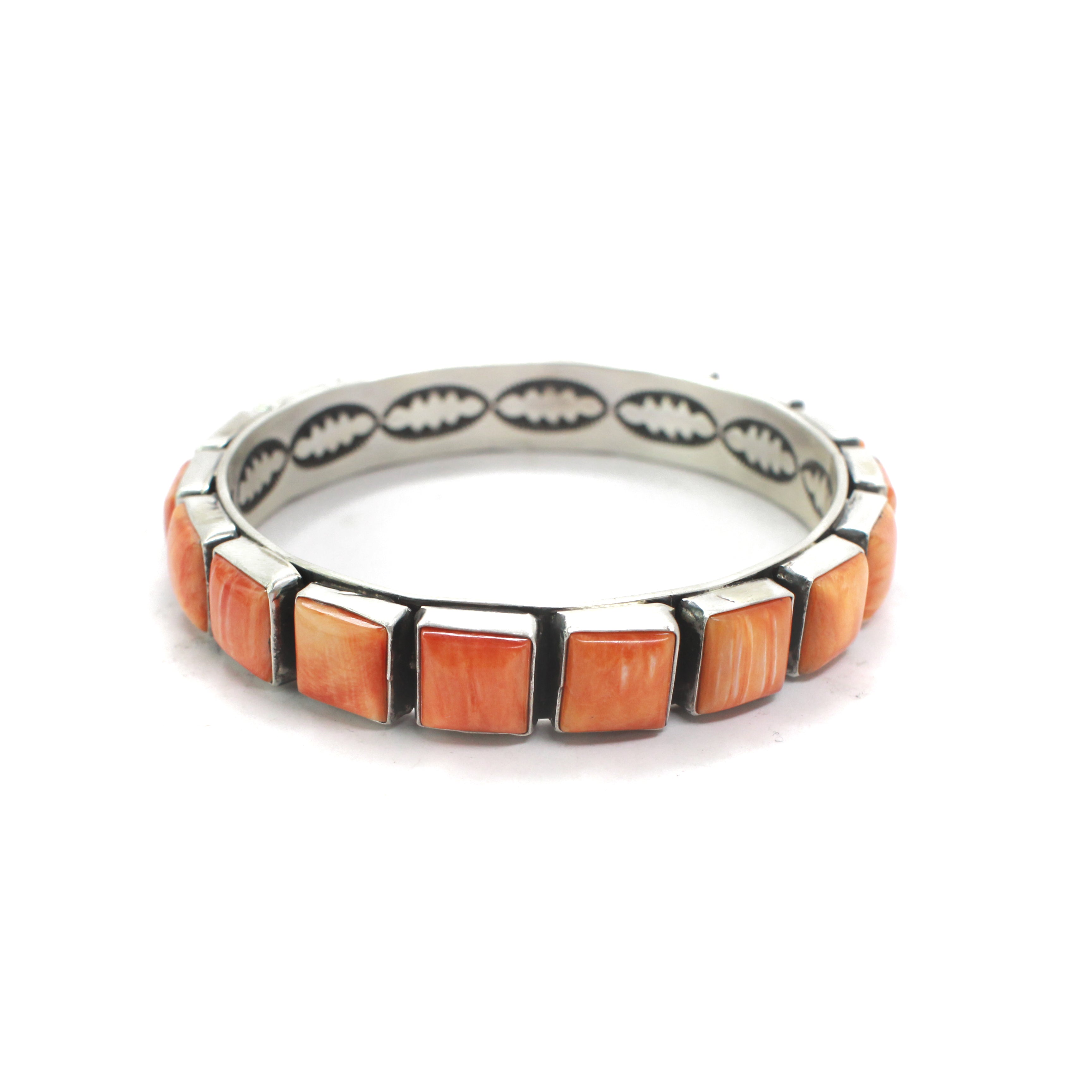 Spiny Oyster is a vibrant shell material commonly found in orange, red, and purple hues, with rare yellow variations. The colors are influenced by the mollusks' diet and the water's depth and temperature. It can be distinguished from coral by the white variations in its shell. Predominantly sourced from the Sea of Cortez (Gulf of California), Spiny Oyster is used extensively in Native American jewelry. Read More