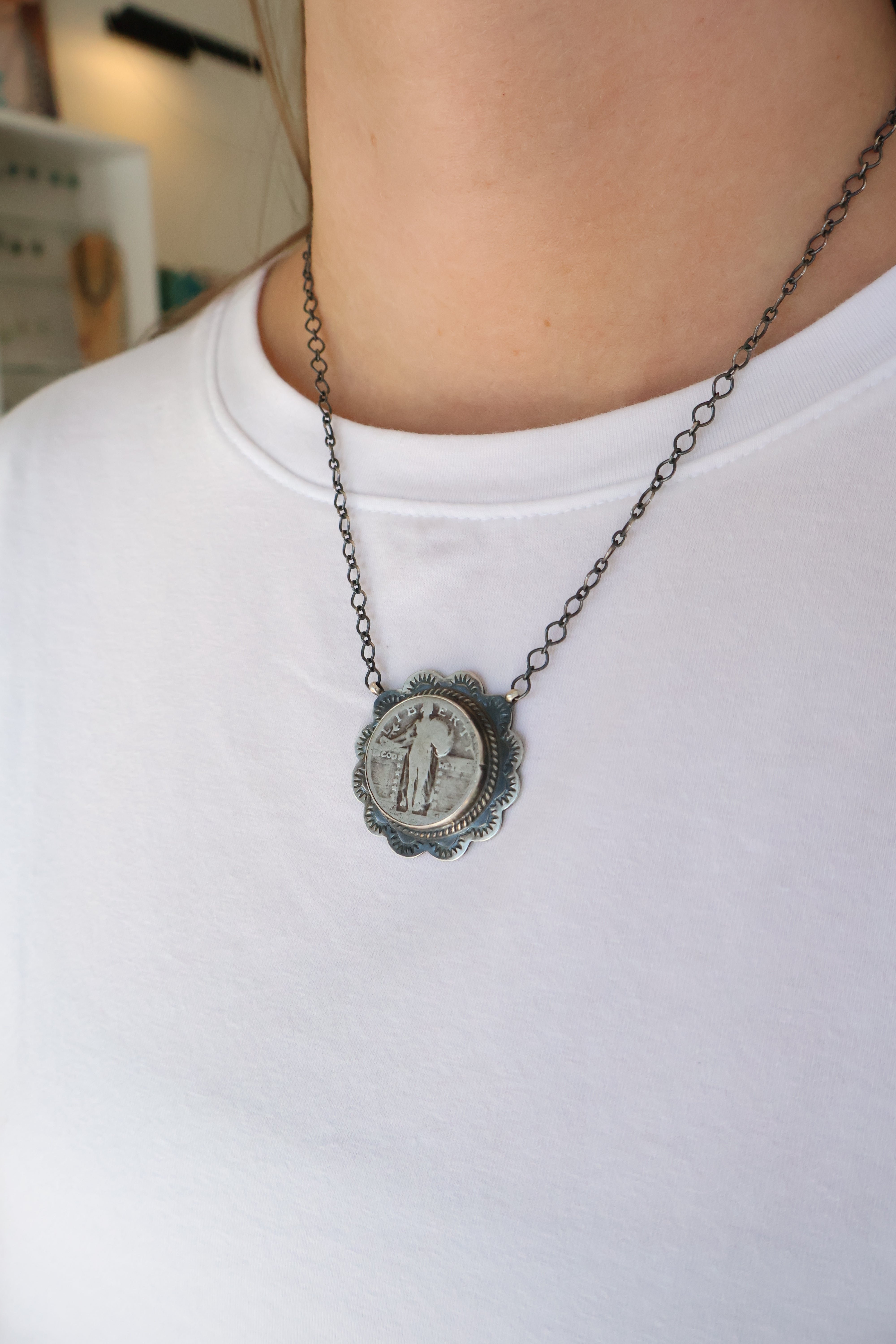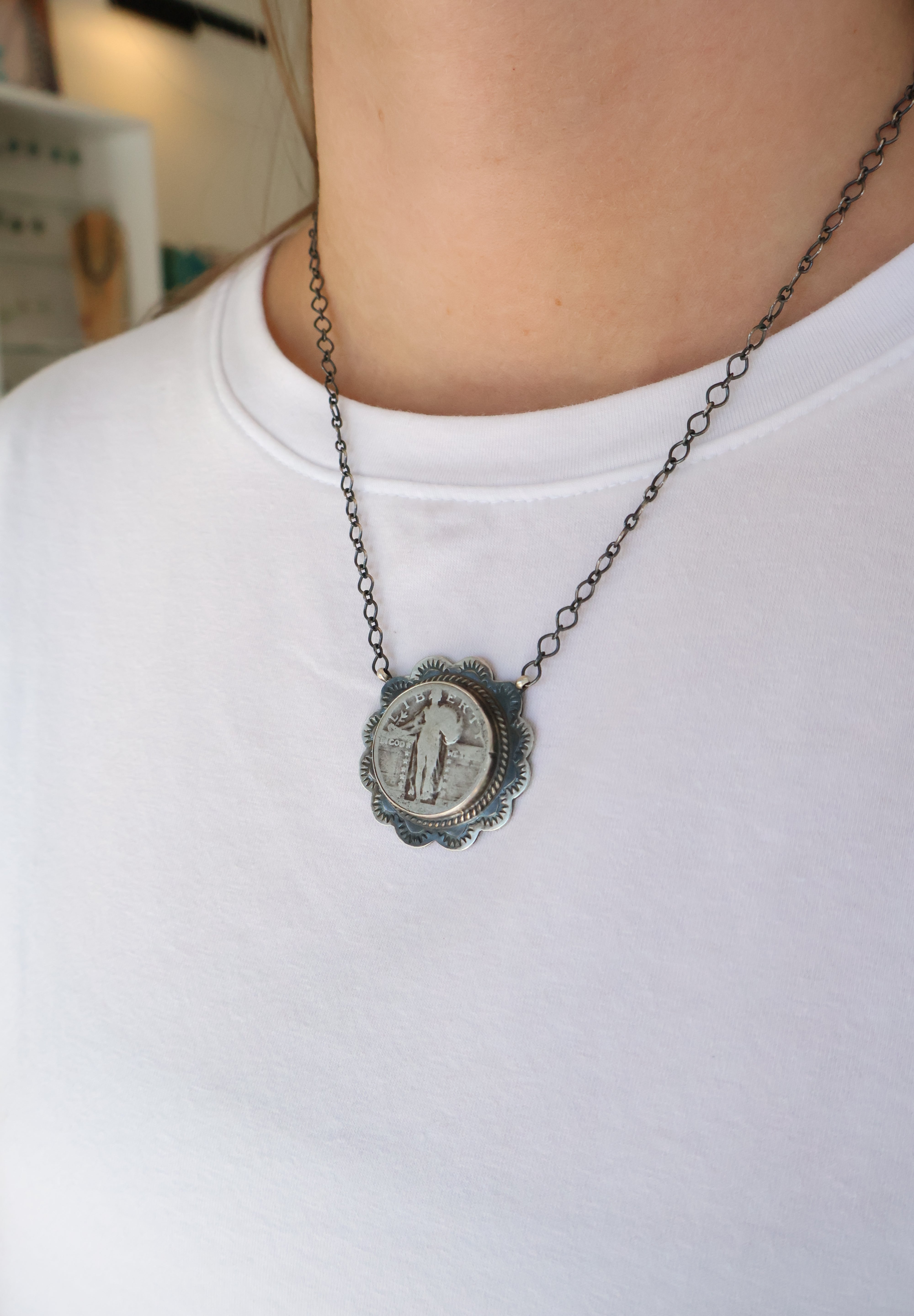 Peggy Skeets, a member of the Navajo Nation, offers a distinctive collection through Indian Traders, featuring one-of-a-kind White Buffalo pendants and silver and gold overlay earrings inspired by Hopi designs. Her work reflects a blend of cultural influences and showcases her unique artistic style.