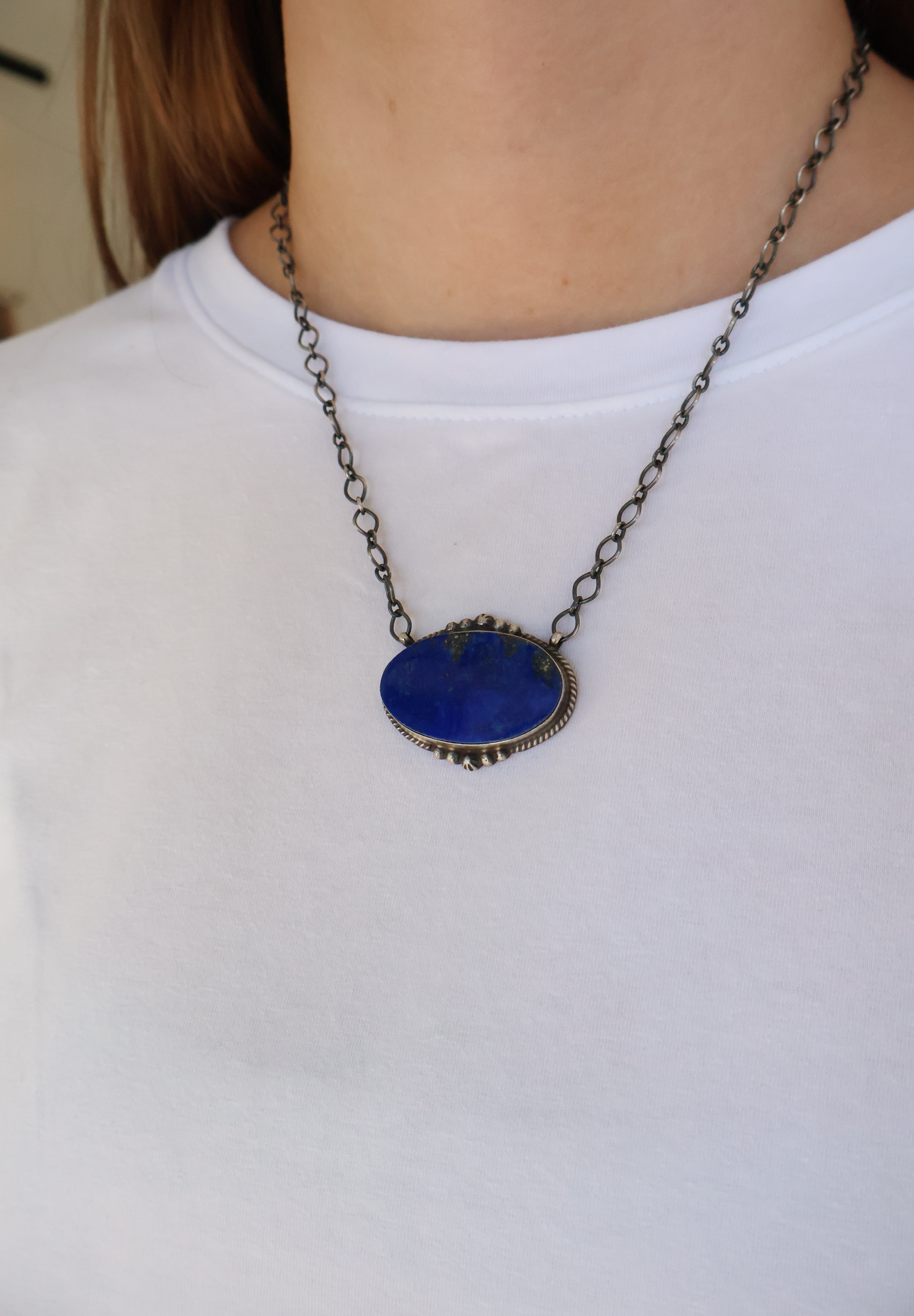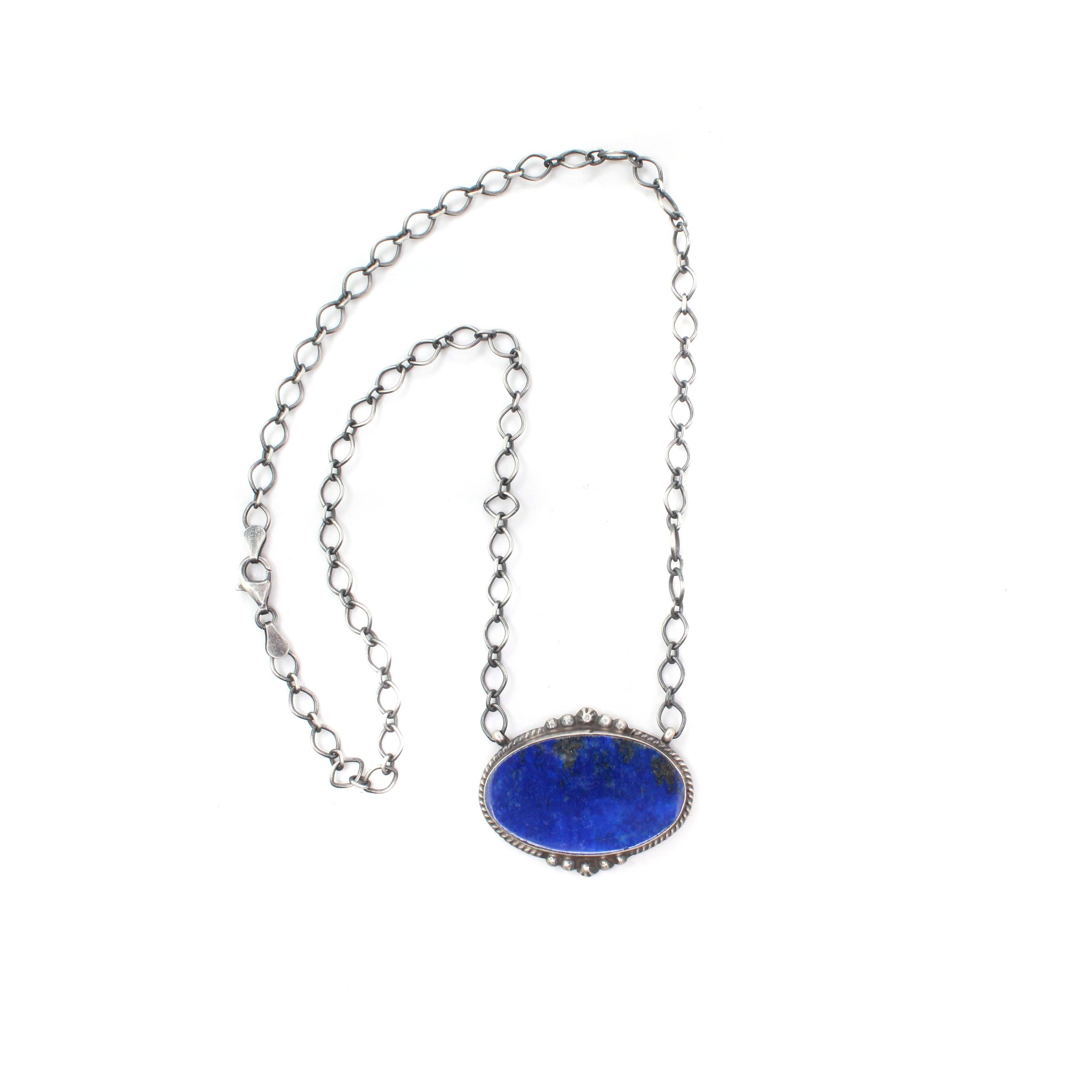 Lapis lazuli is a rock composed primarily of lazurite, calcite, and pyrite, with possible additional minerals like diopside and feldspar. It is prized for its rich blue hues, ranging from slightly greenish blue to violetish blue, and can include glinting pyrite flecks or a calcite matrix. The finest lapis lazuli comes from Afghanistan, which has been a traditional source for thousands of years, while other significant locations include Chile and Lake Baikal in Siberia, Russia. Minor sources can be found in Angola, Canada, Colorado (USA), and Pakistan. Its hardness ranges from 5 to 6 on the Mohs scale, making it suitable for various jewelry applications. More Info