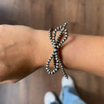 Since the bracelet is made from stretchy material, it will expand to fit your wrist when worn. However, the listed inside circumference is not for the bracelet in its fully stretched state—it’s the relaxed measurement. Stretch bracelets are designed to stretch, but they should not be worn stretched out at all times.