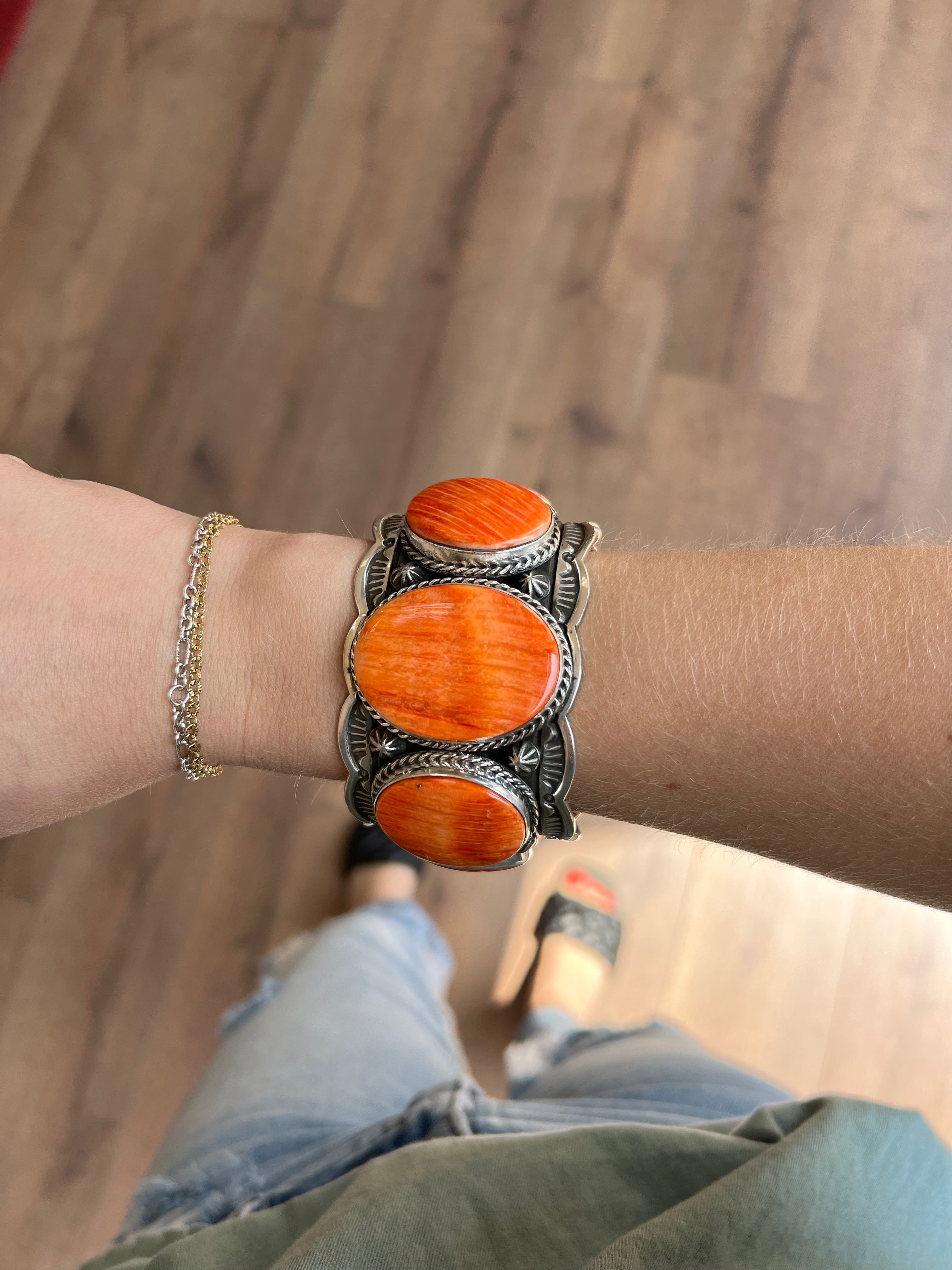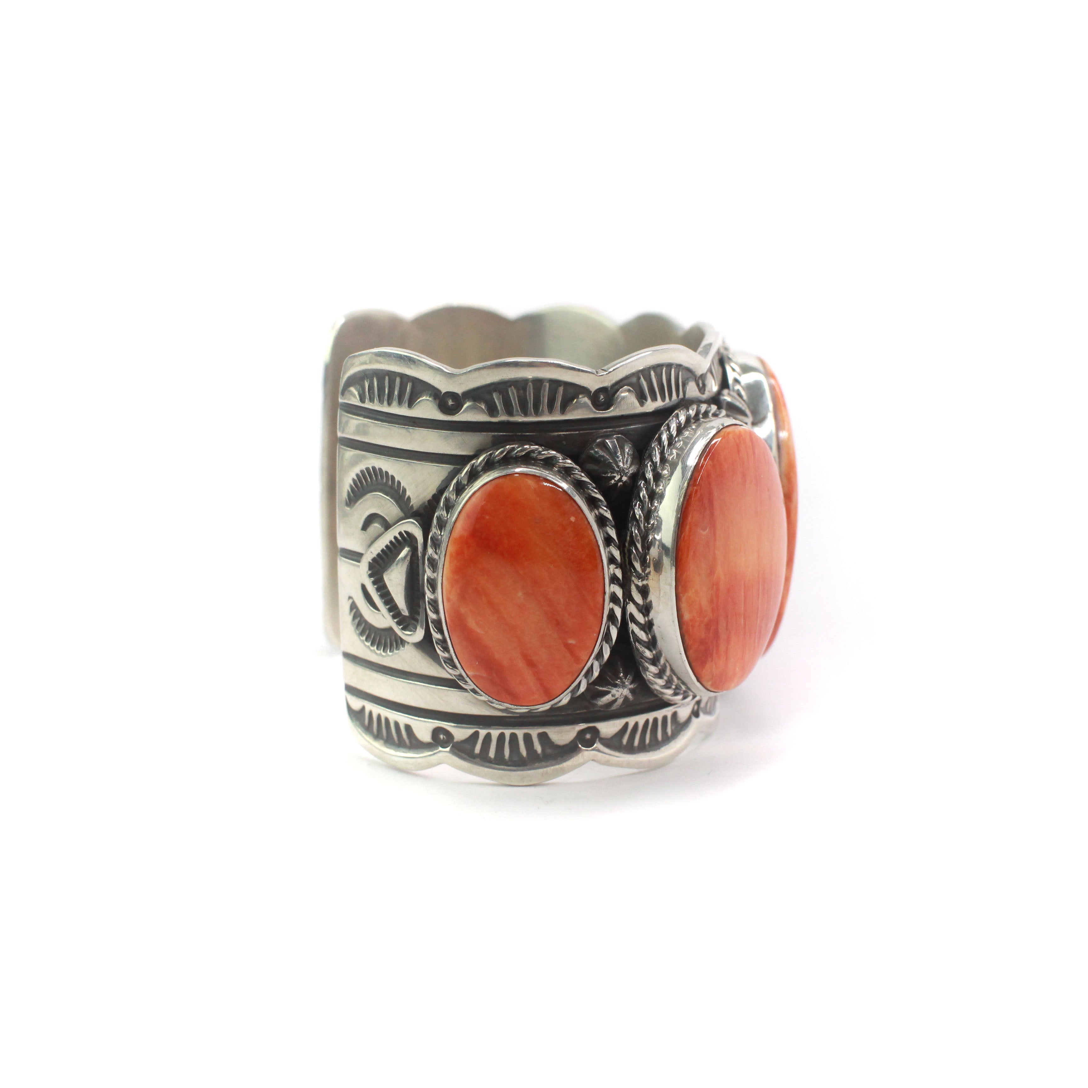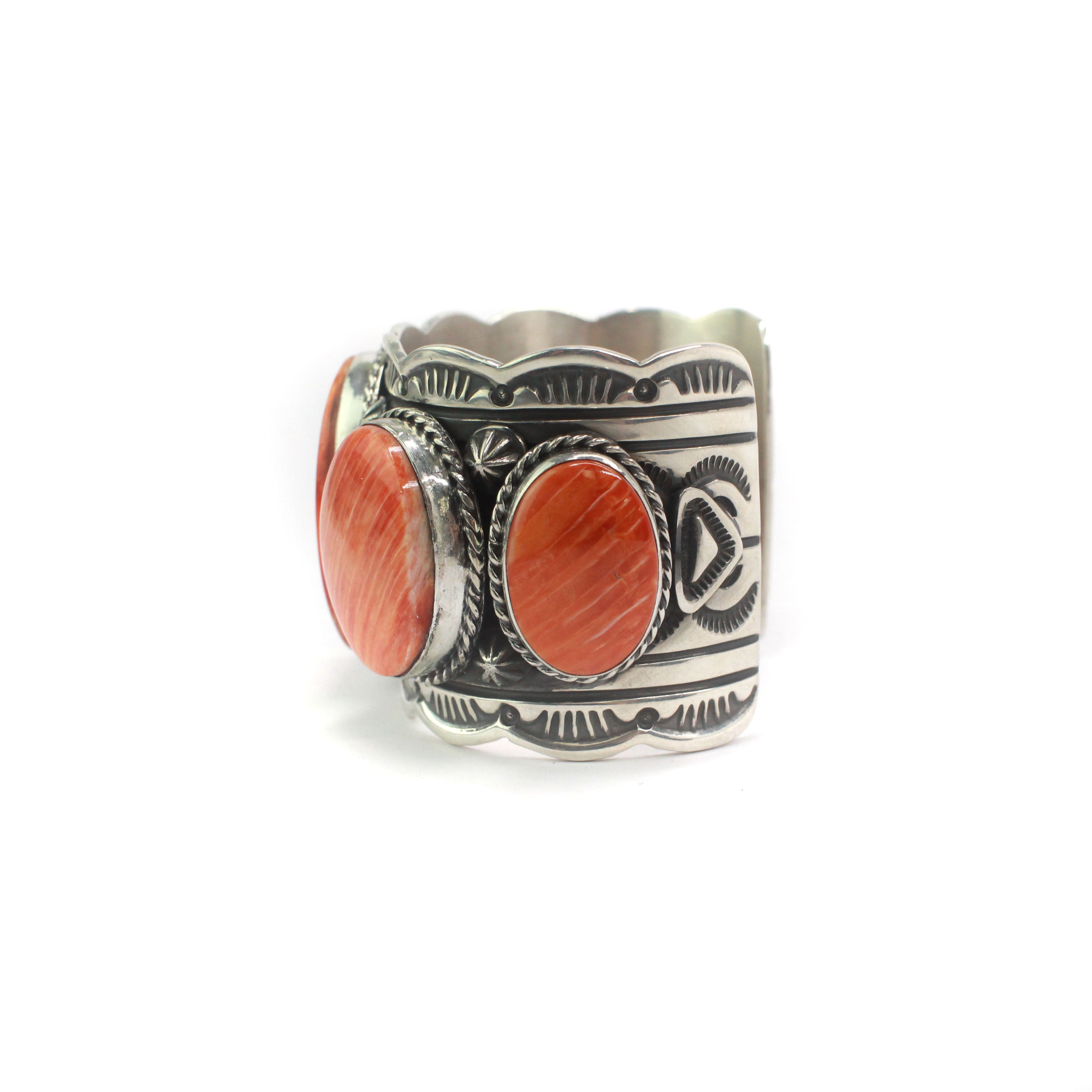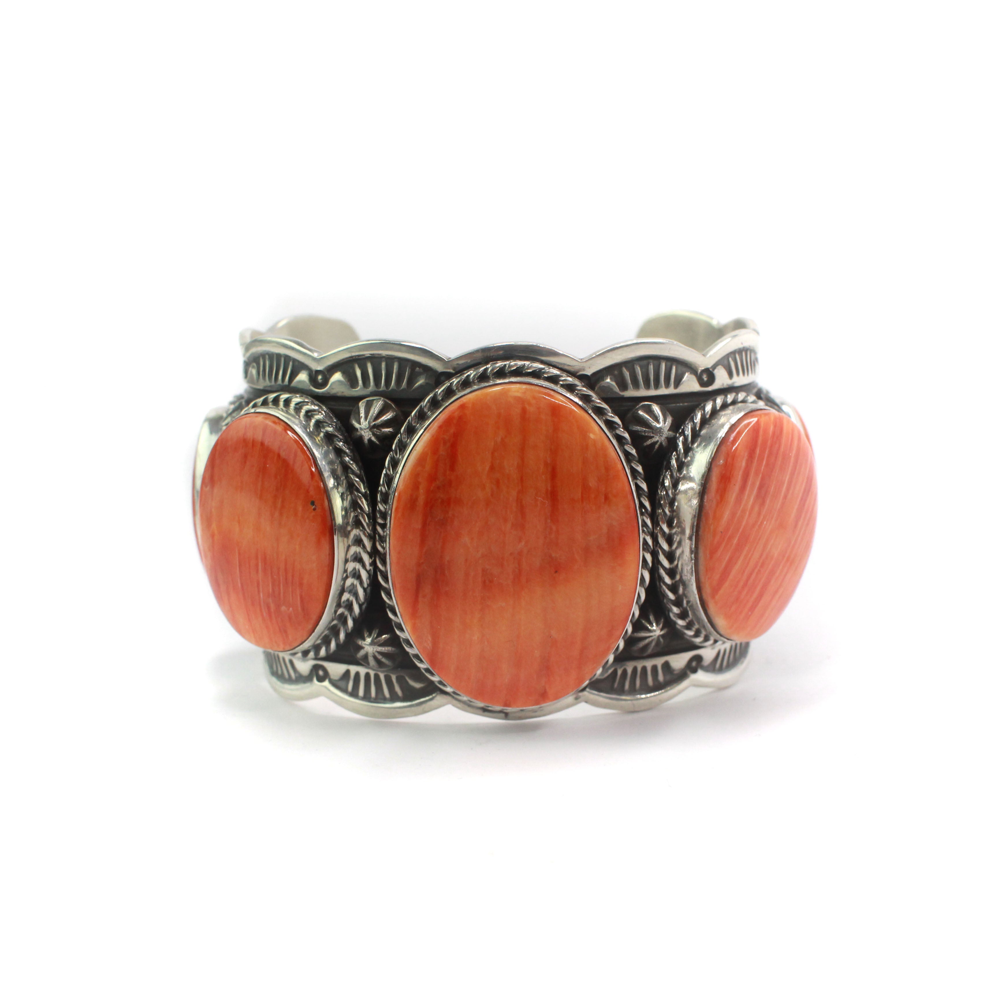 Spiny Oyster is a vibrant shell material commonly found in orange, red, and purple hues, with rare yellow variations. The colors are influenced by the mollusks' diet and the water's depth and temperature. It can be distinguished from coral by the white variations in its shell. Predominantly sourced from the Sea of Cortez (Gulf of California), Spiny Oyster is used extensively in Native American jewelry. Read More