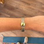 Inside circumference measurements listed for cuff bracelets represent the total inside circumference, including the gap. When selecting a cuff bracelet, keep in mind that the gap allows for some flexibility in sizing, as cuffs can be gently adjusted for a more comfortable fit. Cuffs with multiple stones may be adjustable on a case-by-case basis. If the listed measurements do not meet your needs, we recommend inquiring about adjustability before purchasing. Improperly adjusting cuffs can compromise the stone settings.