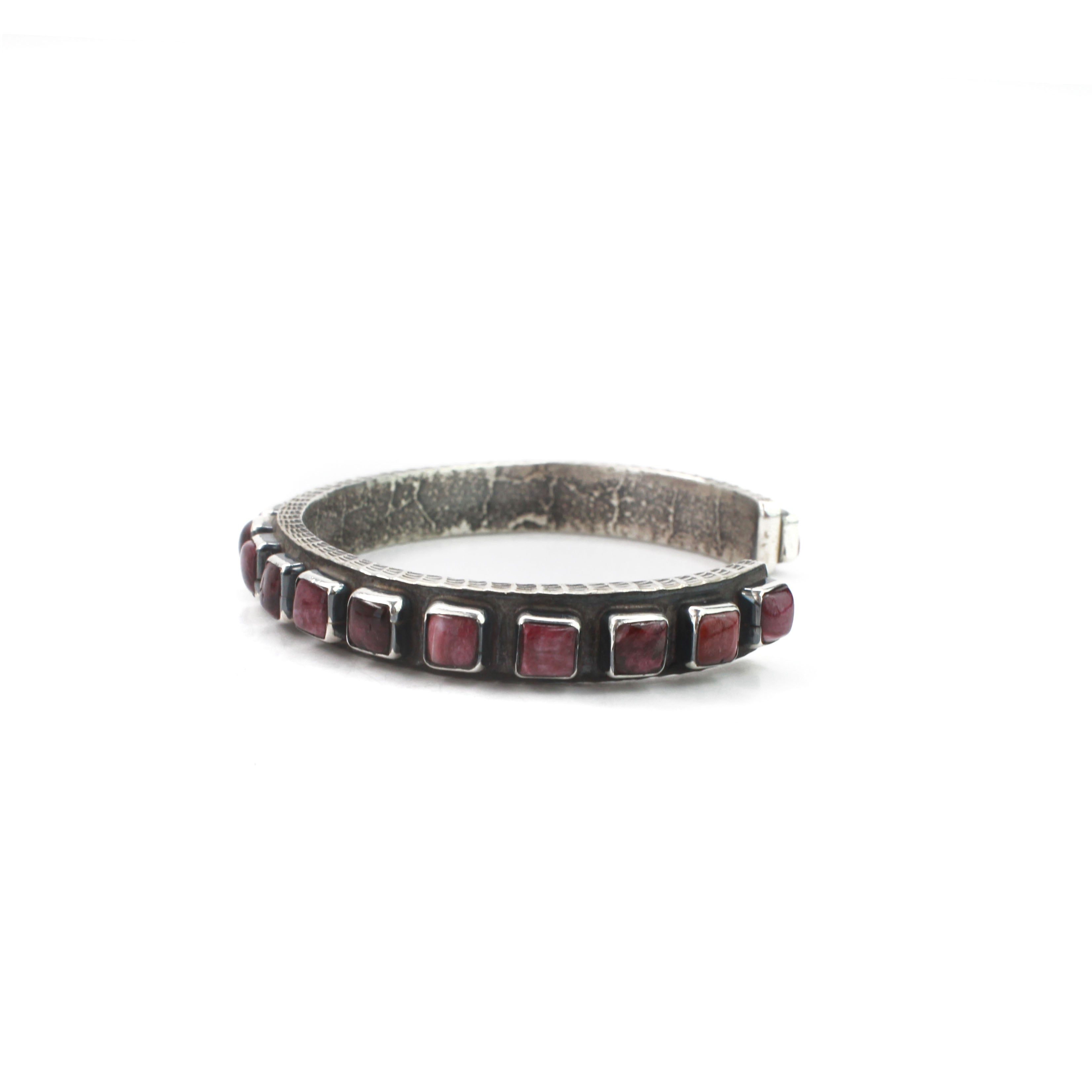 Spiny Oyster is a vibrant shell material commonly found in orange, red, and purple hues, with rare yellow variations. The colors are influenced by the mollusks' diet and the water's depth and temperature. It can be distinguished from coral by the white variations in its shell. Predominantly sourced from the Sea of Cortez (Gulf of California), Spiny Oyster is used extensively in Native American jewelry. Read More