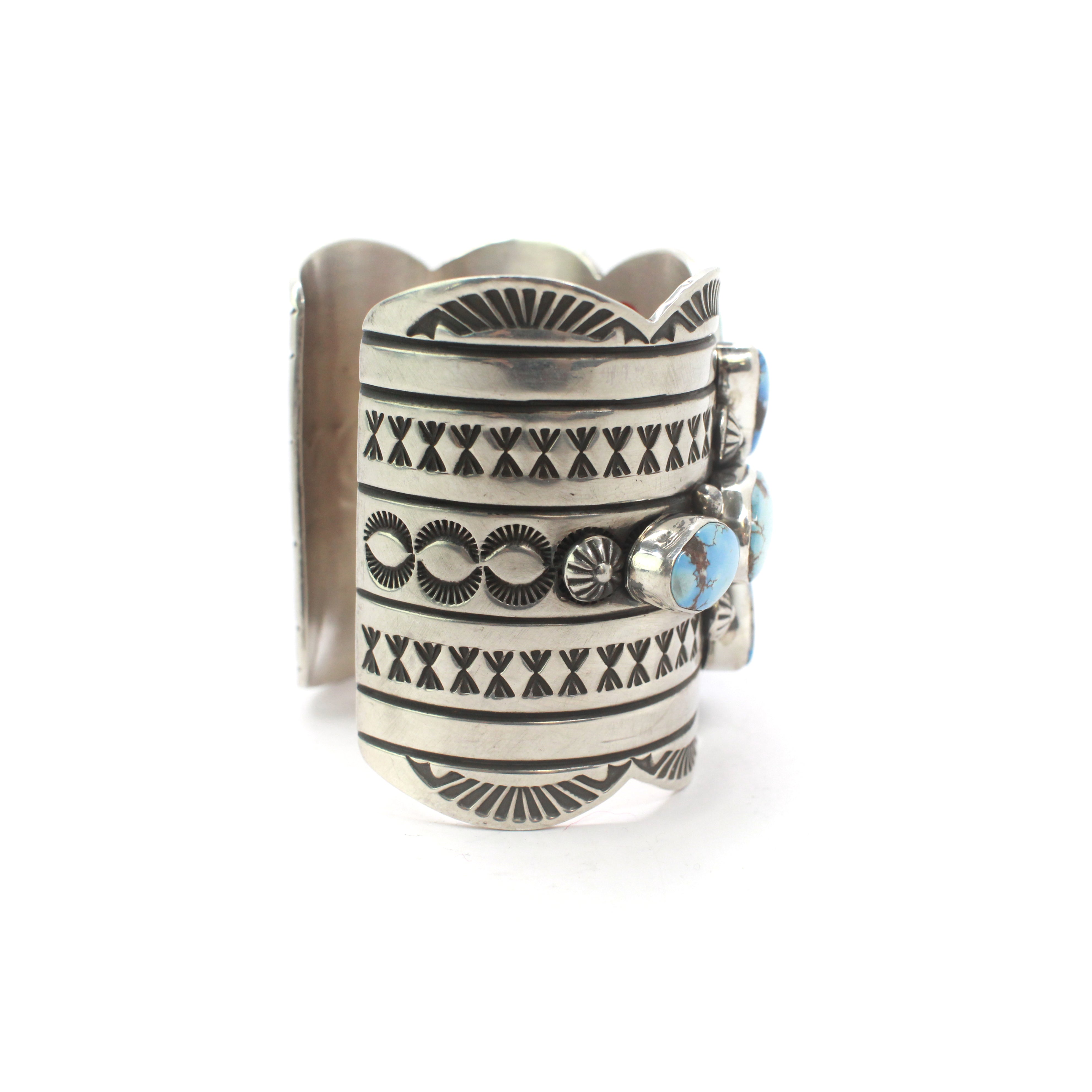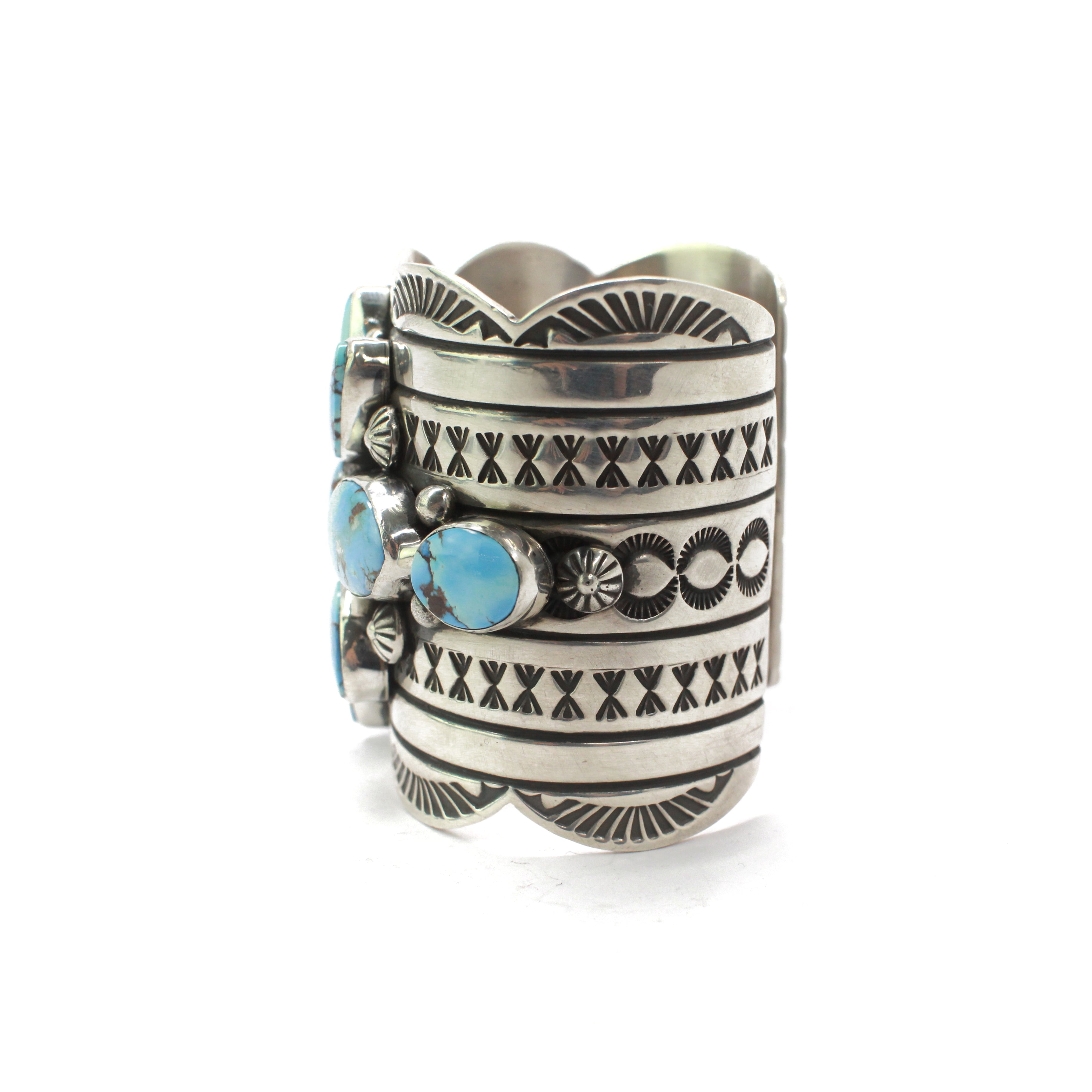 Albert Jake, a distinguished Navajo silversmith born in 1959 in Gallup, New Mexico, has left an indelible mark on Native American jewelry. Raised on the Navajo Nation, he learned silversmithing from his parents and grandparents, a heritage he now carries forward from his home in Albuquerque, New Mexico, where he lives with his wife and two daughters.