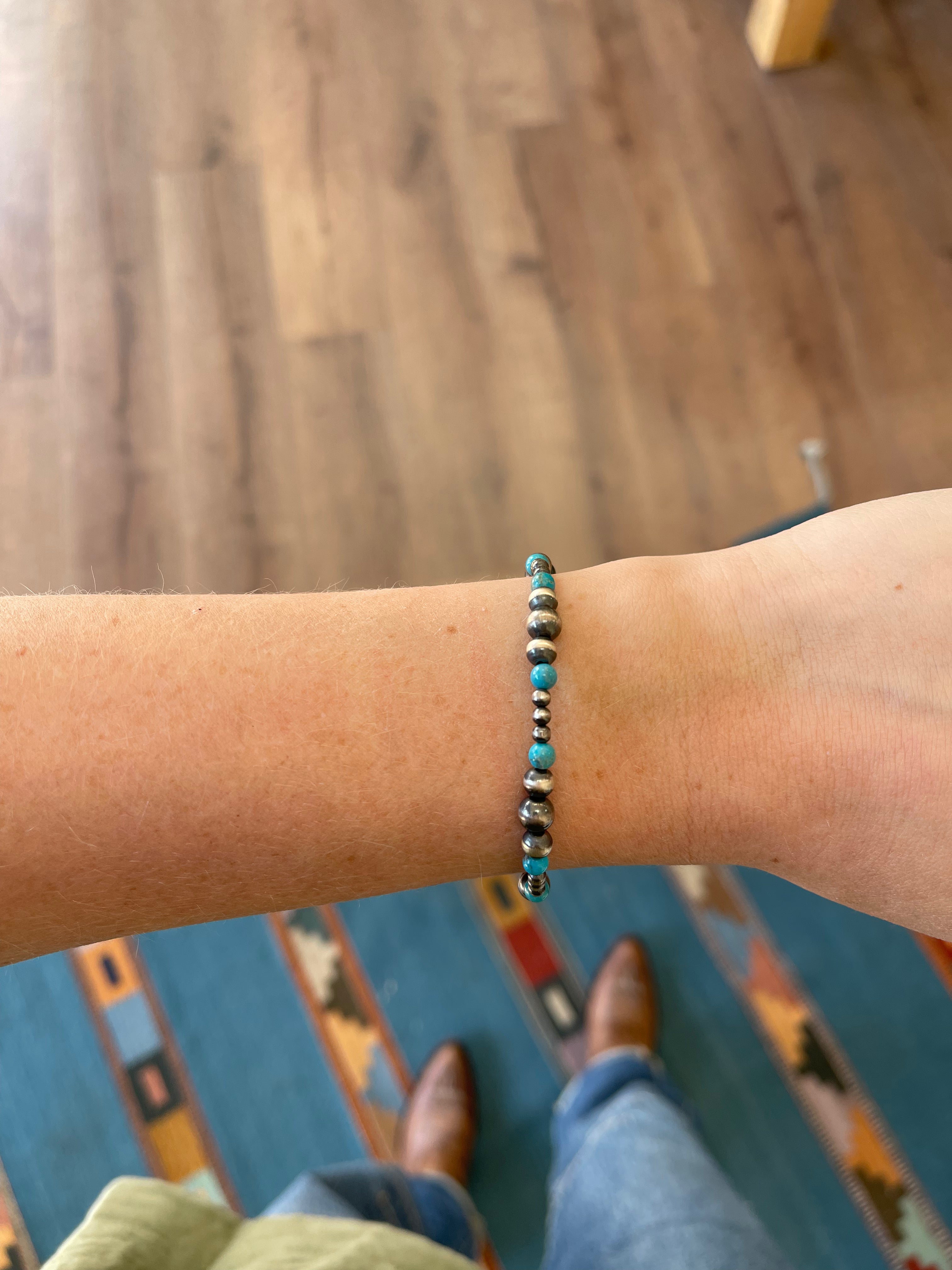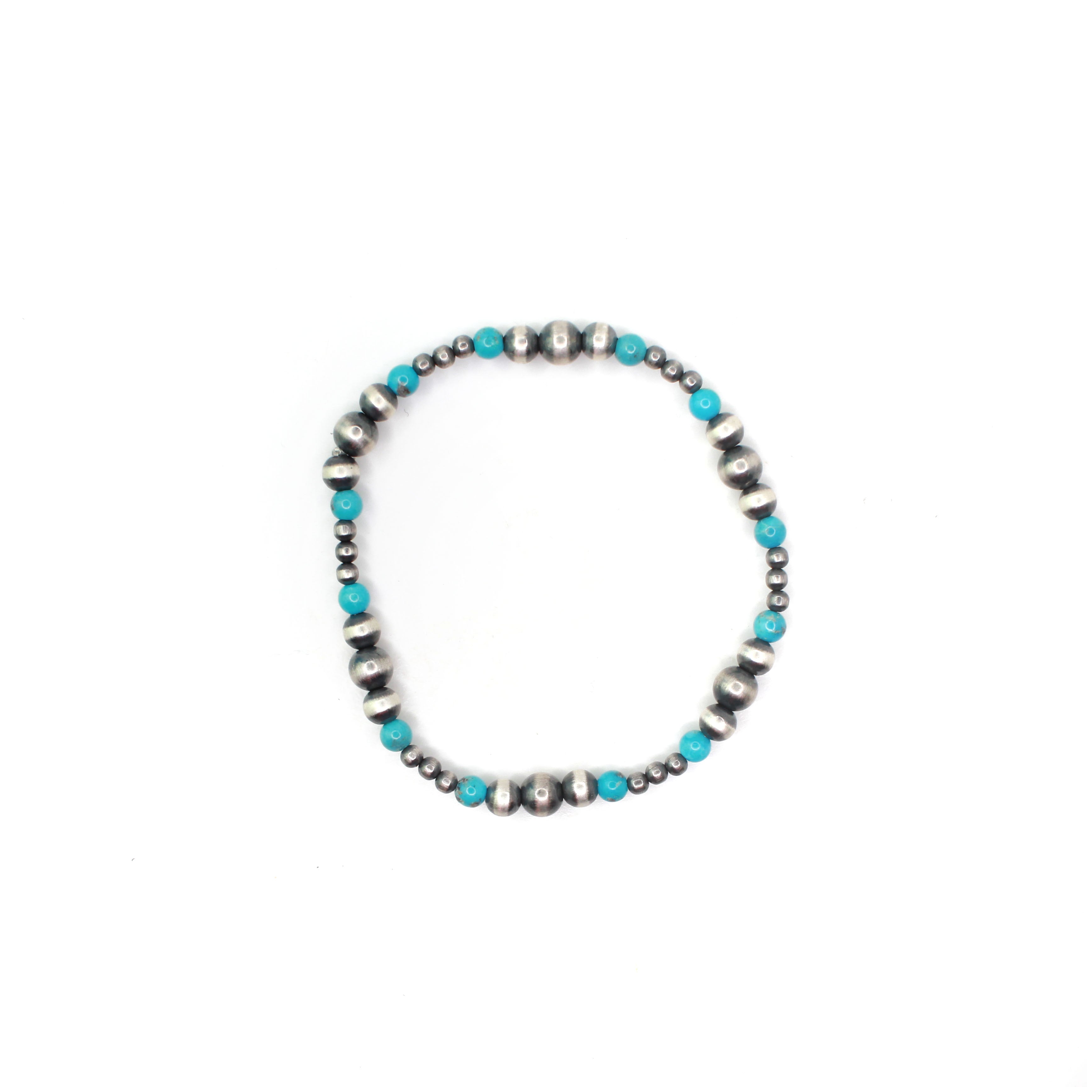 Multi Size Navajo Pearl Stretch- Round Turquoise