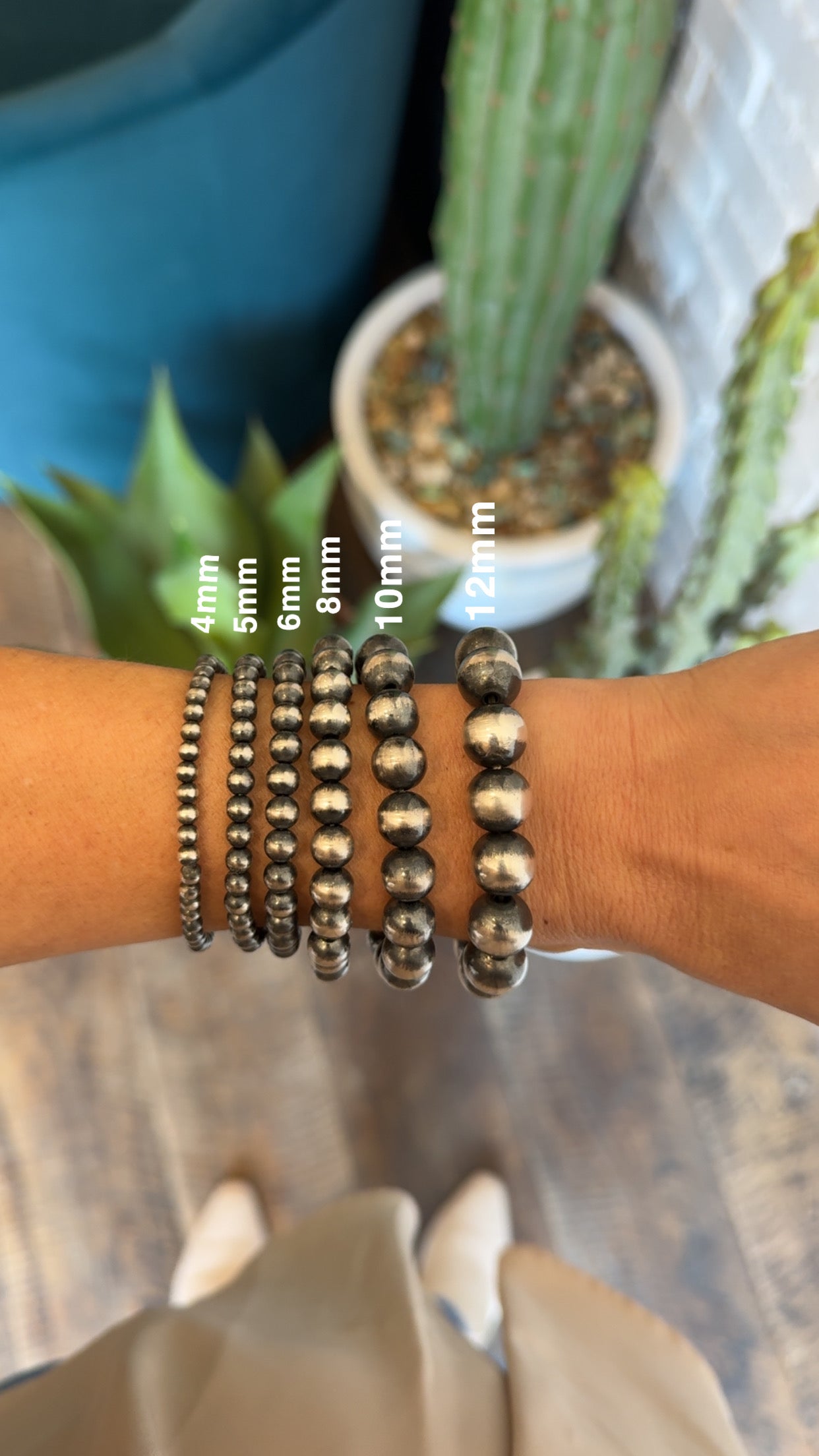 Since the bracelet is made from stretchy material, it will expand to fit your wrist when worn. However, the listed inside circumference is not for the bracelet in its fully stretched state—it’s the relaxed measurement. Stretch bracelets are designed to stretch, but they should not be worn stretched out at all times.