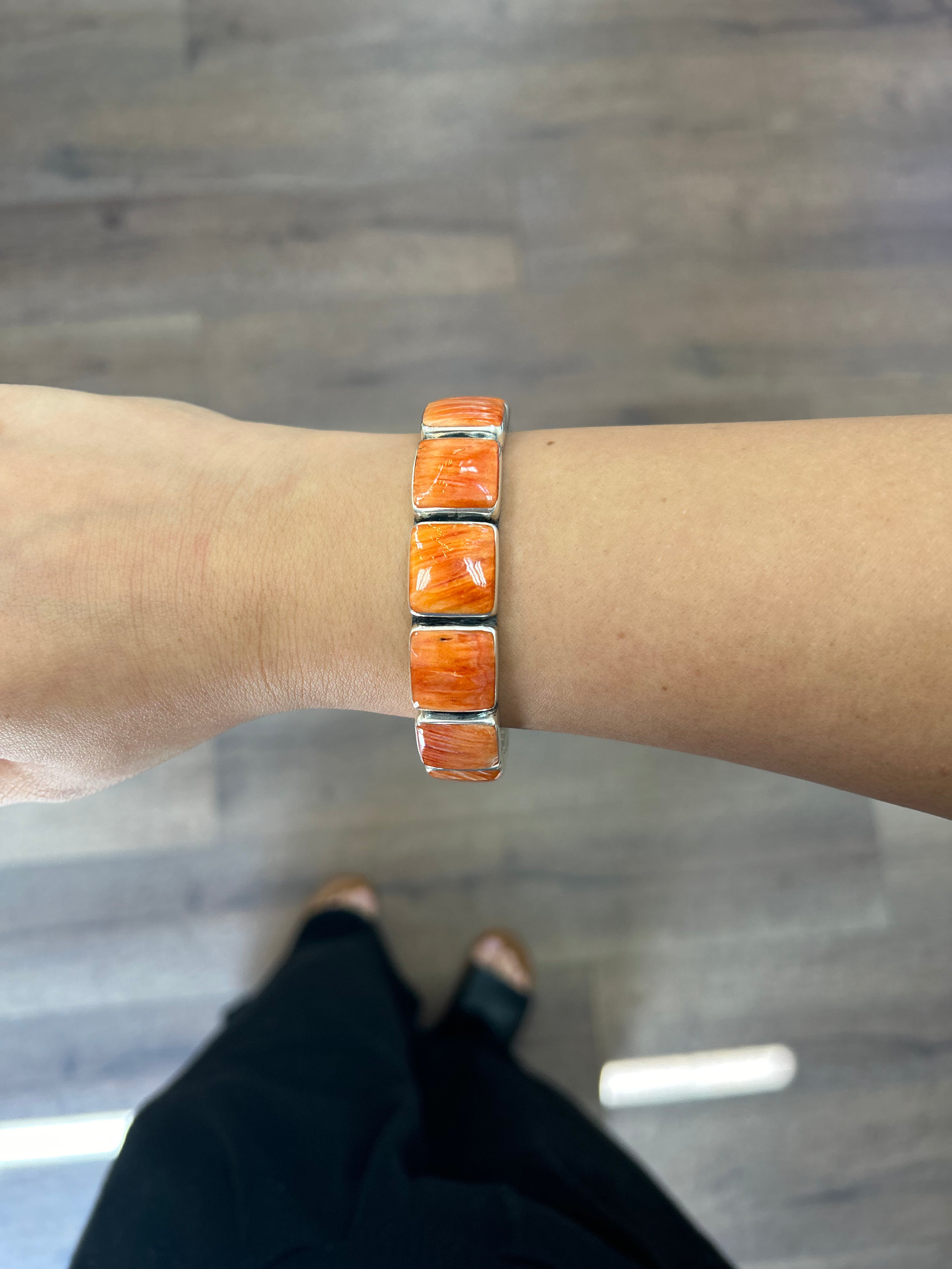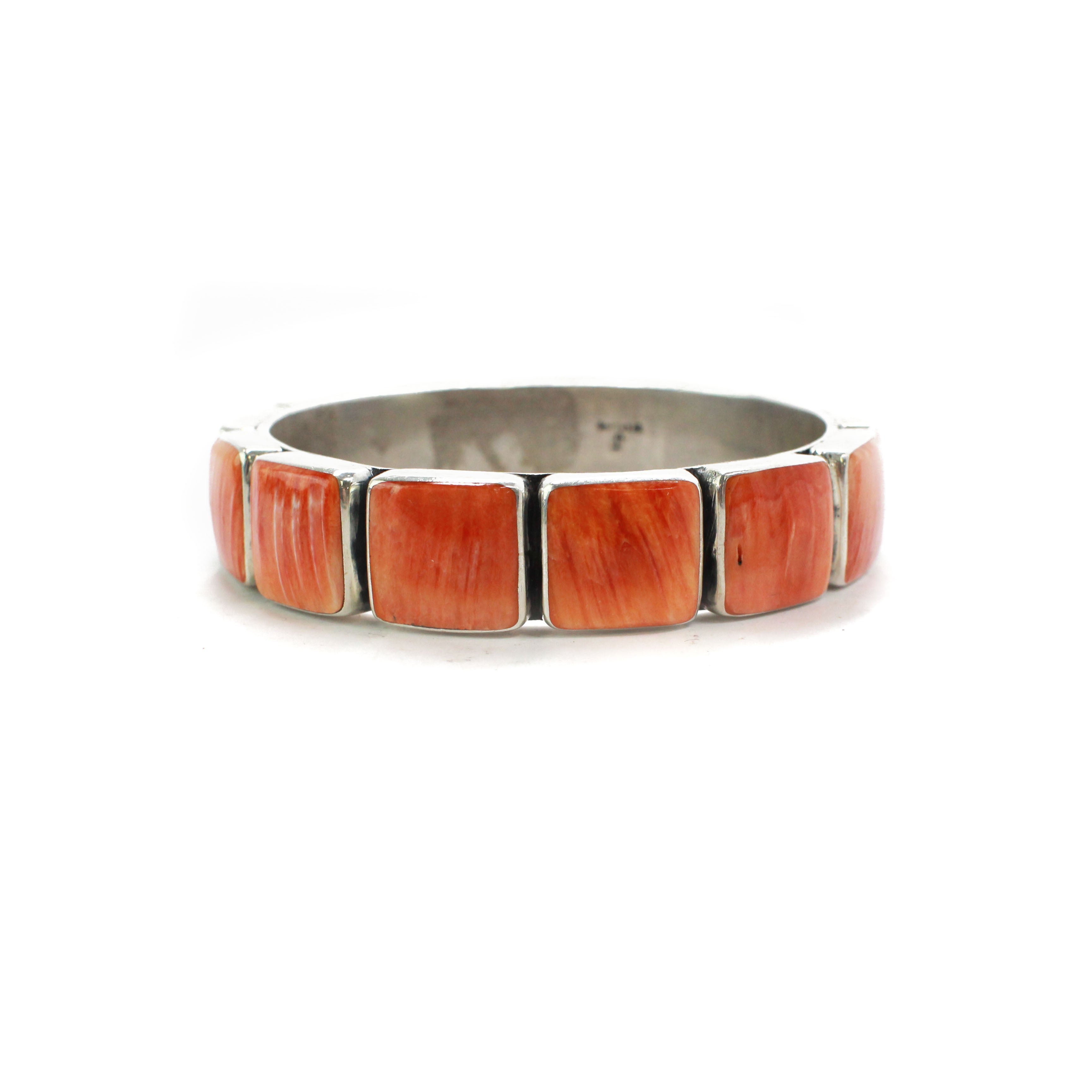 Spiny Oyster is a vibrant shell material commonly found in orange, red, and purple hues, with rare yellow variations. The colors are influenced by the mollusks' diet and the water's depth and temperature. It can be distinguished from coral by the white variations in its shell. Predominantly sourced from the Sea of Cortez (Gulf of California), Spiny Oyster is used extensively in Native American jewelry. Read More
