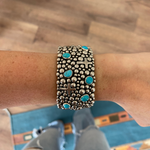 Daniel Coriz, a talented artisan from Santo Domingo Pueblo, is the son of Valentino and Nestoria Coriz, from whom he inherited his craftsmanship. He creates stunning treasure necklaces embellished with turquoise, lapis, spiny oyster, and coral, often integrating a diverse array of vibrant stones and intricate carvings. Though formally trained as a registered nurse, Daniel takes great joy in crafting these beautiful pieces to share with the world. He has two sons, one of whom is currently learning the art of jewelry making under his guidance.
