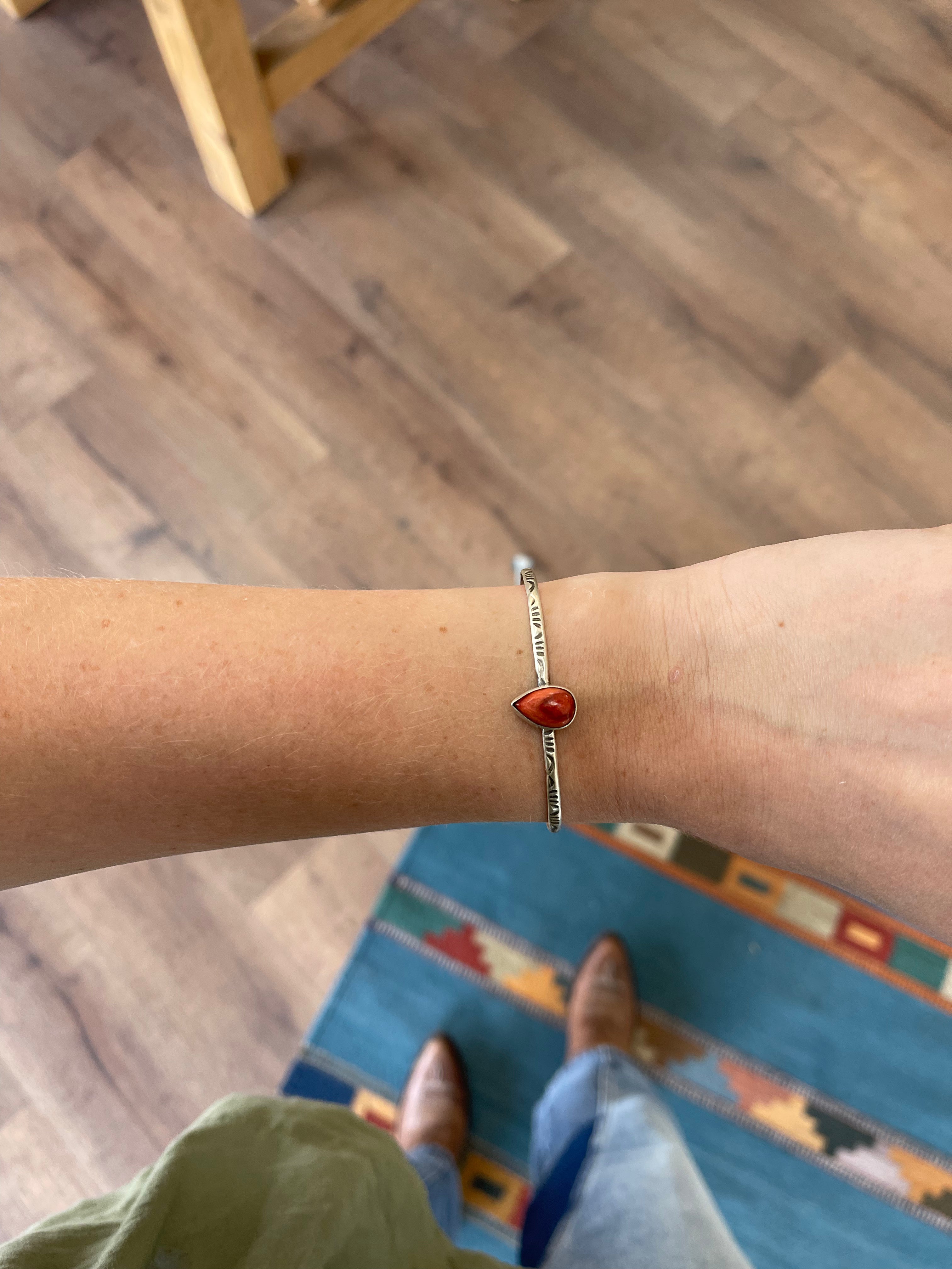 Spiny Oyster is a vibrant shell material commonly found in orange, red, and purple hues, with rare yellow variations. The colors are influenced by the mollusks' diet and the water's depth and temperature. It can be distinguished from coral by the white variations in its shell. Predominantly sourced from the Sea of Cortez (Gulf of California), Spiny Oyster is used extensively in Native American jewelry. Read More