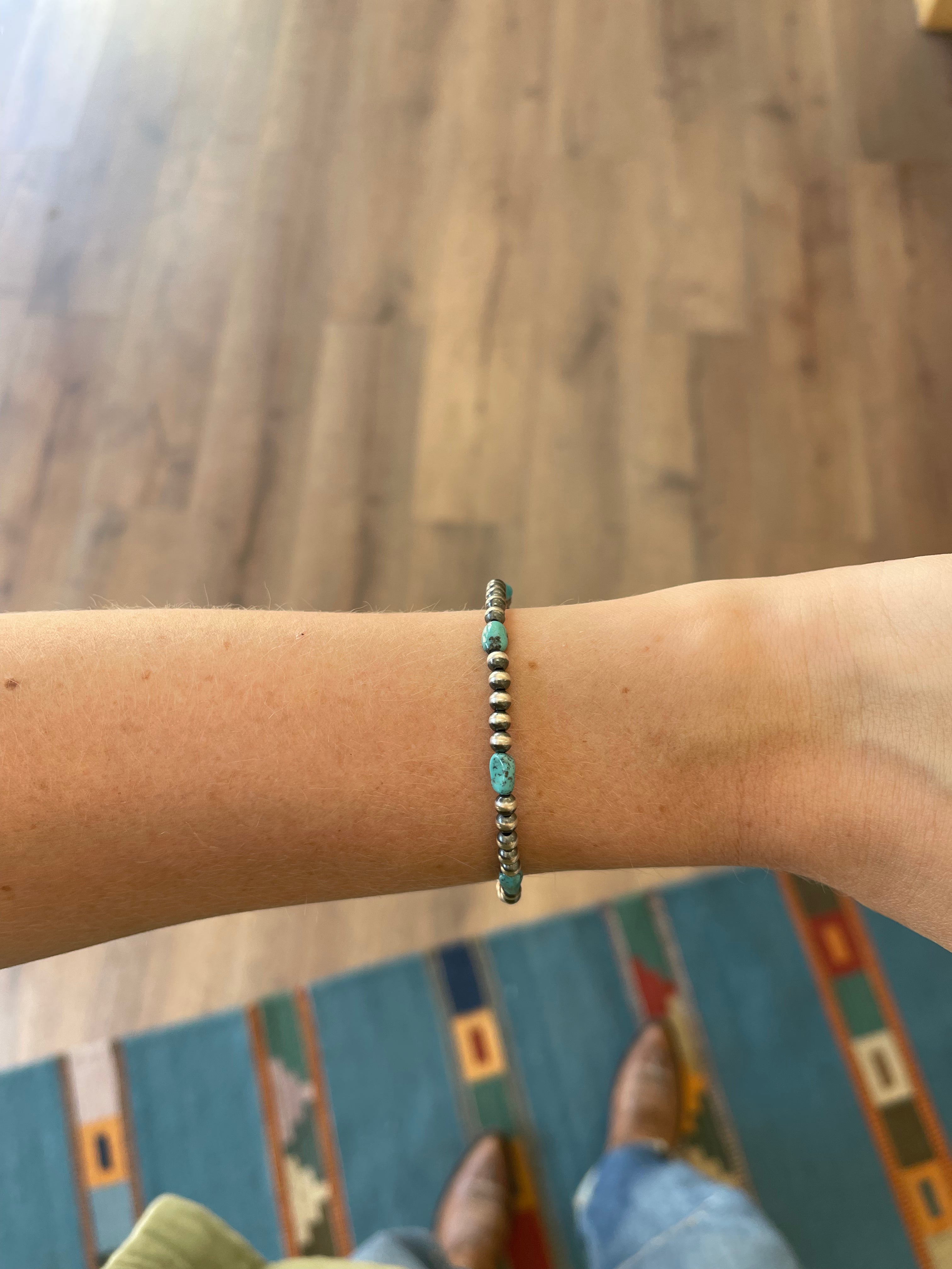 4mm Navajo Pearl Stretch Bracelet- Turquoise Slab