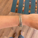 The Tahe name, originating from the Navajo community in Arizona, is linked to a variety of unique jewelry styles, with new interpretations emerging over time. Many pieces created under this name may come from artisans who are related to one another. The most prominent style features an array of wire types and metal sheets meticulously crafted into striking final products. This distinctive style resonates with both men and women; notable examples include a bracelet worn by Robert Redford in the film "The Horse Whisperer." Scroll down to explore examples of jewelry currently crafted by Elaine Tahe, who resides in New Mexico.