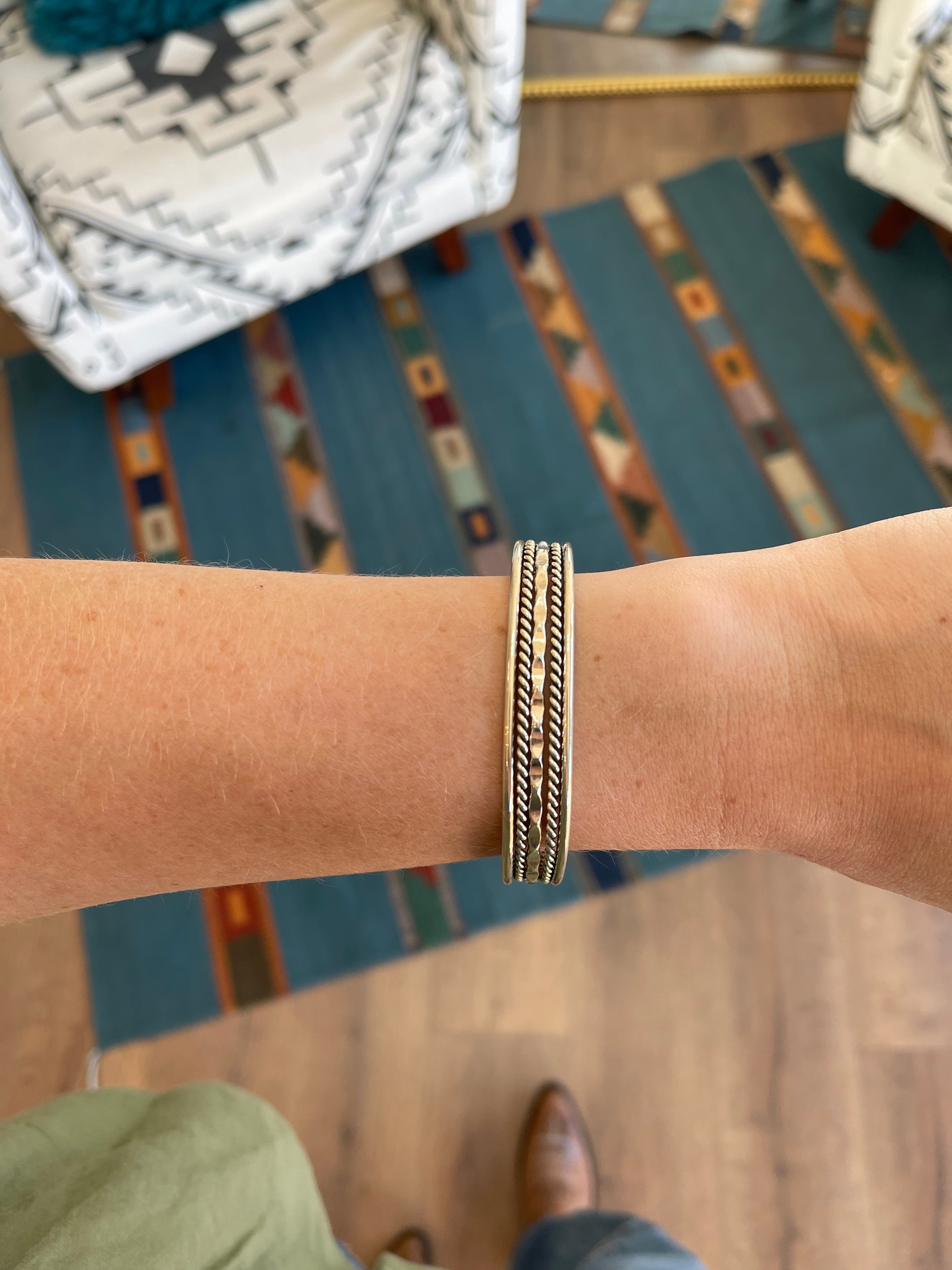 The Tahe name, originating from the Navajo community in Arizona, is linked to a variety of unique jewelry styles, with new interpretations emerging over time. Many pieces created under this name may come from artisans who are related to one another. The most prominent style features an array of wire types and metal sheets meticulously crafted into striking final products. This distinctive style resonates with both men and women; notable examples include a bracelet worn by Robert Redford in the film "The Horse Whisperer." Scroll down to explore examples of jewelry currently crafted by Elaine Tahe, who resides in New Mexico.