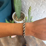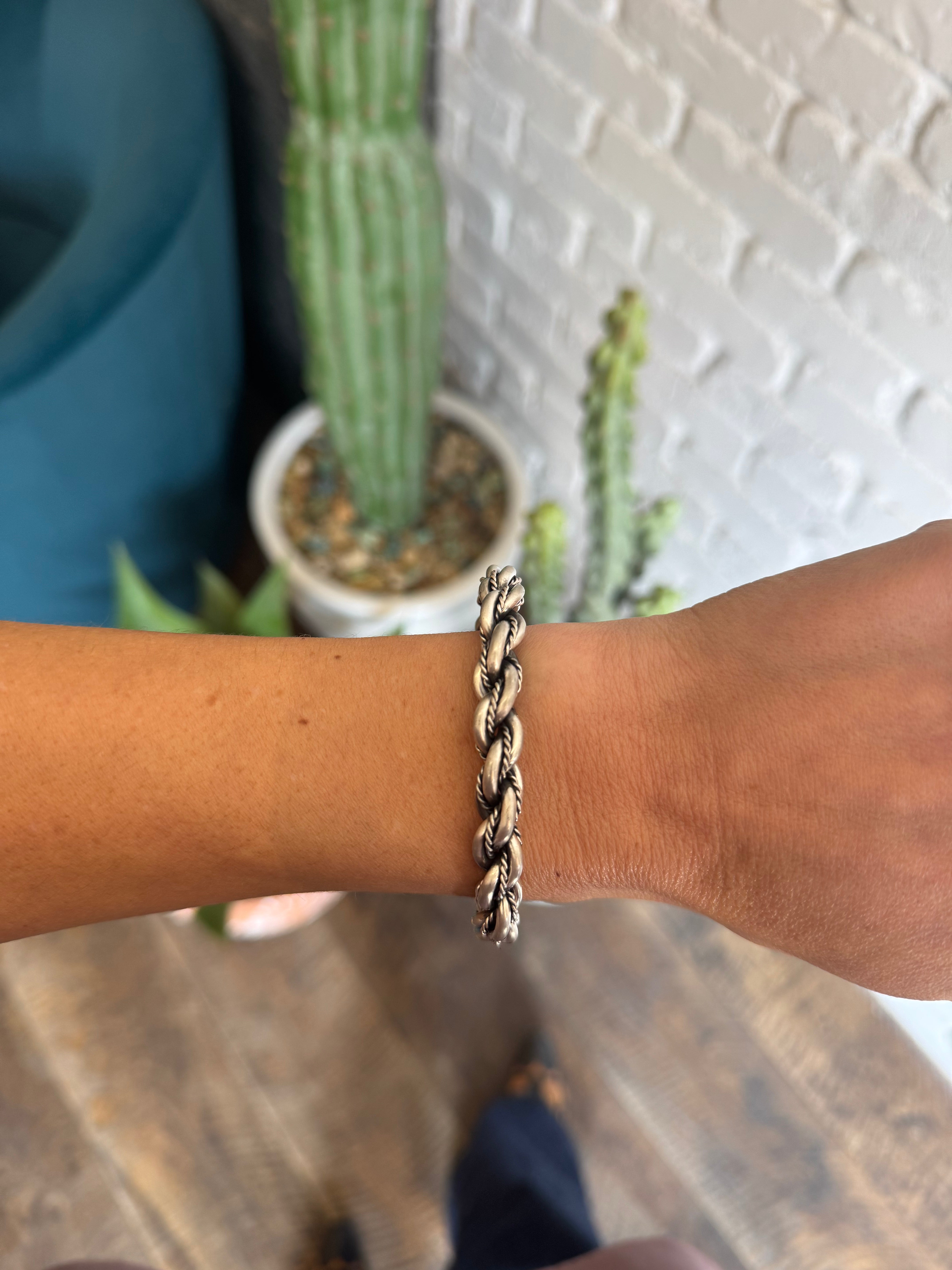 The Tahe name, originating from the Navajo community in Arizona, is linked to a variety of unique jewelry styles, with new interpretations emerging over time. Many pieces created under this name may come from artisans who are related to one another. The most prominent style features an array of wire types and metal sheets meticulously crafted into striking final products. This distinctive style resonates with both men and women; notable examples include a bracelet worn by Robert Redford in the film "The Horse Whisperer." Scroll down to explore examples of jewelry currently crafted by Elaine Tahe, who resides in New Mexico.