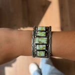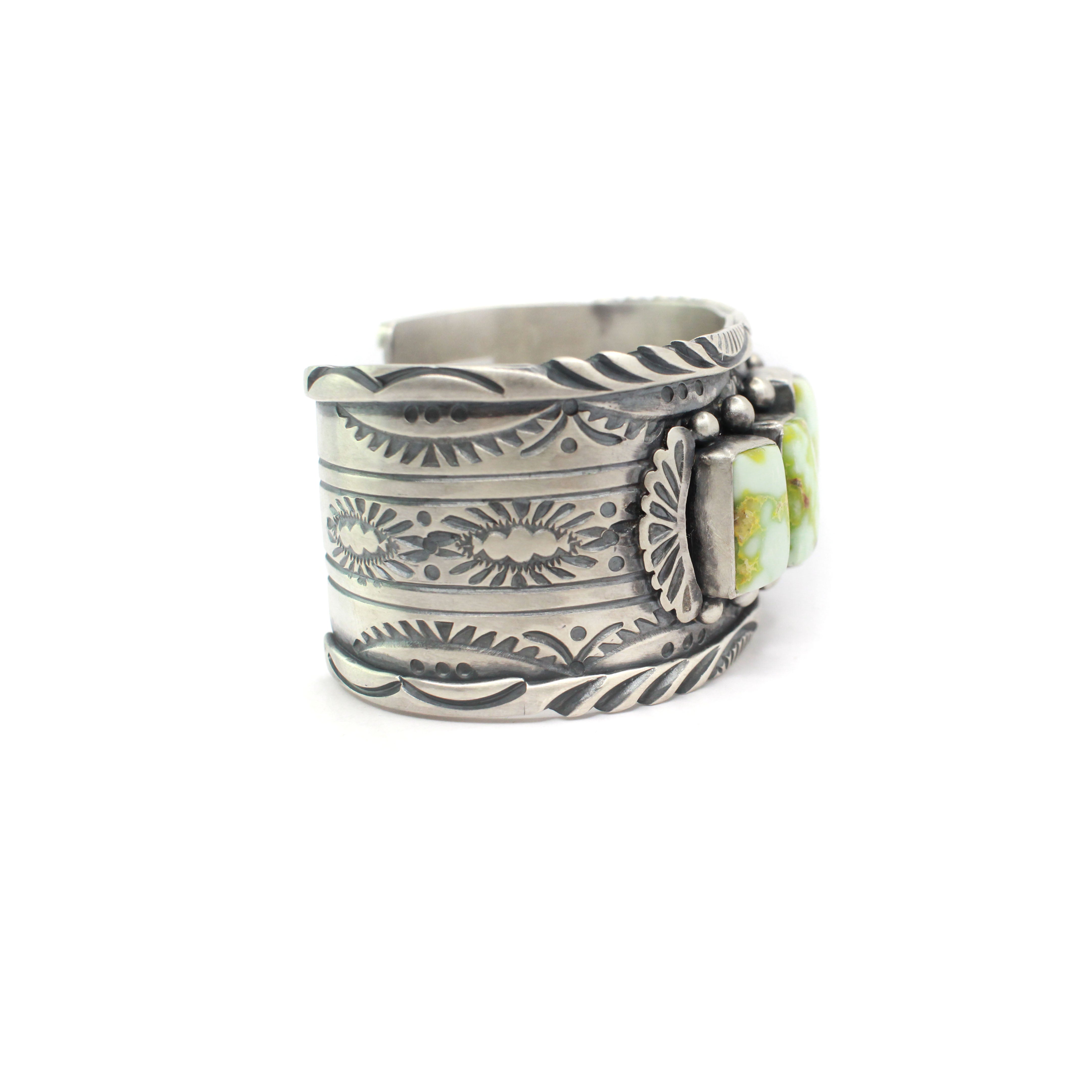Born in Fort Defiance, Arizona, and raised in the culturally rich environment of the Navajo Nation, Yazzie's early exposure to the art form began during a resurgence in Native jewelry's popularity in the 1970s. Starting his career at the "3 Hogans" near the Arizona-New Mexico border, he honed his skills in various aspects of silversmithing. Over the years, Yazzie mastered a wide range of traditional Navajo jewelry, from the iconic Squash Blossom necklaces and concho belts to storyteller bracelets, earrings, and rings.