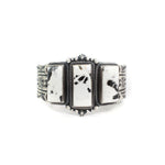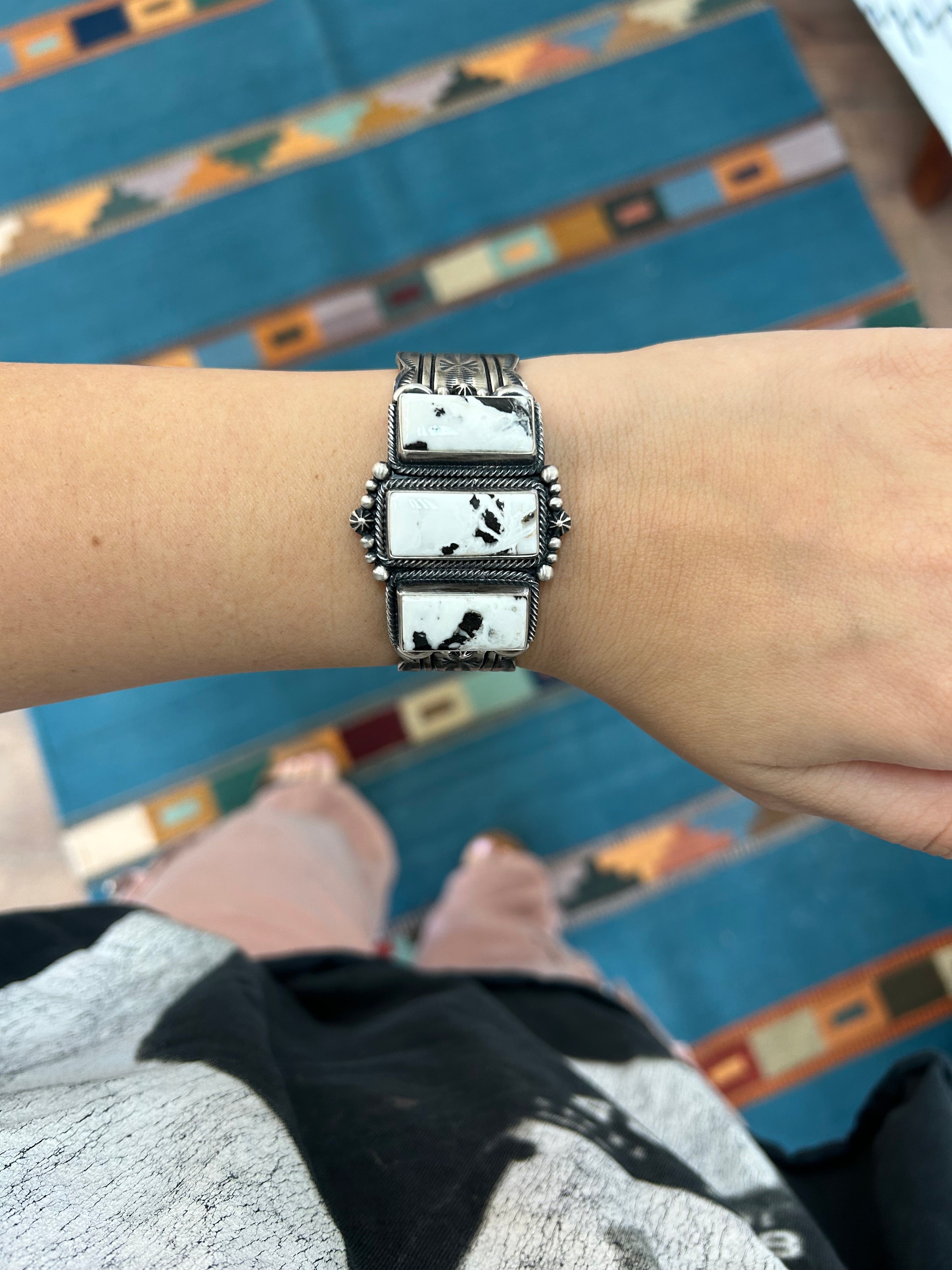 White Buffalo is in fact NOT turquoise. Although White Buffalo is often sold as turquoise, it's classification is actually magnesite and alumite. Its unique coloring comes from the presence of Calcite mineral. The only mine known to be home to White Buffalo is The Dry Creek Mine in Tonopah, NV. It was first discovered by the Otteson family in 1993. The name derives from the Native American belief that white buffaloes are pure and rare like the white buffalo stone. The white stone is surrounded by black and brown flint-like chert which creates beautiful patterns, and sometimes in rare pieces, a spider-web matrix. The stone appears in veins, is as hard as turquoise (Mohs hardness scale of 5.5 to 7.5) and cuts and polishes like turquoise.
