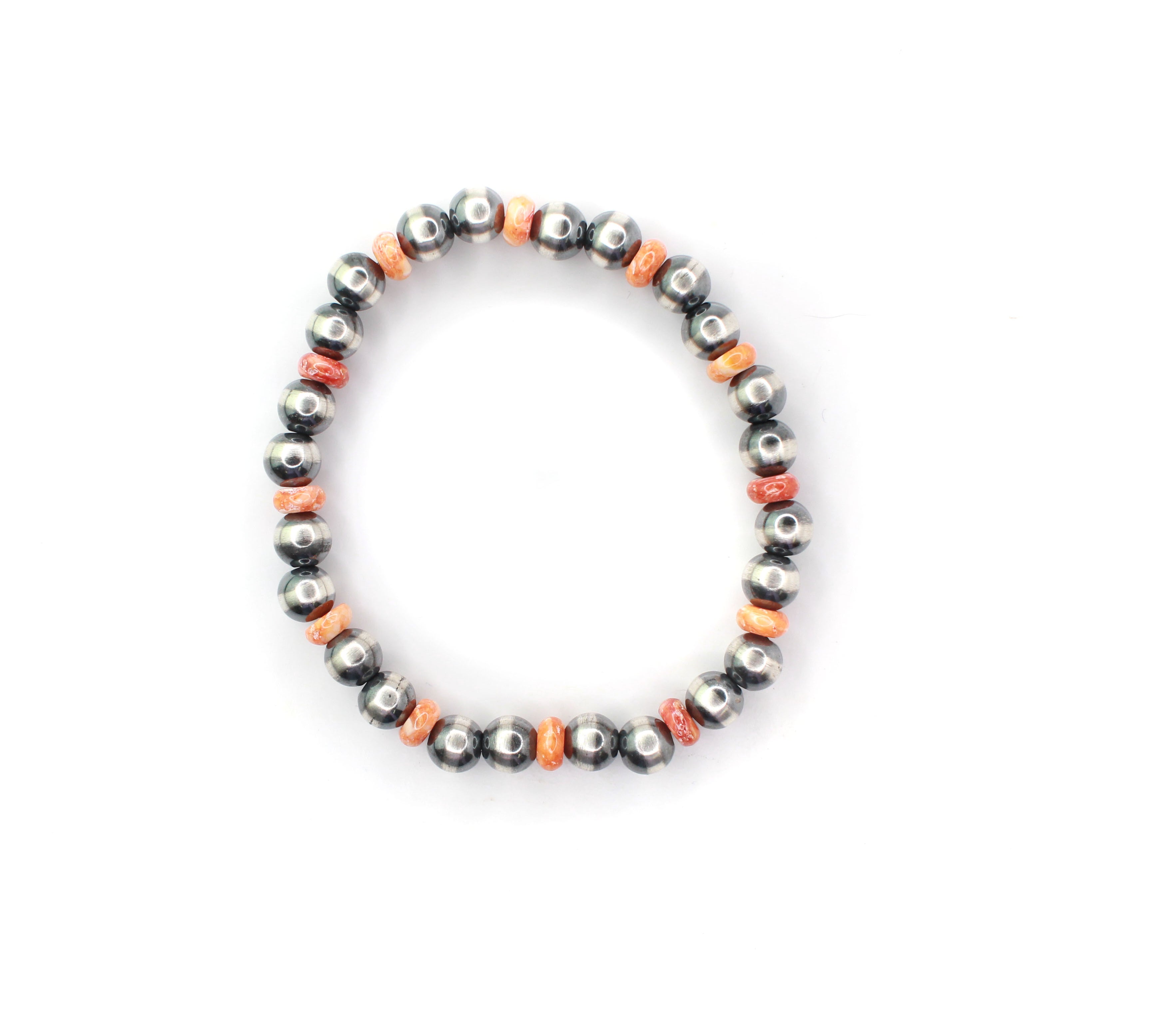 7mm Navajo Pearl Stretch Bracelet- Orange Spiny