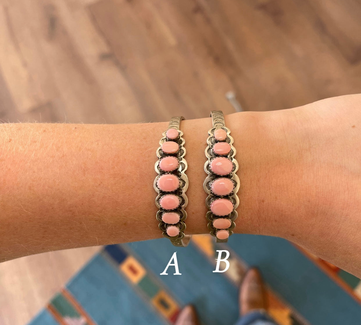 5mm Navajo Pearl Saucer Stretch Bracelet- Pink Conch