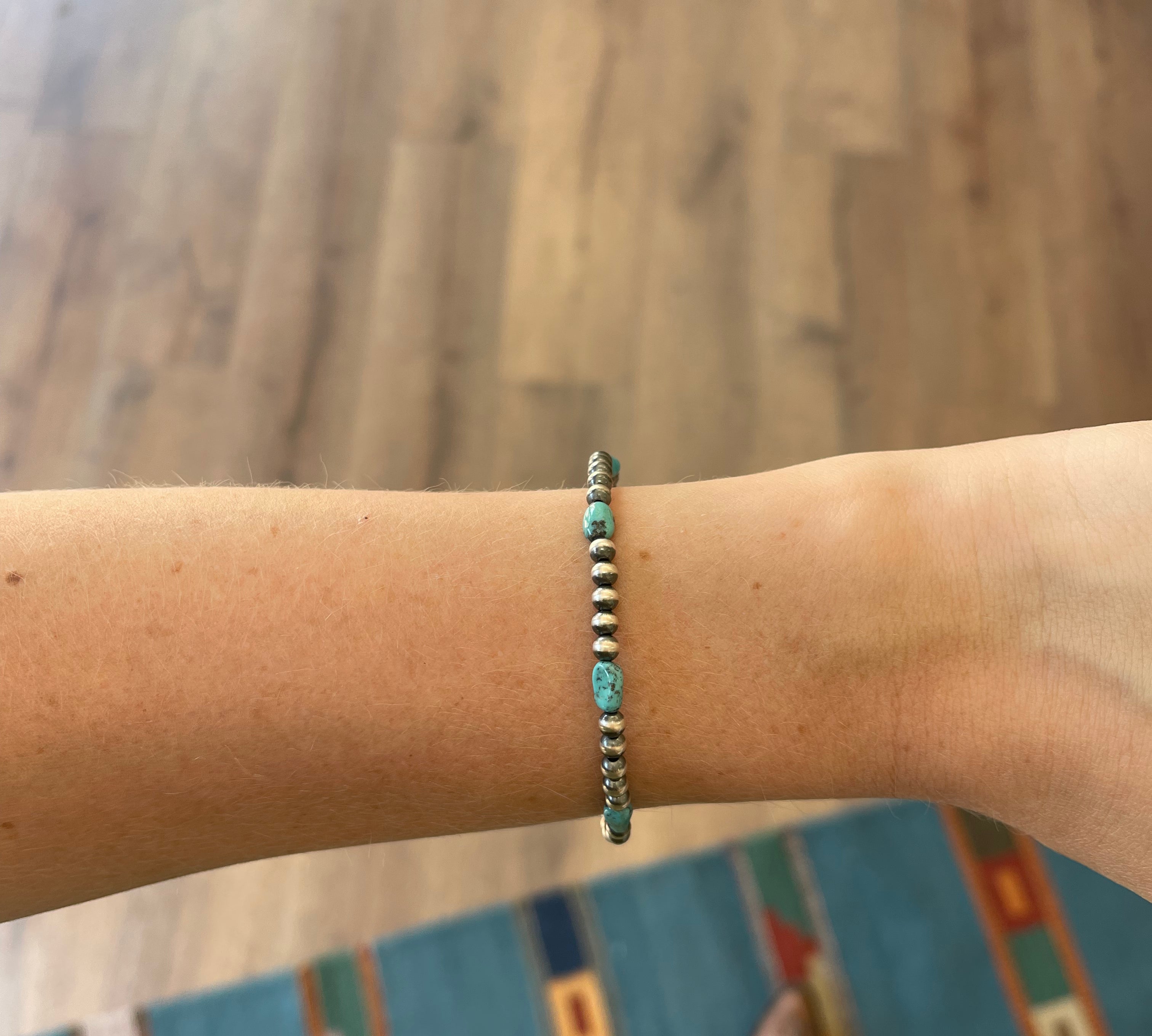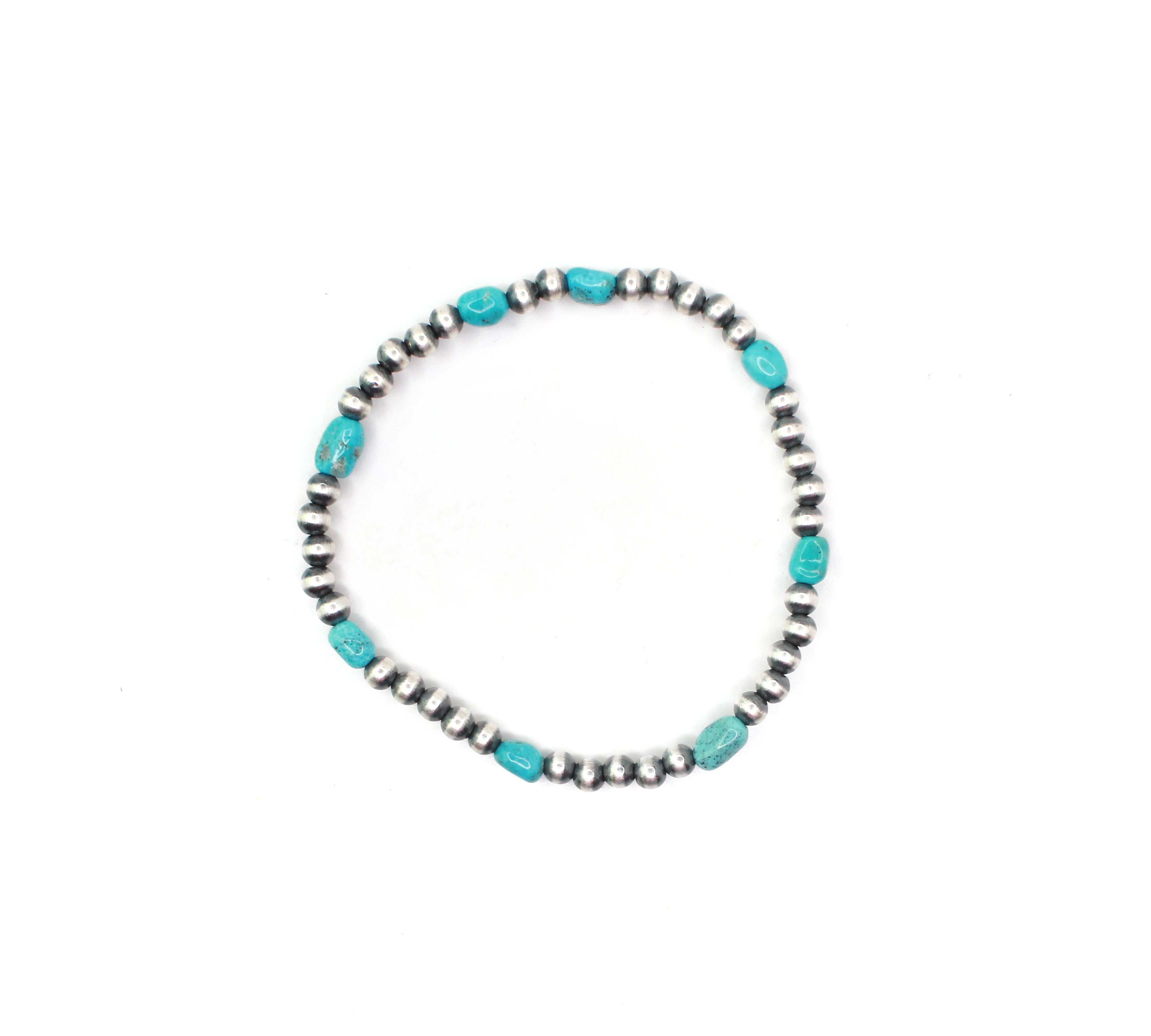 4mm Navajo Pearl Stretch Bracelet- Turquoise Slab
