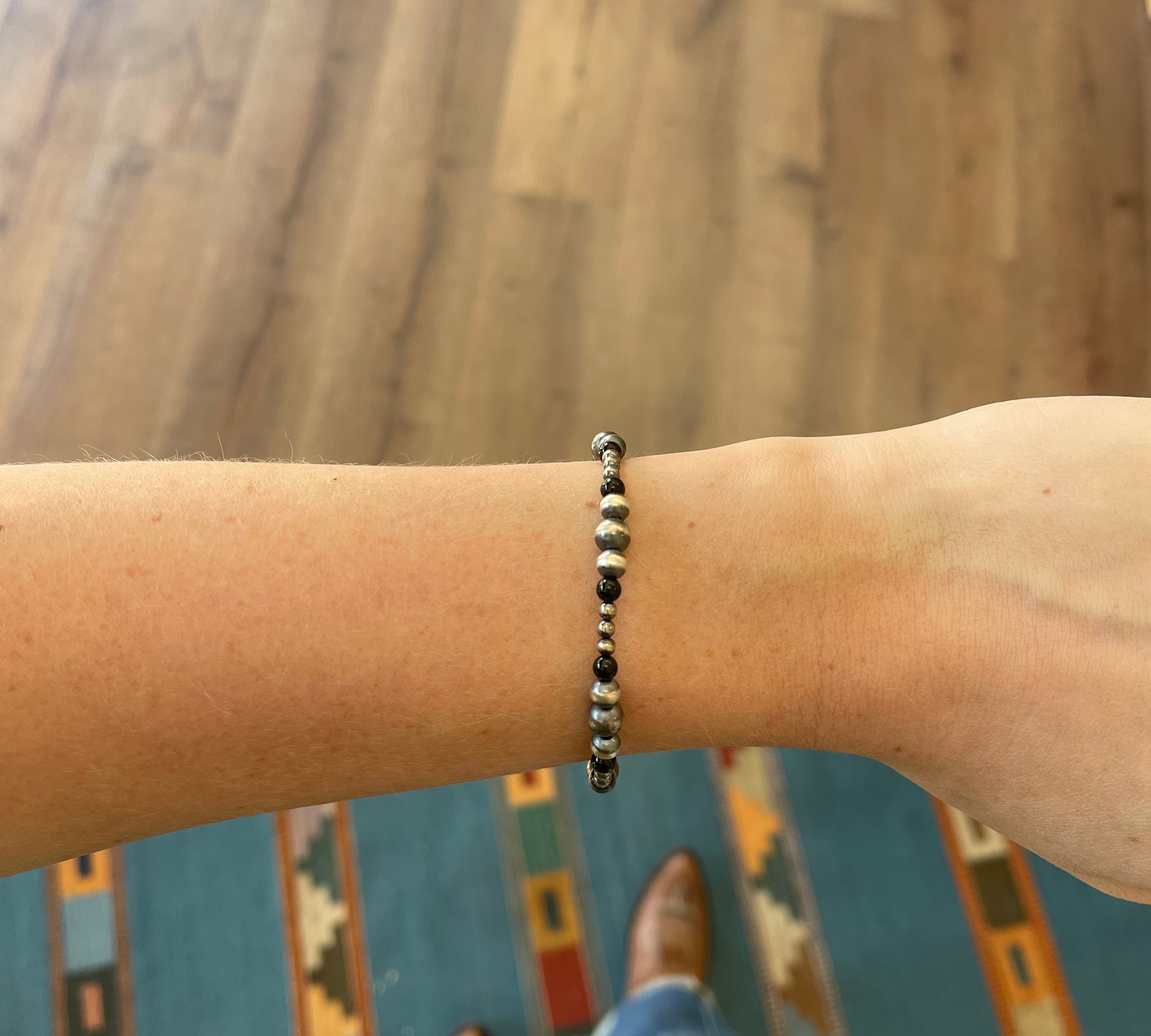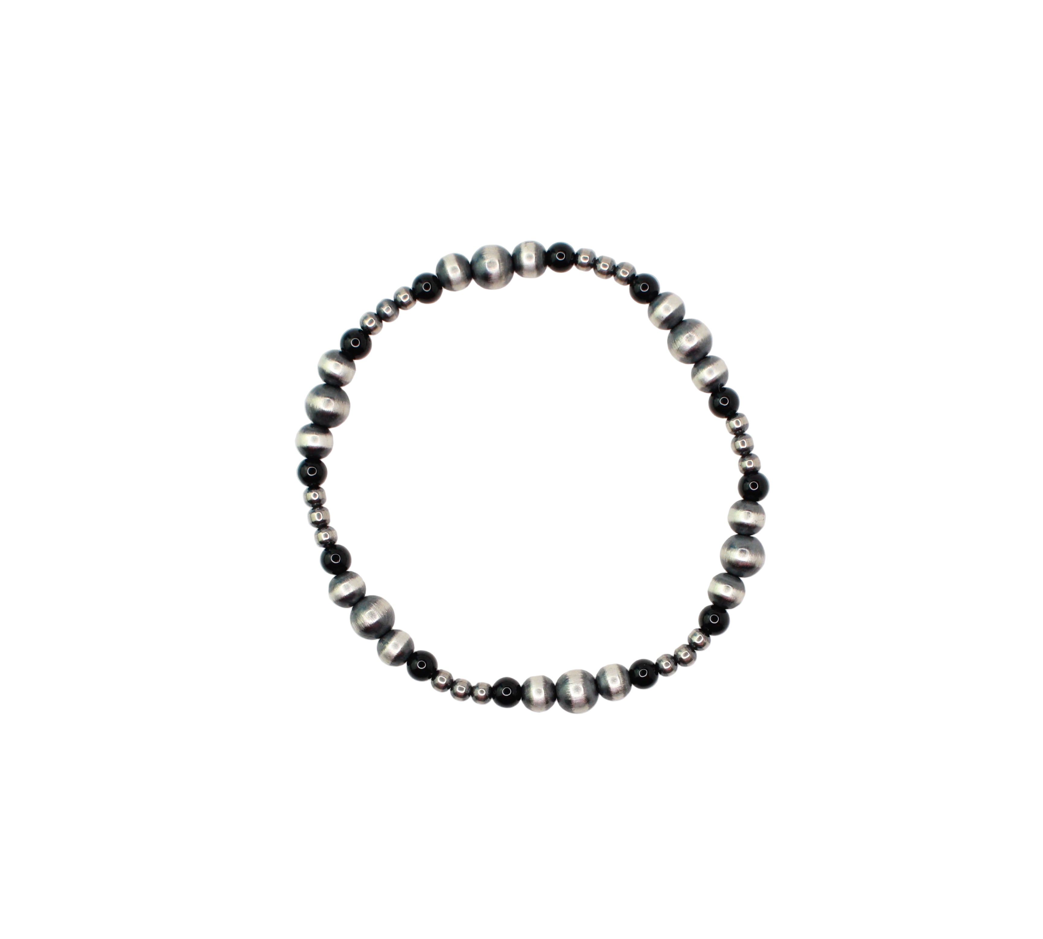 Multi Size Navajo Pearl Stretch Bracelet- Onyx