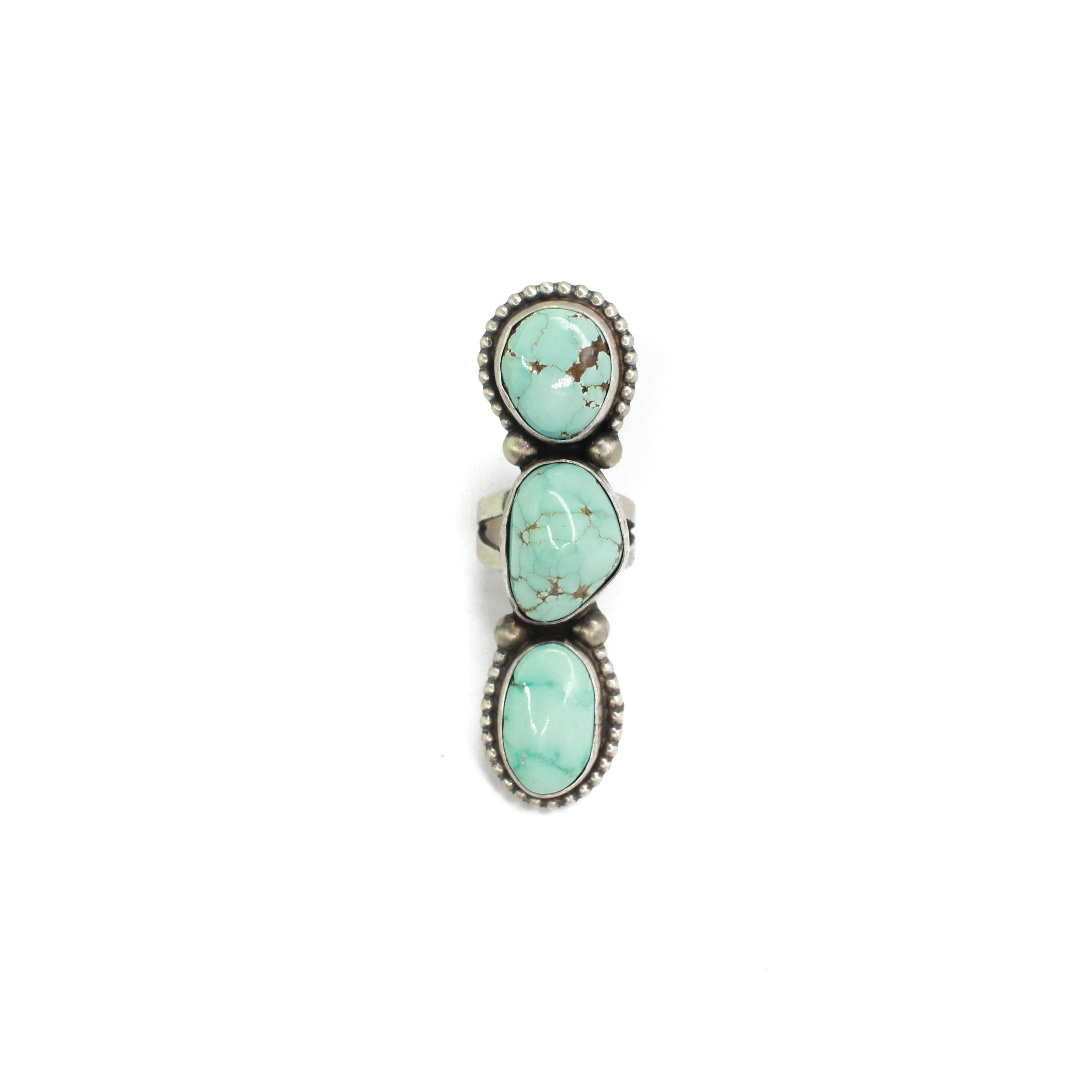 Kathleen Livingston Chavez was born on December 17, 1958, in Church Rock, New Mexico, where she still resides with her husband, Lorenzo Juan. She began her silversmithing journey in 1974, initially creating earrings, rings, and bracelets. By 1994, Kathleen expanded her artistry to include unique, high-end jewelry designs. She expresses great enjoyment in this evolution of her craft, stating, “It is more fun to make because of the amount of thought and imagination you have to put into it.” Today, she operates out of Gallup, New Mexico, continuing to innovate and inspire through her jewelry.