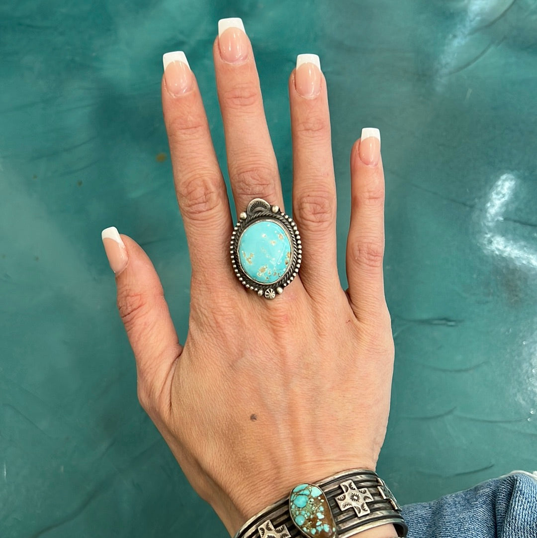 Sheila Becenti is a talented Navajo artist renowned for her outstanding craftsmanship, especially in her cluster work jewelry. With a keen eye for high-quality stones, she creates stunning statement pieces that beautifully reflect her cultural heritage and artistic vision. Her designs artfully blend traditional techniques with a modern twist, resulting in work that is highly coveted within the Native American art community. Sheila's dedication to her craft not only honors her roots but also pushes the boundaries of contemporary Native American jewelry.