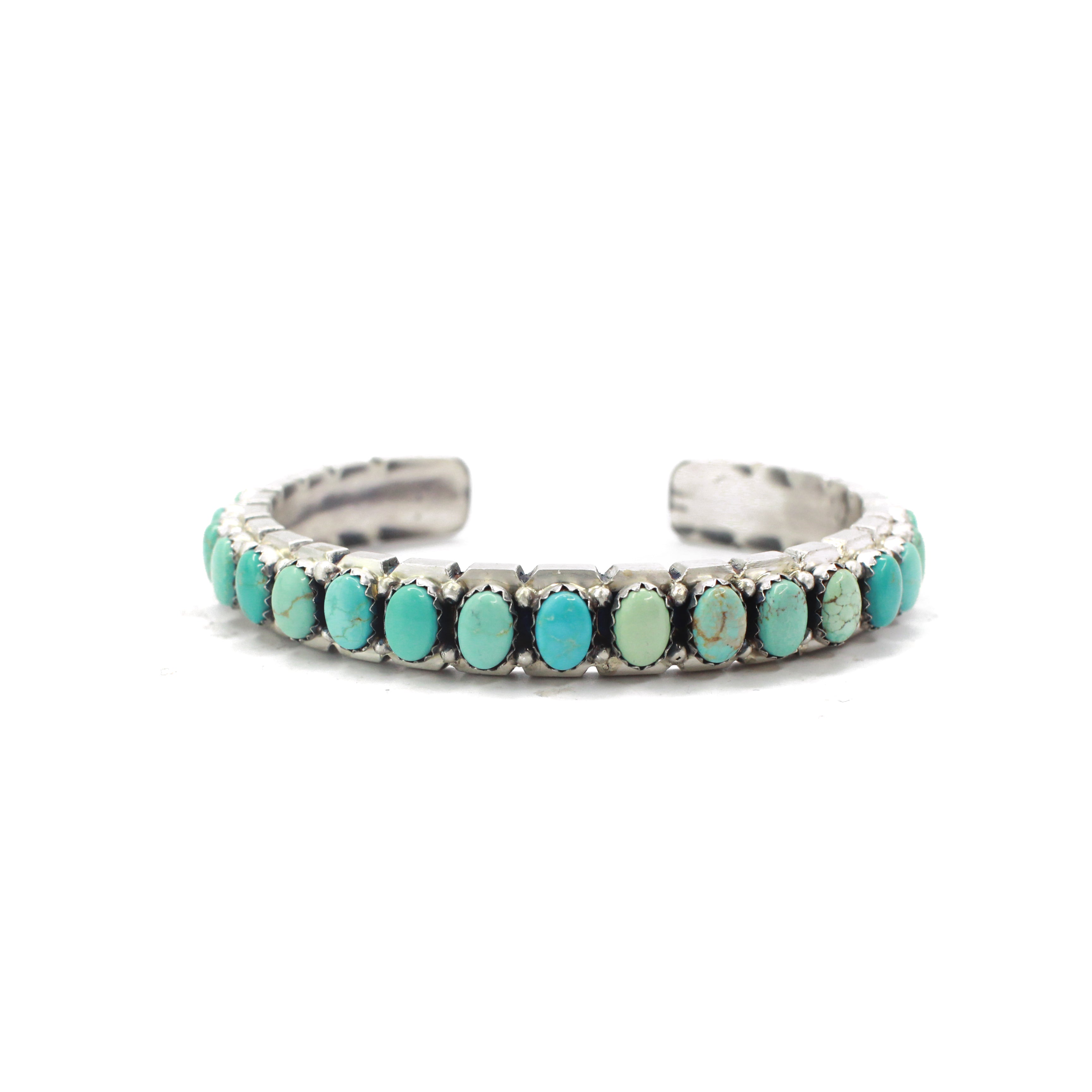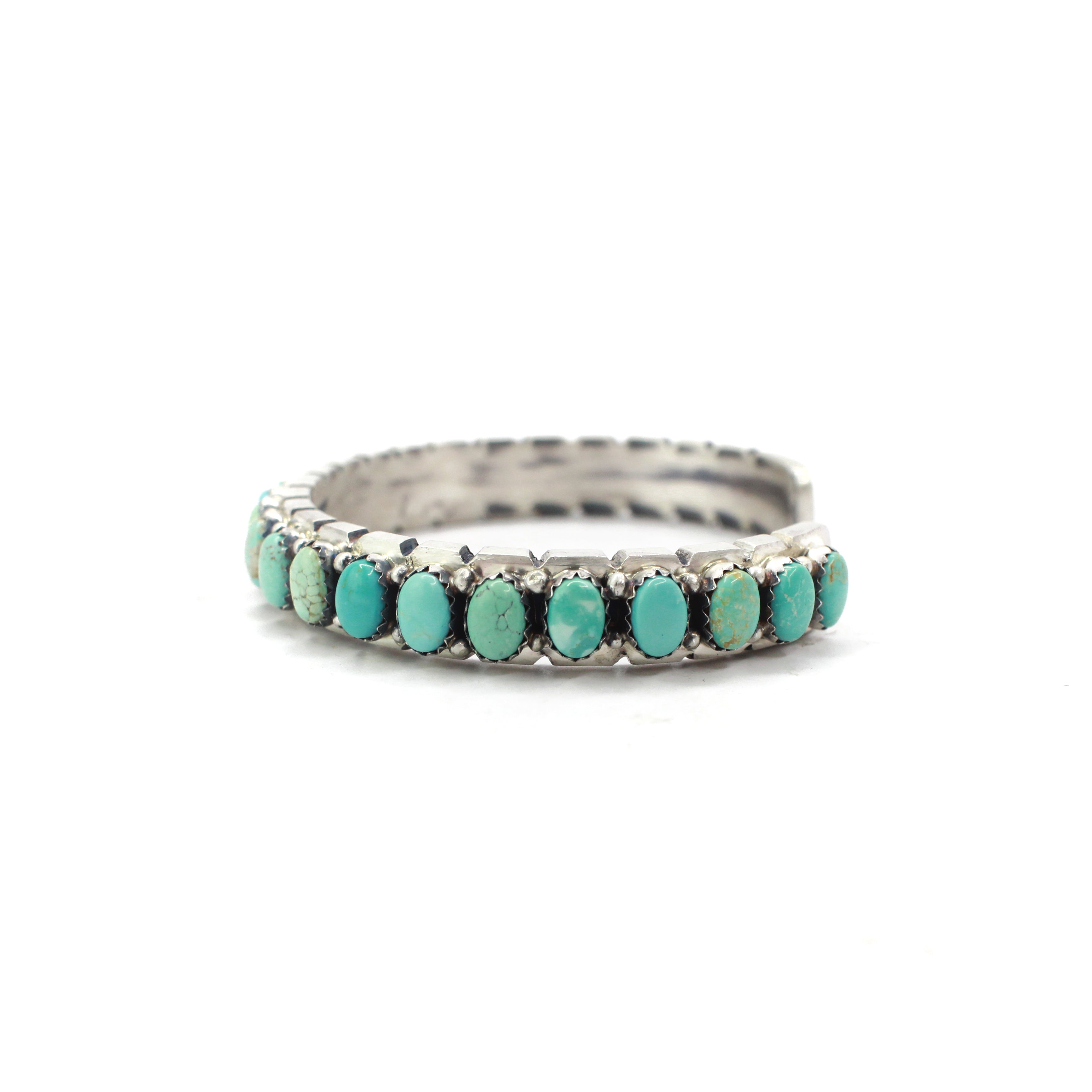 Throughout his nearly forty-year career, Paul has continually pushed the boundaries of traditional Navajo jewelry, experimenting with new techniques, textures, and finishes to enhance the beauty of his pieces. While his work is rooted in traditional and vintage-inspired Navajo styles, his contemporary designs are equally popular. His intricate saw work demonstrates the technical expertise and artistic vision that have come to define his jewelry. Paul Livingston's creations honor his heritage while standing out for their beauty and craftsmanship, making them highly prized among collectors and art enthusiasts alike.