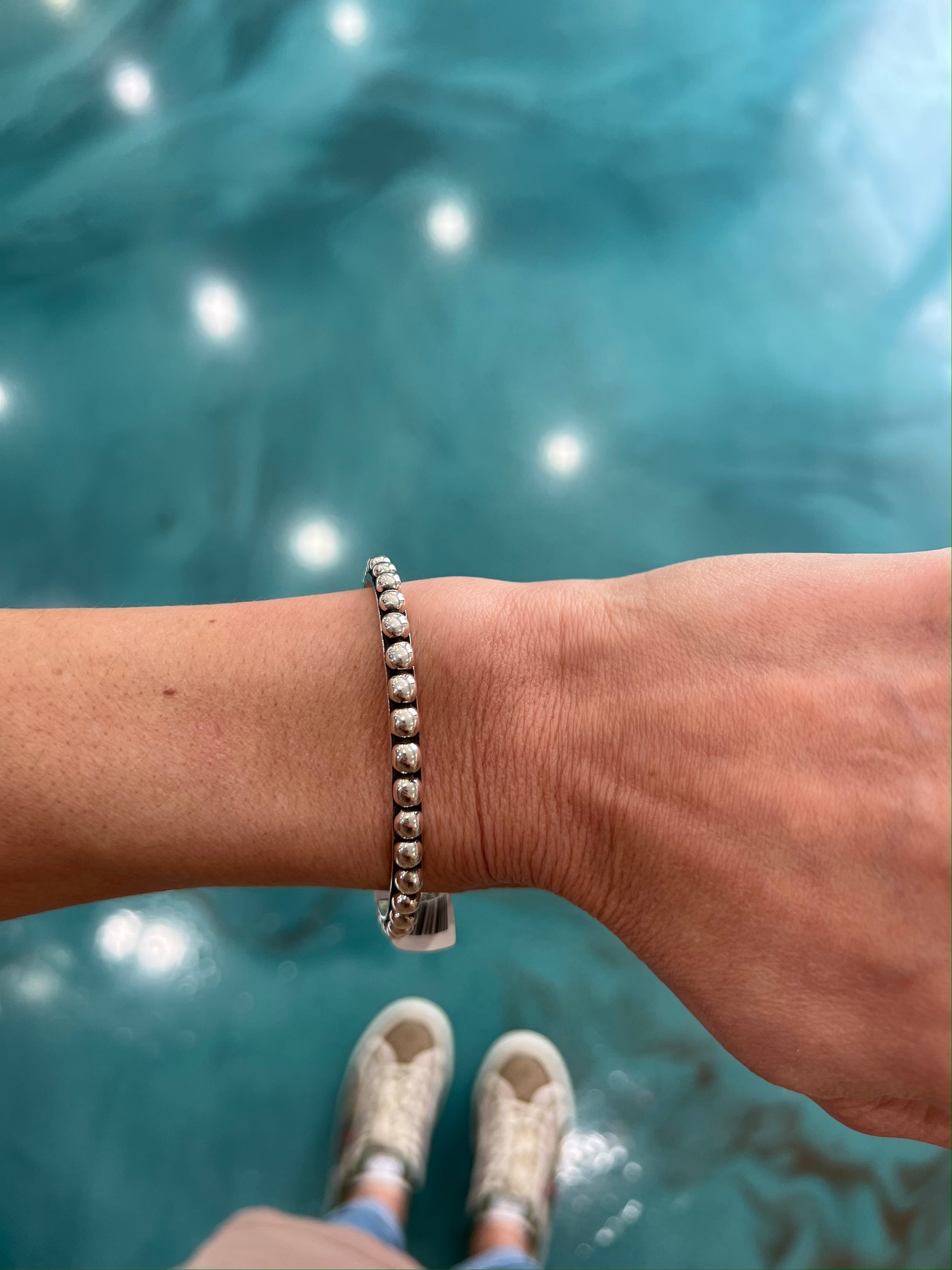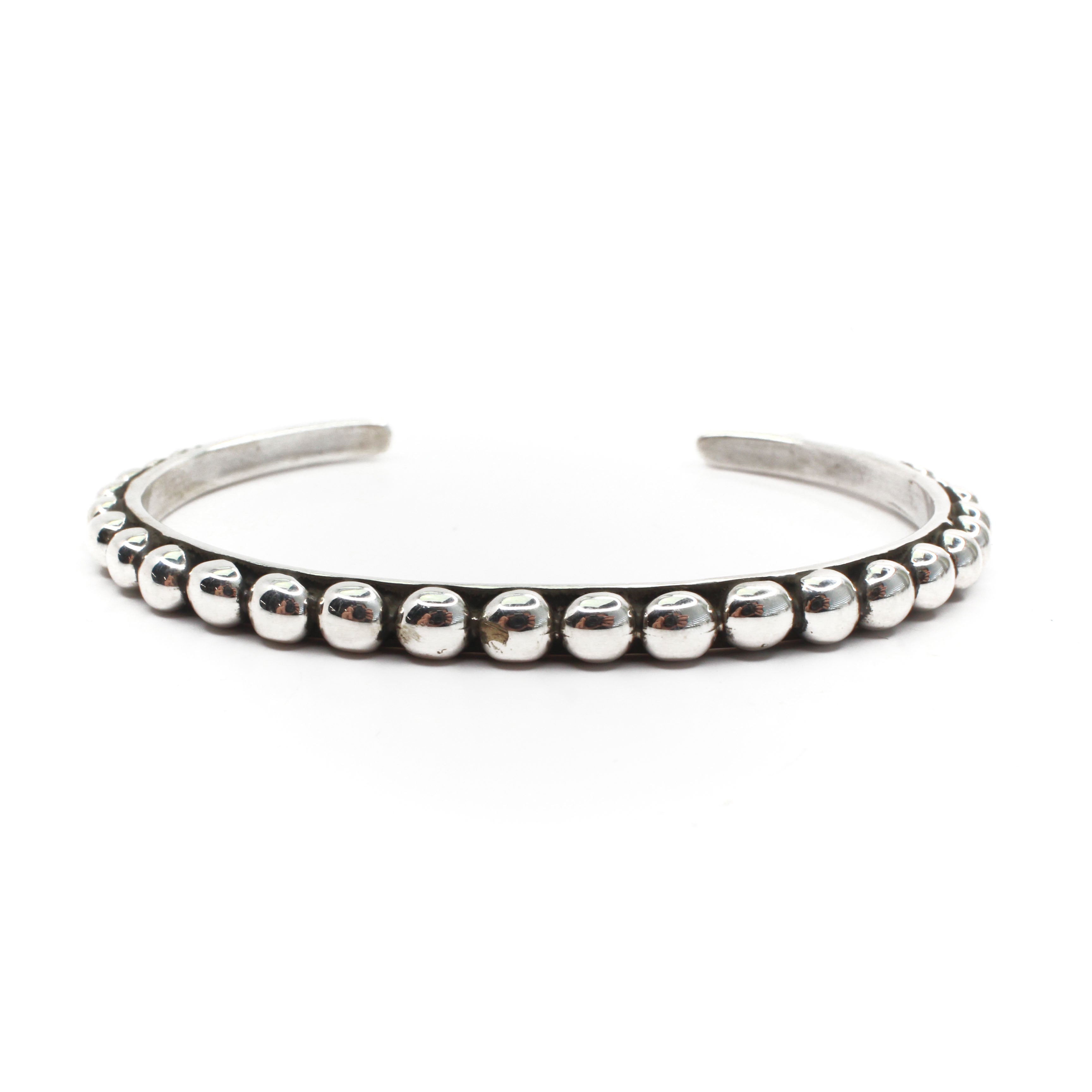 Bernyse is a Navajo silversmith from To’hajillee, NM, with roots in the Red Running into Water clan on her mother's side and the Born for Salt clan on her father's side. She has been honing her silversmithing skills since 1985, learning the craft from her older sister, JoAnn Chavez. With great appreciation, Bernyse remembers the patience her sister showed while teaching her the intricate process of creating silver jewelry. She learned that every piece, regardless of its simplicity, should be crafted by hand as a work of art. Her expertise ranges from plain bezel-set stones to complex stamping techniques, showcasing her versatility as an artisan.