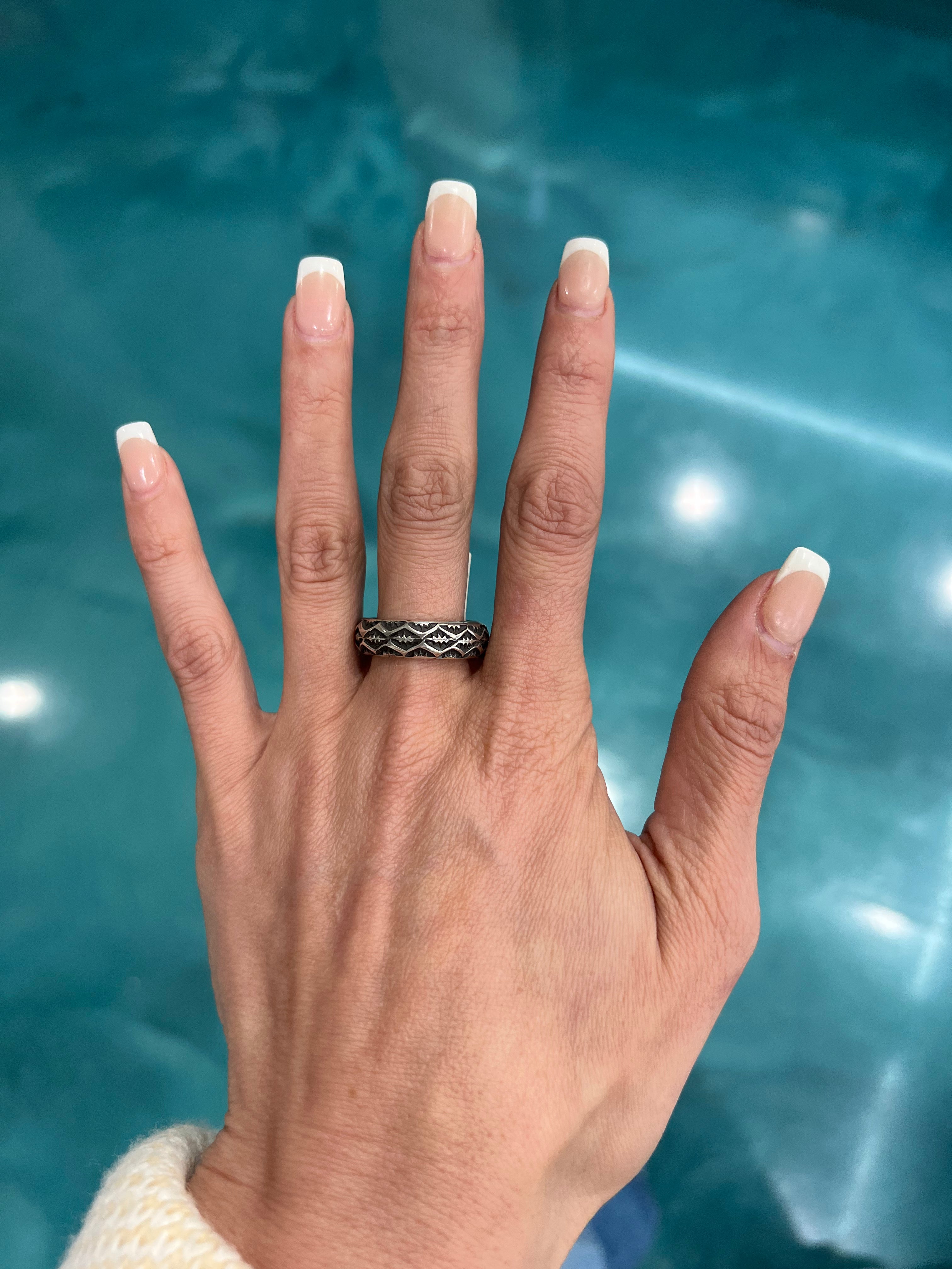 Daniel “Sunshine” Reeves is a celebrated silversmith hailing from New Mexico, renowned for his intricate and distinctive jewelry pieces. Raised in a family of silversmiths, he learned the art from his brothers, Gray and David Reeves, who instilled in him the value of craftsmanship. His creative process involves transforming flat sheets of silver through an extensive method of deep hand-stamping and shaping, resulting in beautifully crafted items such as bracelets, boxes, and even kerosene lanterns. Each piece showcases a remarkable level of artistry, with every mark on the silver representing a precise hammer blow.
