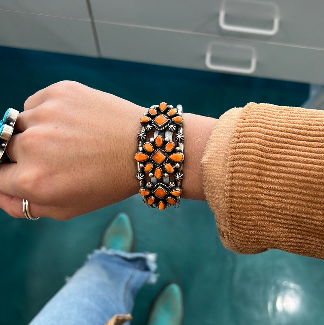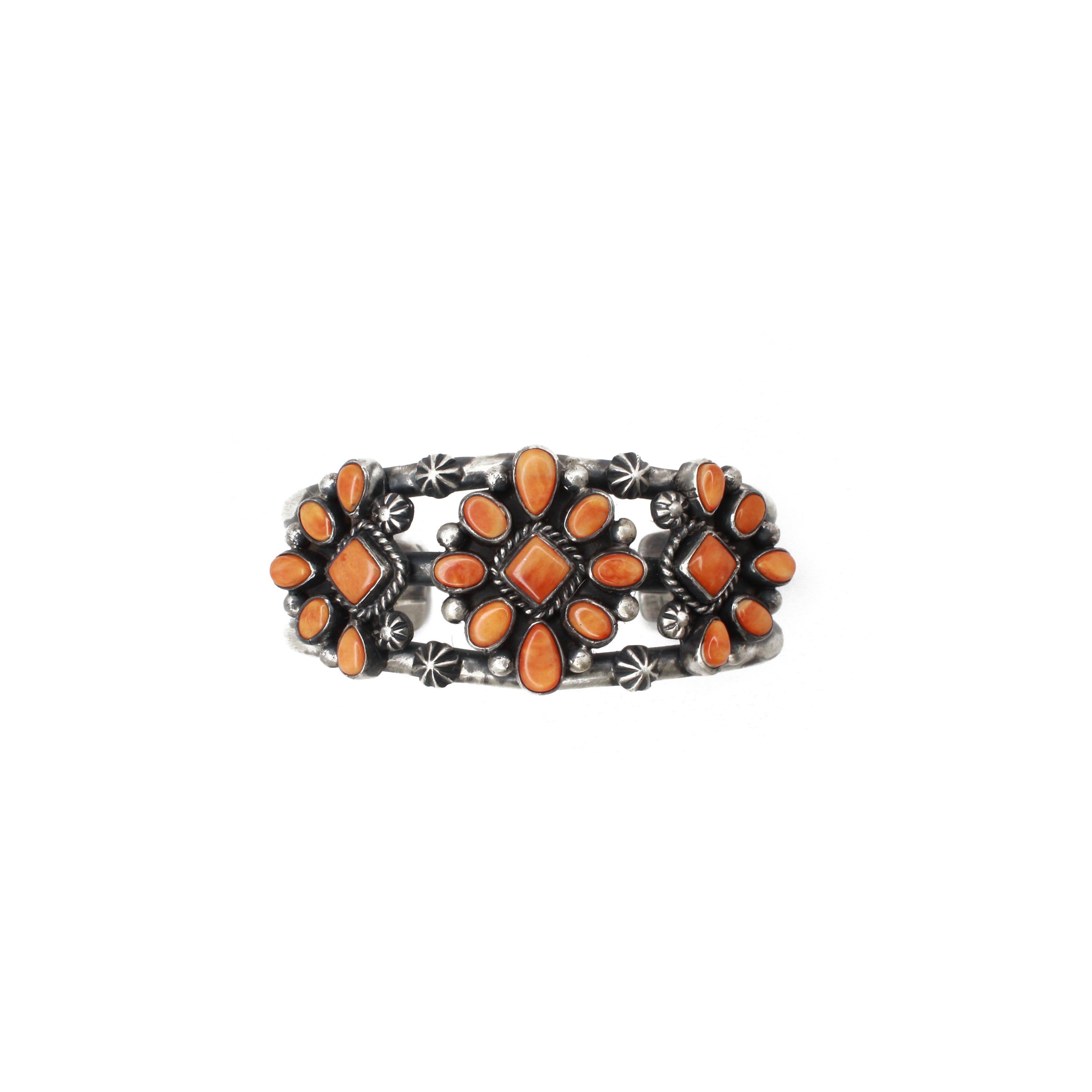 Spiny Oyster is a vibrant shell material commonly found in orange, red, and purple hues, with rare yellow variations. The colors are influenced by the mollusks' diet and the water's depth and temperature. It can be distinguished from coral by the white variations in its shell. Predominantly sourced from the Sea of Cortez (Gulf of California), Spiny Oyster is used extensively in Native American jewelry. Read More