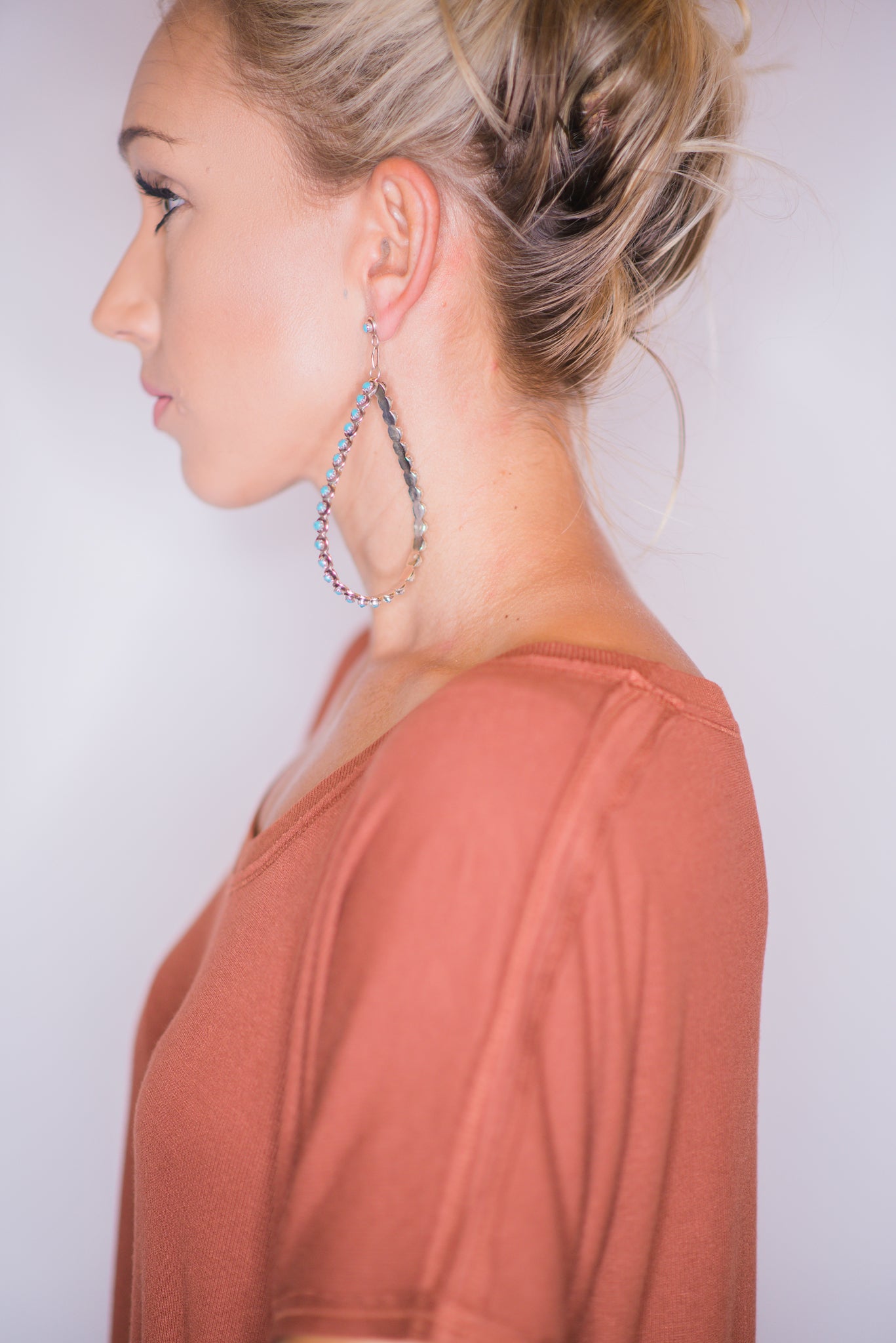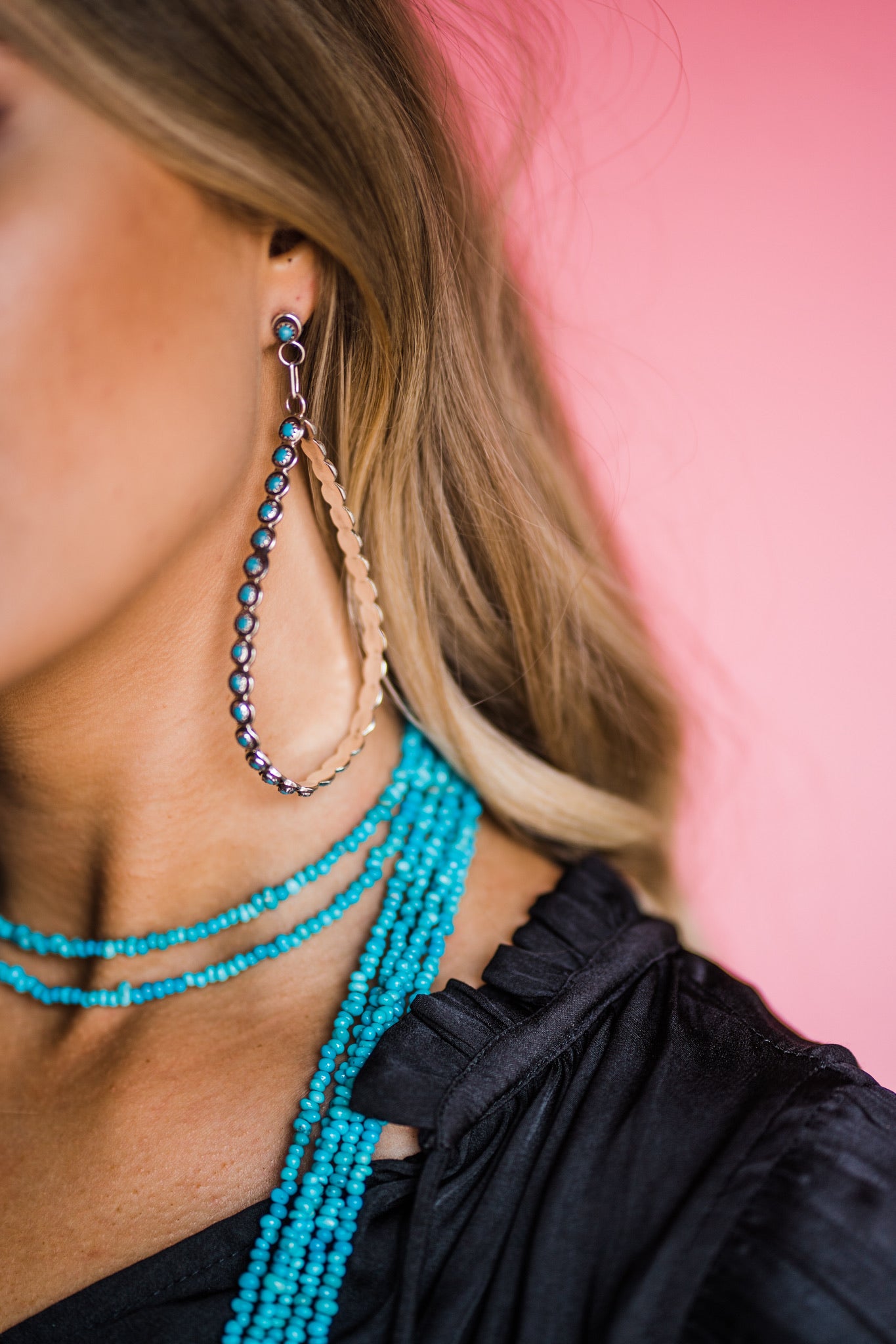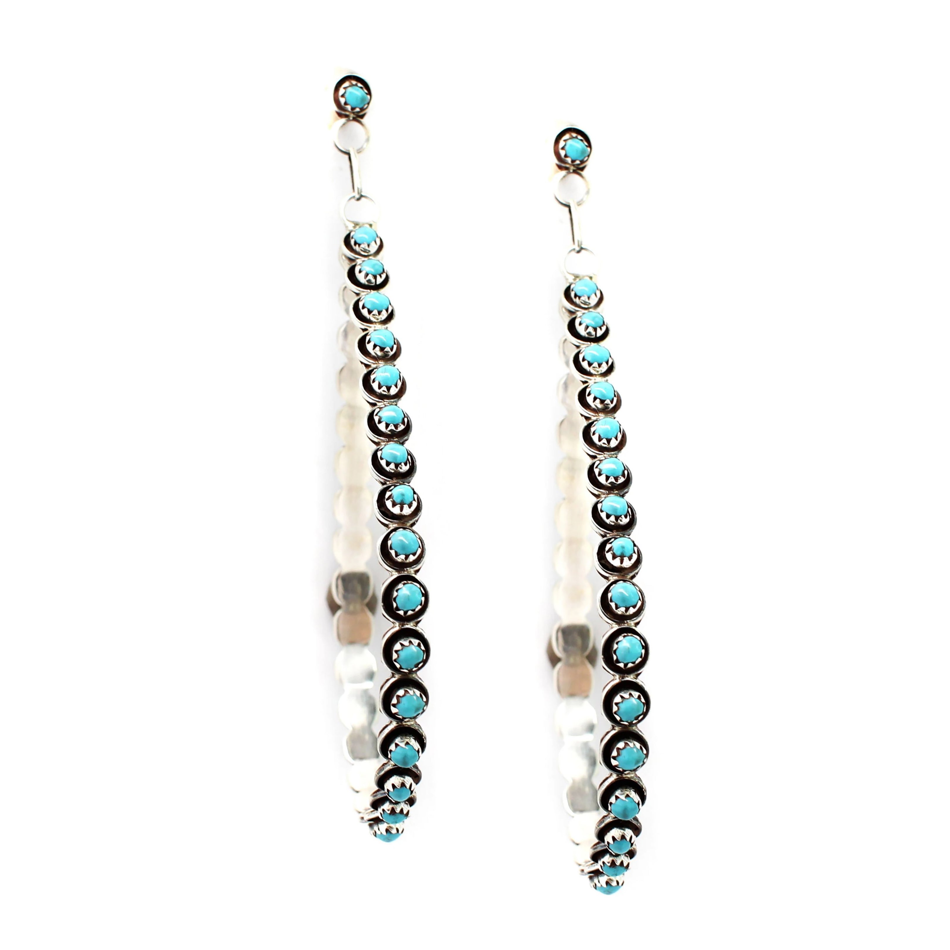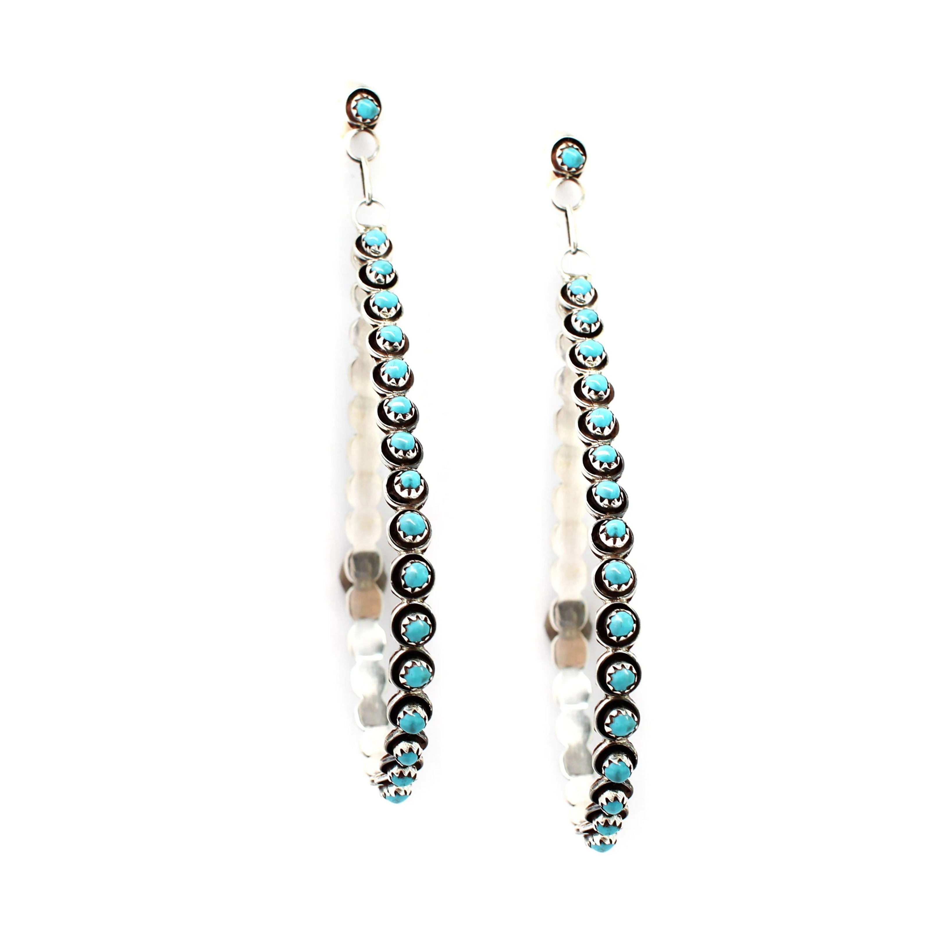 The Post Zuni Teardrop Hoops-Turquoise: 4"
