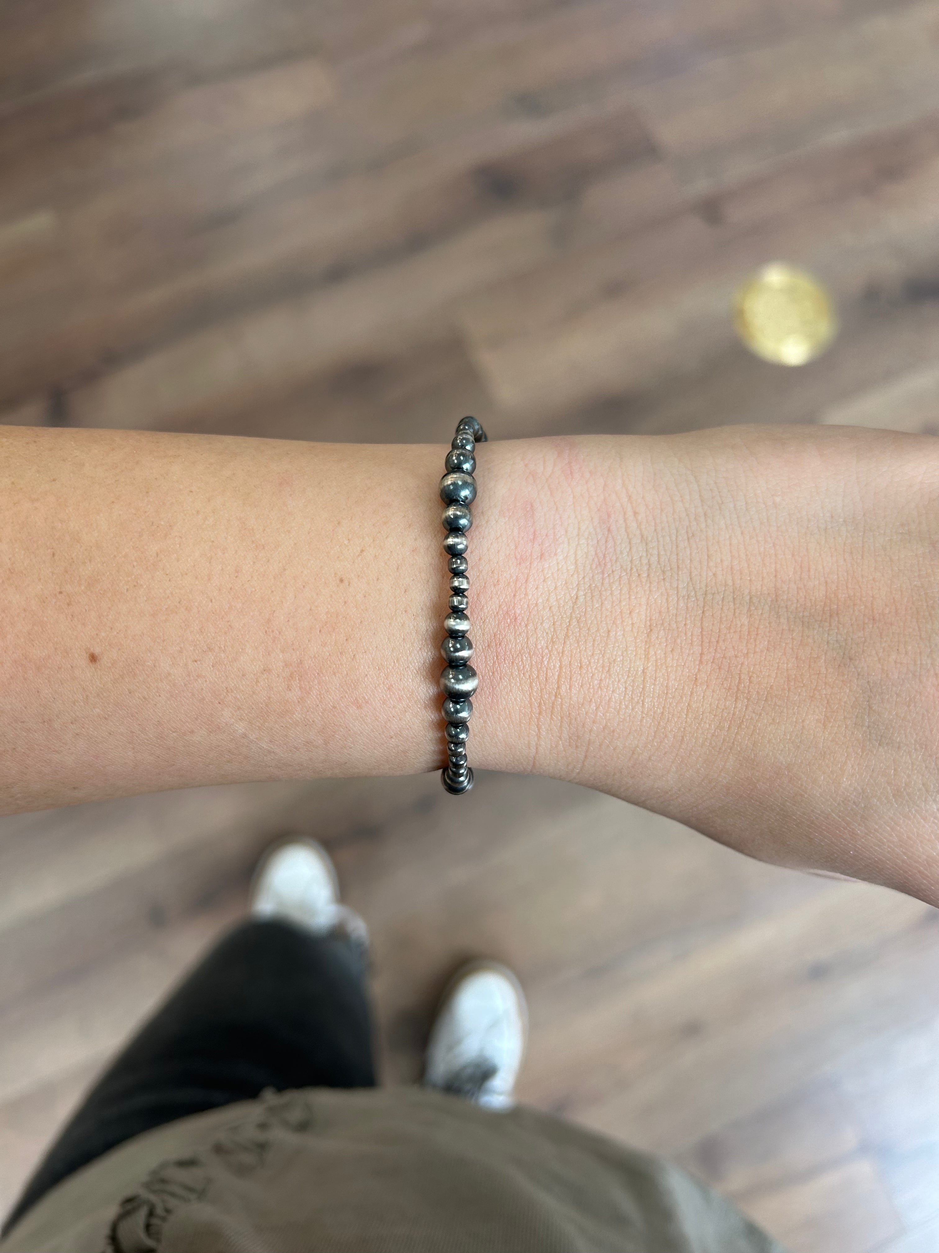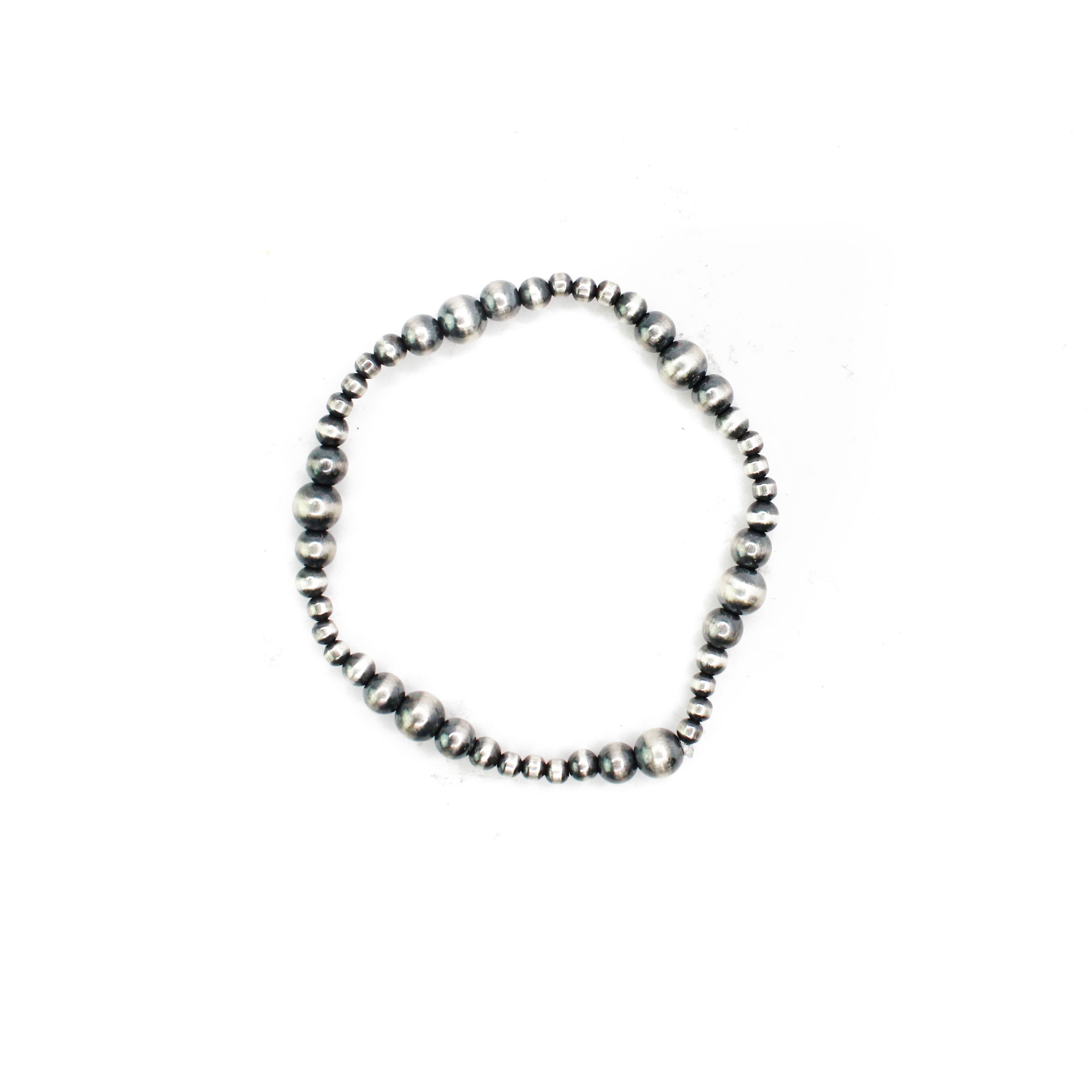 Multi Size Navajo Pearl Stretch Bracelet - Silver