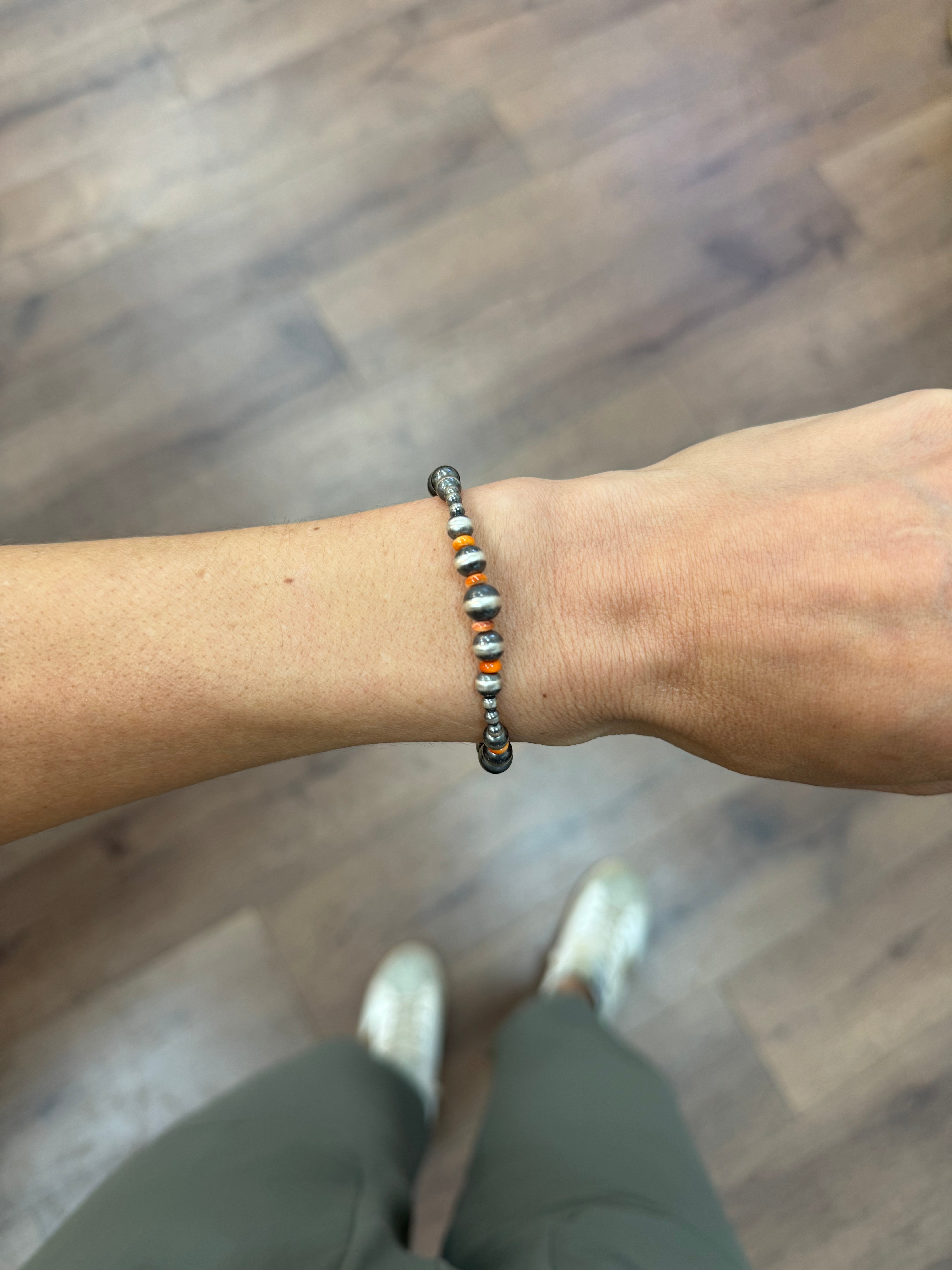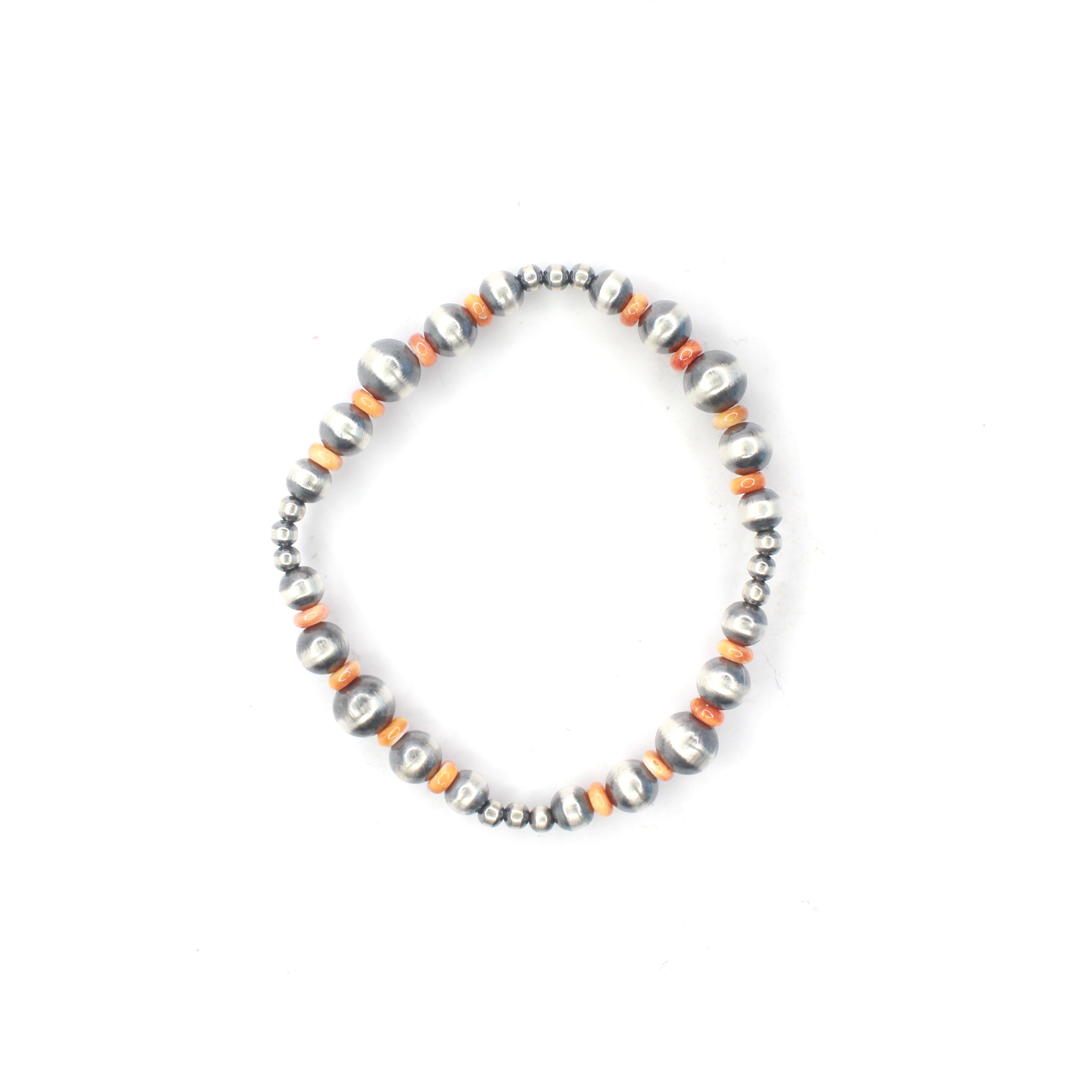 Multi Size Navajo Pearl Stretch Bracelet - Orange Spiny Oyster