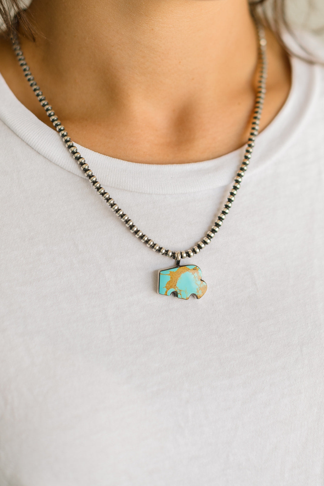 Pictured on 4mm, 18" Navajo Pearls Not Included
