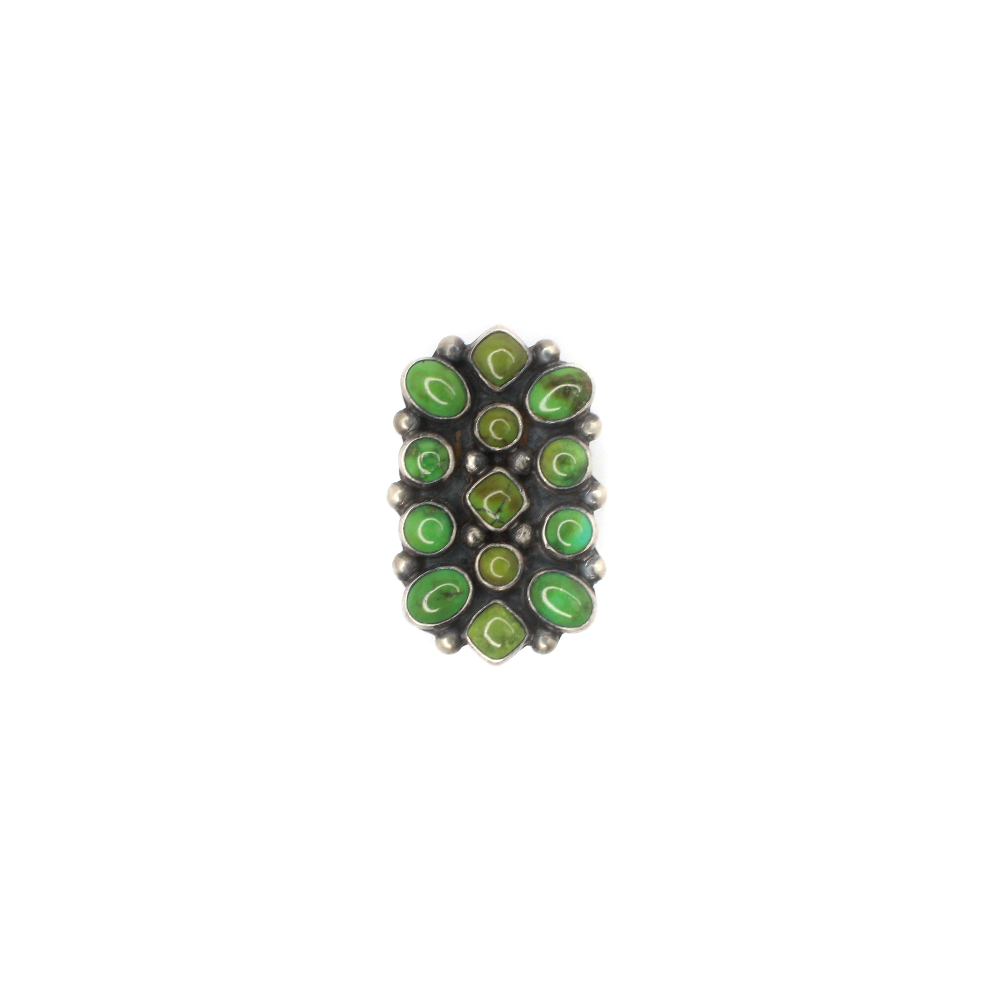Kathleen Livingston Chavez was born on December 17, 1958, in Church Rock, New Mexico, where she still resides with her husband, Lorenzo Juan. She began her silversmithing journey in 1974, initially creating earrings, rings, and bracelets. By 1994, Kathleen expanded her artistry to include unique, high-end jewelry designs. She expresses great enjoyment in this evolution of her craft, stating, “It is more fun to make because of the amount of thought and imagination you have to put into it.” Today, she operates out of Gallup, New Mexico, continuing to innovate and inspire through her jewelry.