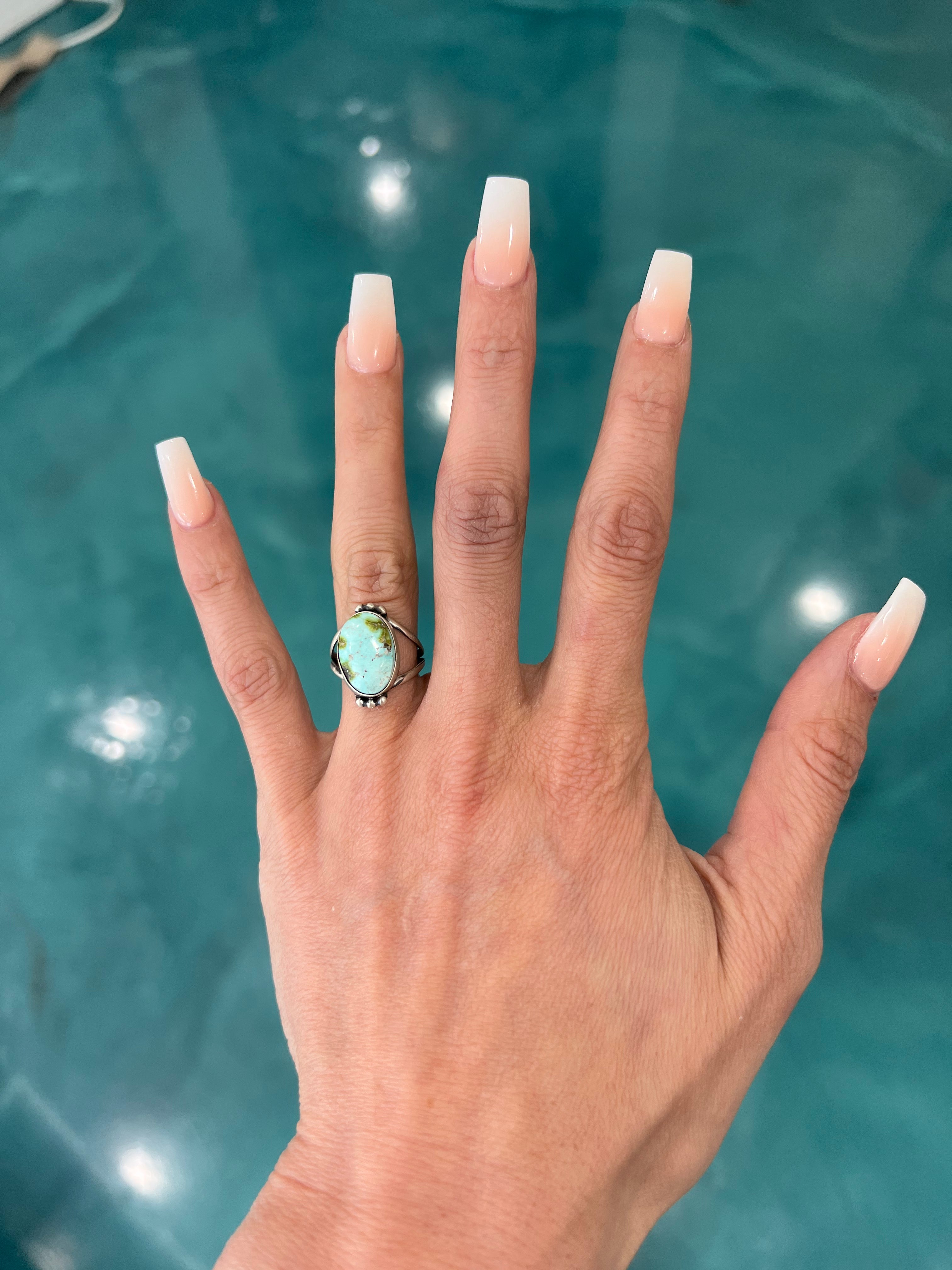 Sonoran turquoise, mined from the Campitos Mountain near Cananea, Sonora, Mexico. This region produces several distinctive types, including Sonoran Gold, known for its vibrant colors like aqua blue, lime, and two-tone blue and green with a golden-brown matrix; Sonoran Rose, a natural bright blue turquoise; and Sonoran Blue, valued for its hardness, shiny pyrite flakes, and black oxide veins.