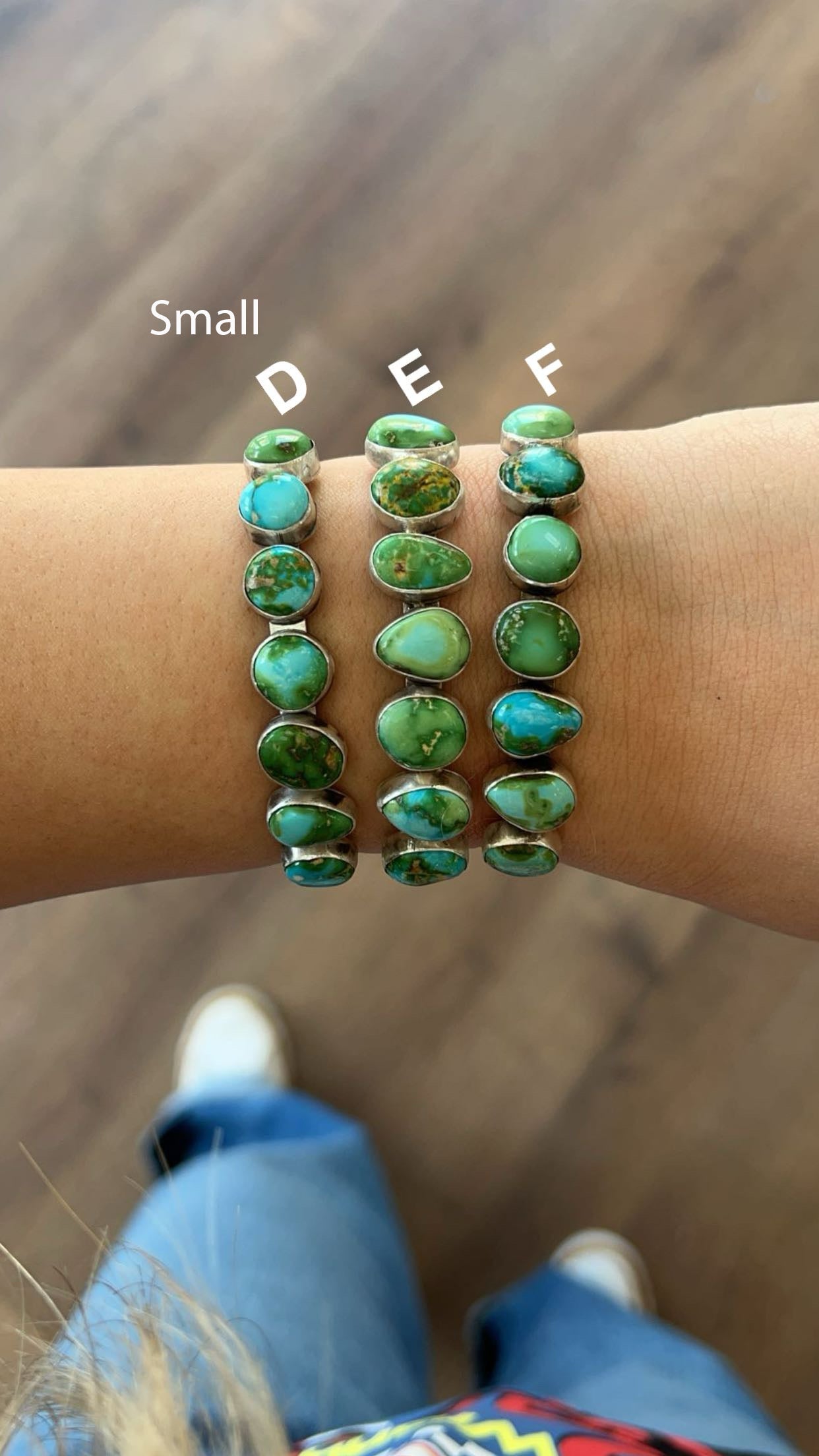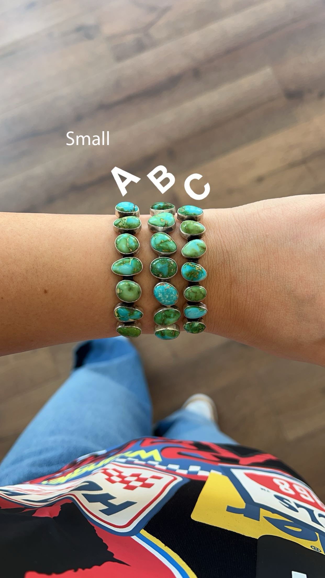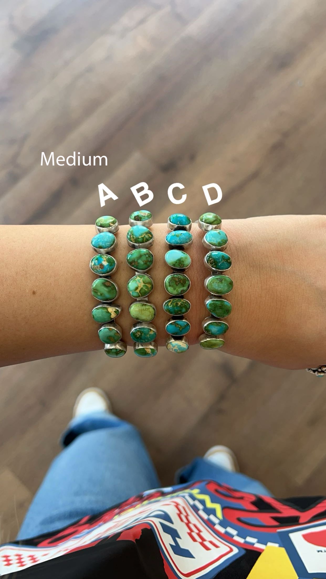 Sonoran turquoise, mined from the Campitos Mountain near Cananea, Sonora, Mexico. This region produces several distinctive types, including Sonoran Gold, known for its vibrant colors like aqua blue, lime, and two-tone blue and green with a golden-brown matrix; Sonoran Rose, a natural bright blue turquoise; and Sonoran Blue, valued for its hardness, shiny pyrite flakes, and black oxide veins.