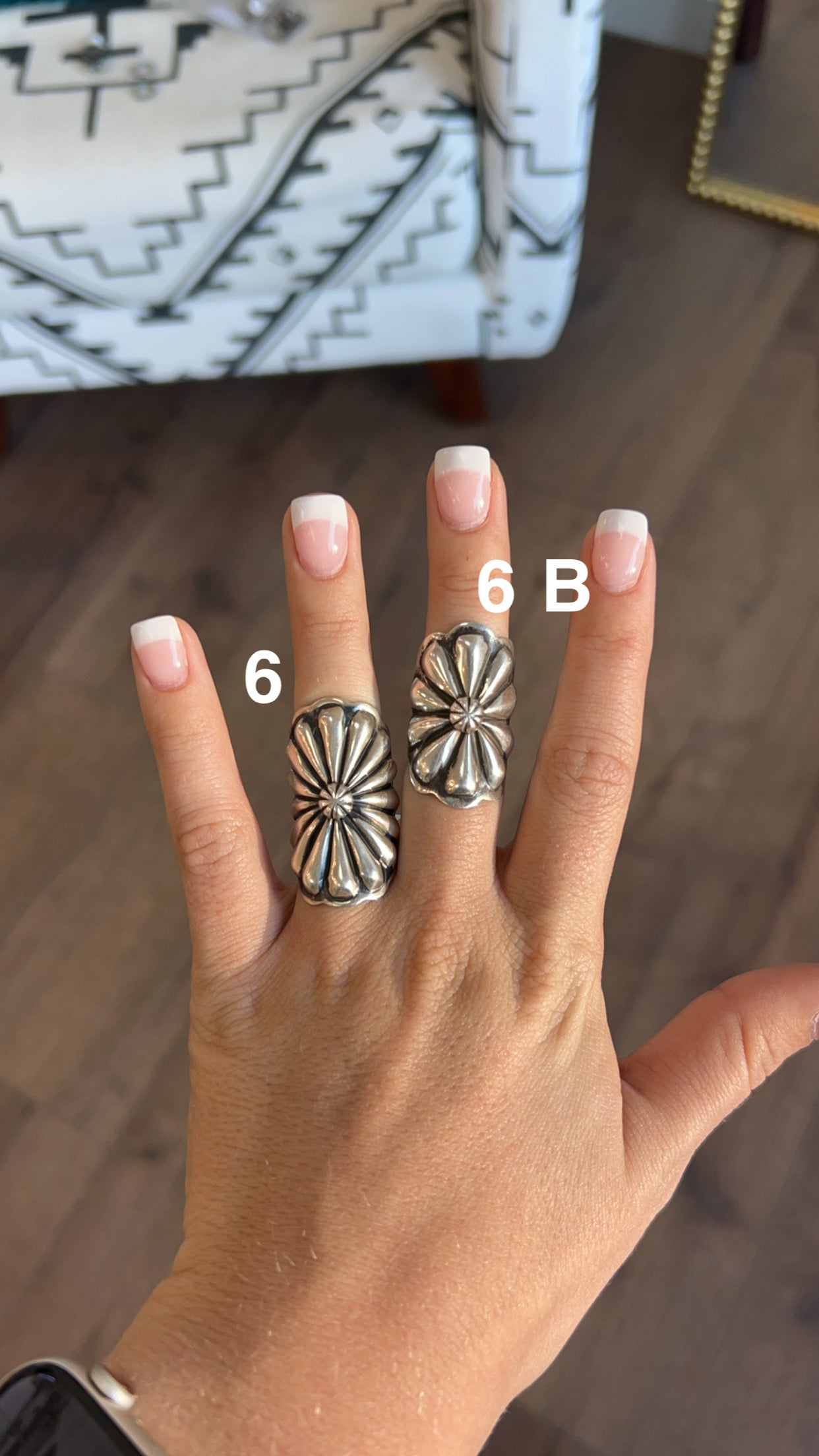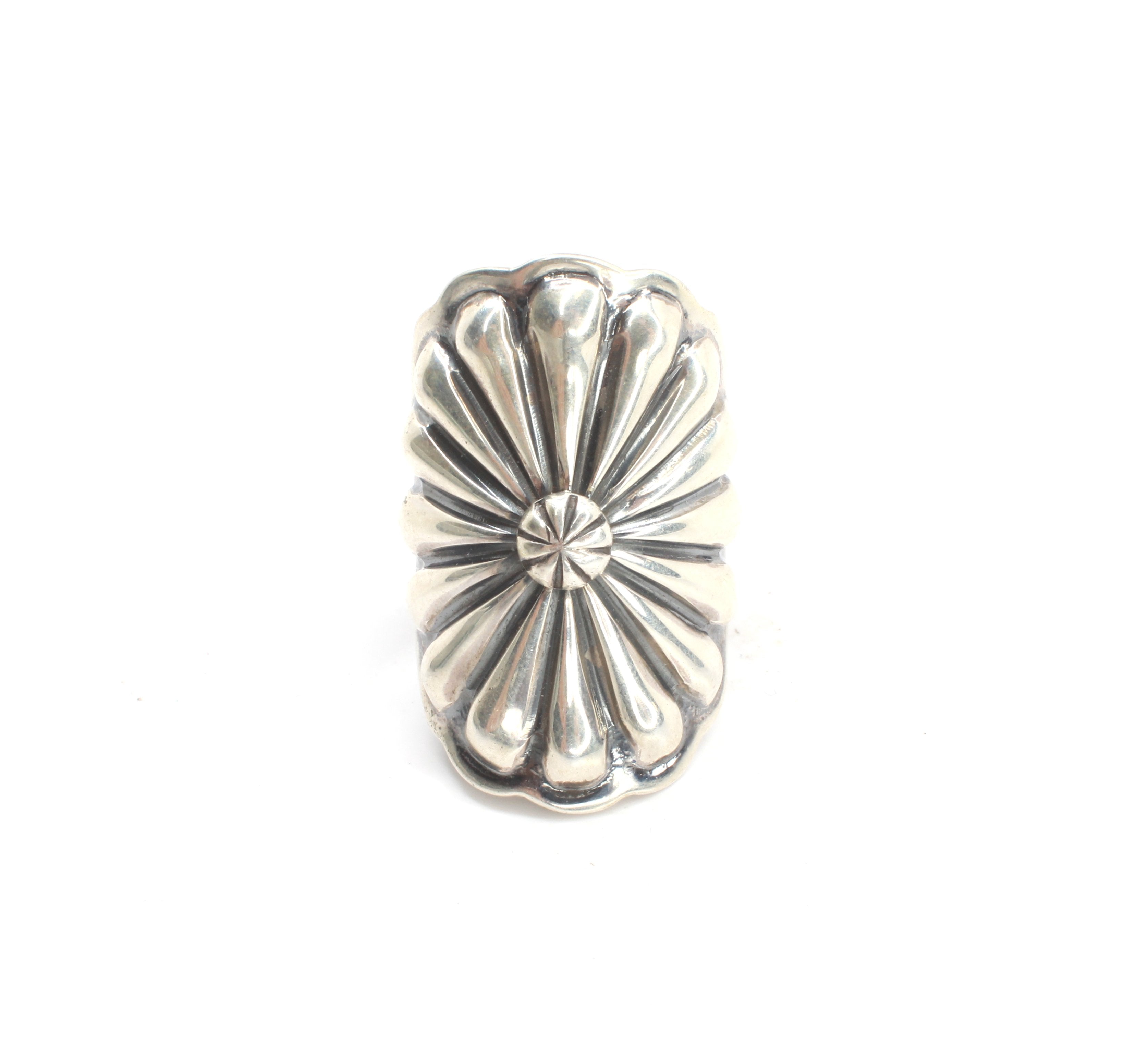 This group of relatively young smiths, having trained under David, shares a common background of apprenticeship, which is reflected in the similarities of their work. Darrel has been crafting and selling silver pieces since 1992, perfecting the traditional art of cluster work. His most sought-after pieces feature heavy silver and an array of stones, showcasing his mastery of distinctive deep stamping in traditional Navajo patterns. Darrel consistently emphasizes texture and depth in his designs, producing both highly adorned pieces and those with clean, simple lines. He signs his work with a "D" or "D Cadman" along with a ram's head.