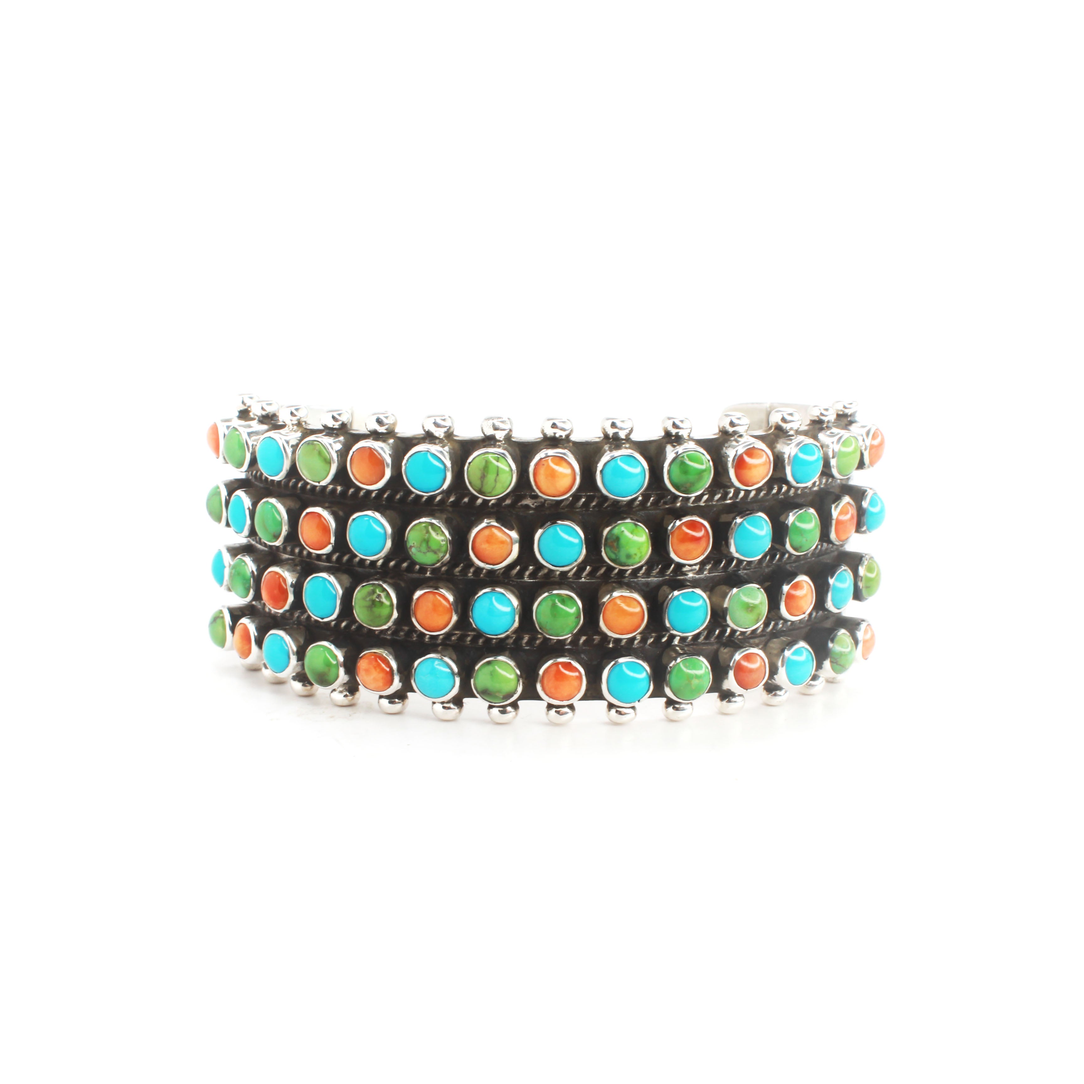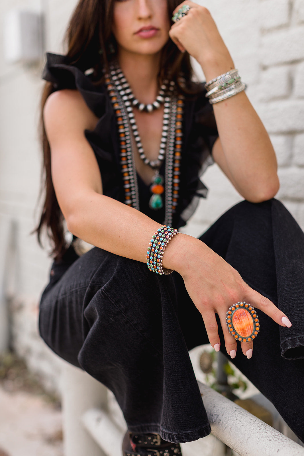 Spiny Oyster is a vibrant shell material commonly found in orange, red, and purple hues, with rare yellow variations. The colors are influenced by the mollusks' diet and the water's depth and temperature. It can be distinguished from coral by the white variations in its shell. Predominantly sourced from the Sea of Cortez (Gulf of California), Spiny Oyster is used extensively in Native American jewelry. Read More