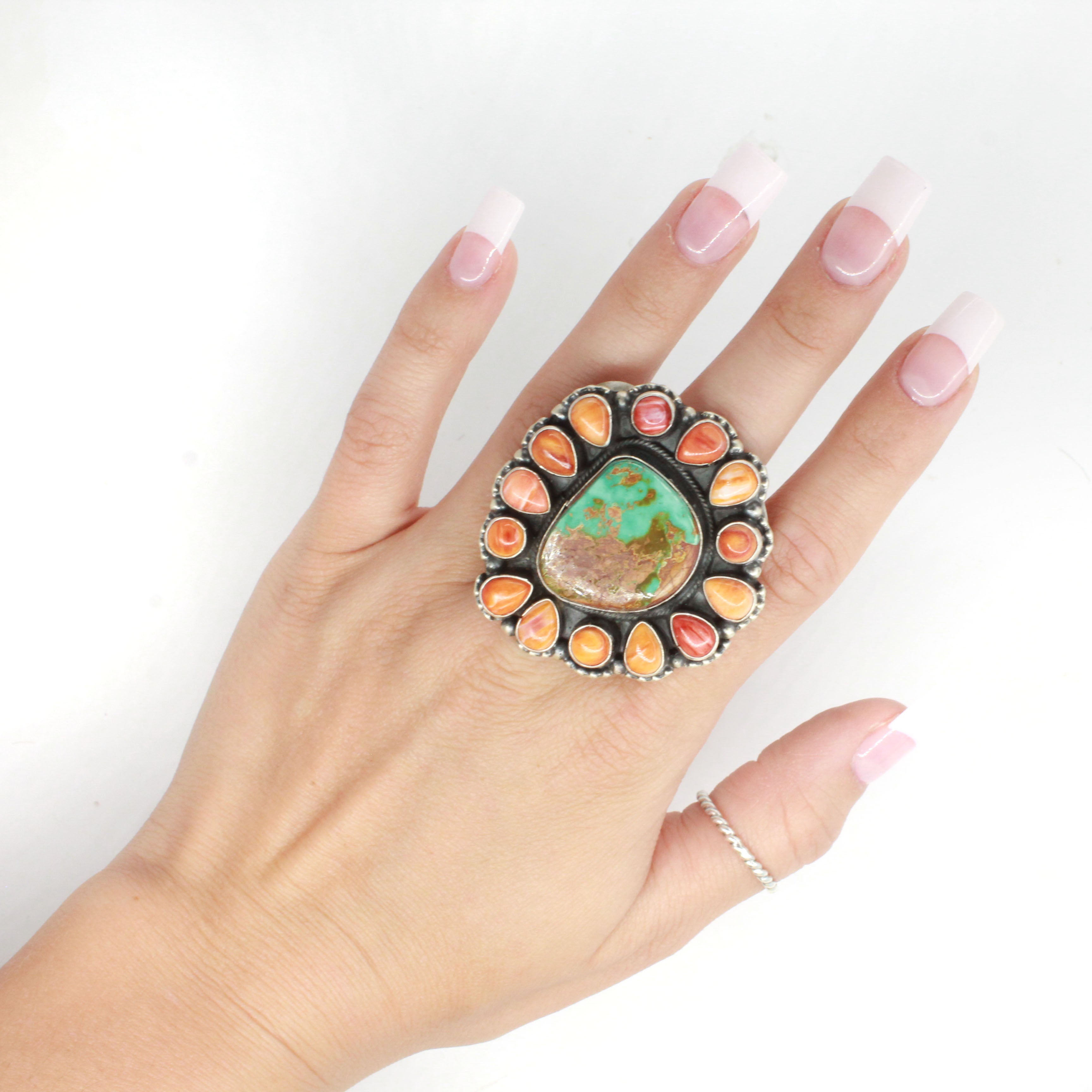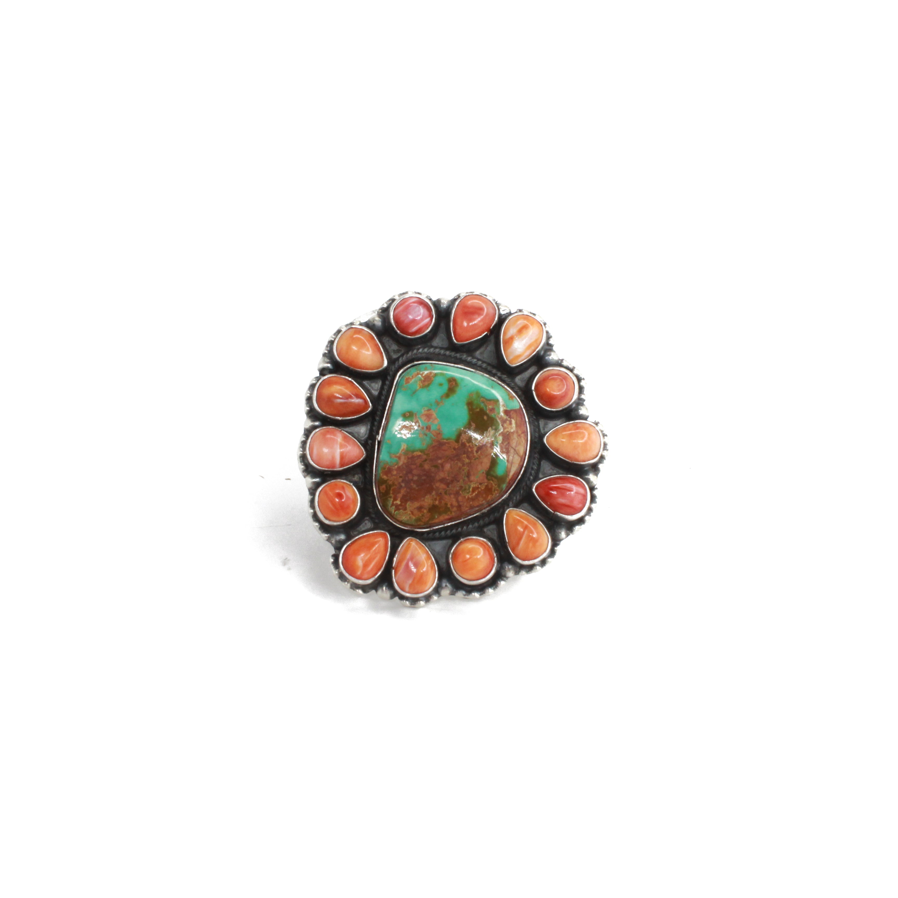Sheila Becenti is a talented Navajo artist renowned for her outstanding craftsmanship, especially in her cluster work jewelry. With a keen eye for high-quality stones, she creates stunning statement pieces that beautifully reflect her cultural heritage and artistic vision. Her designs artfully blend traditional techniques with a modern twist, resulting in work that is highly coveted within the Native American art community. Sheila's dedication to her craft not only honors her roots but also pushes the boundaries of contemporary Native American jewelry.
