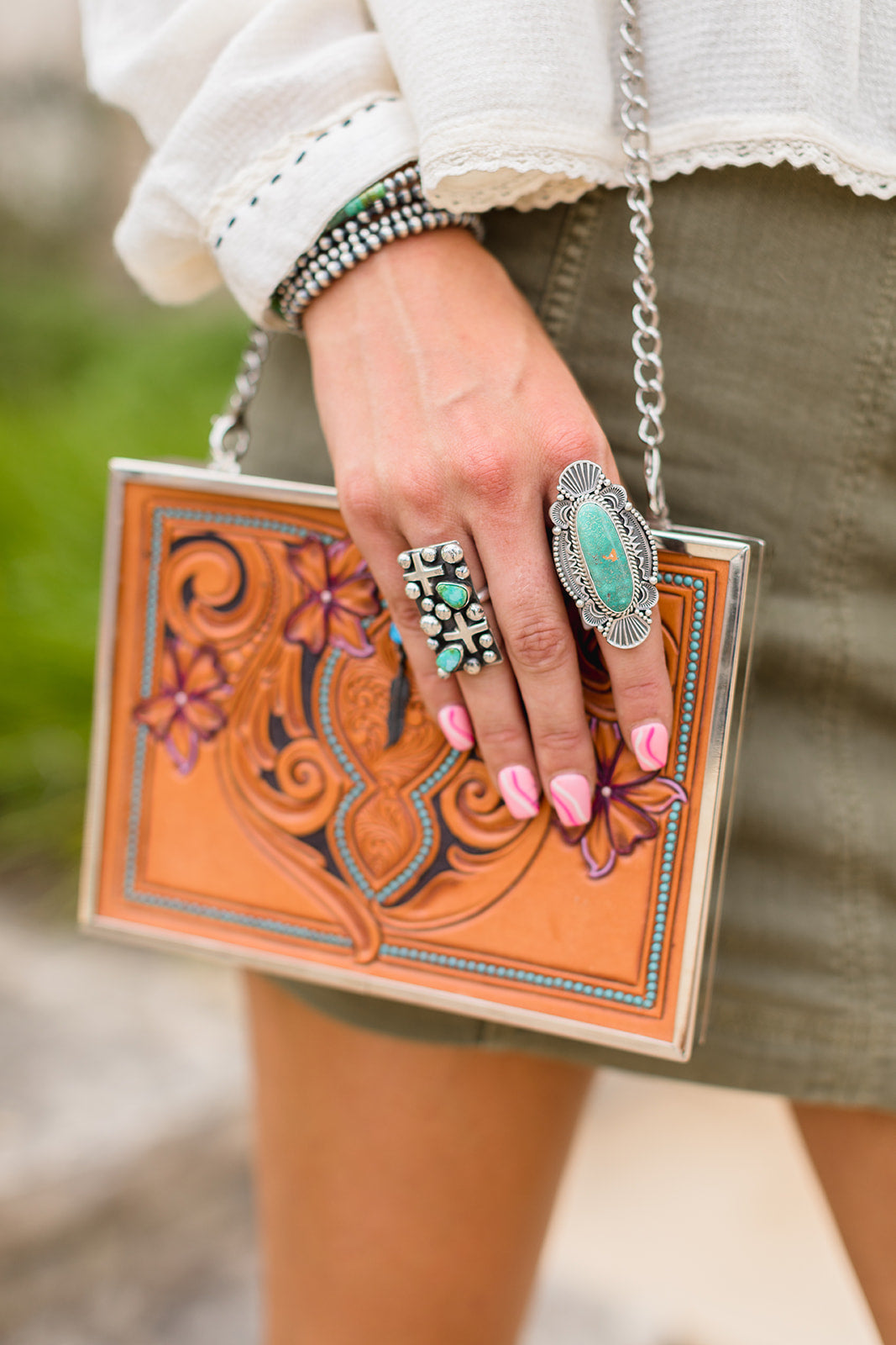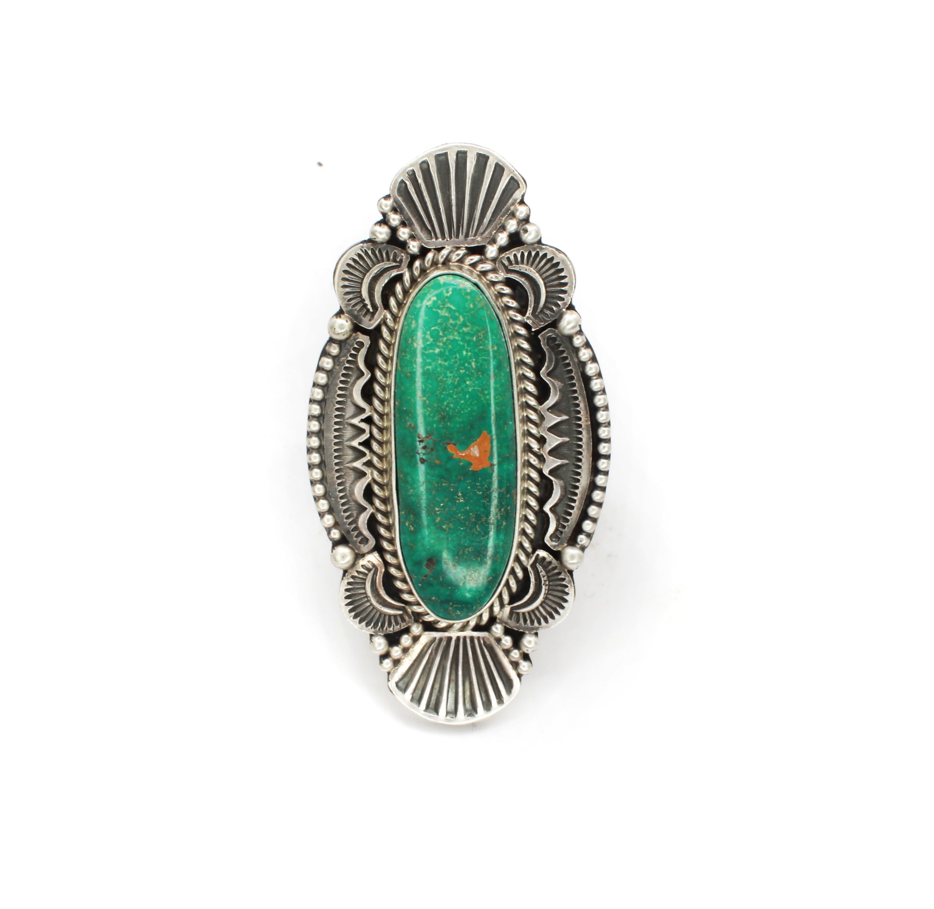 Michael Calladitto is renowned for his traditional Navajo-style jewelry, characterized by the use of sterling silver and turquoise, featuring intricately stamped designs. He has a deep appreciation for turquoise, believing that the stone enhances his creativity and skill at the bench. Most of the decorative stamps he employs in his jewelry are handcrafted from tempered steel sourced from old car engines. Michael repurposes components like piston rods and valve stems, meticulously cutting designs into the steel with tiny files and other tools to create his unique stamps.