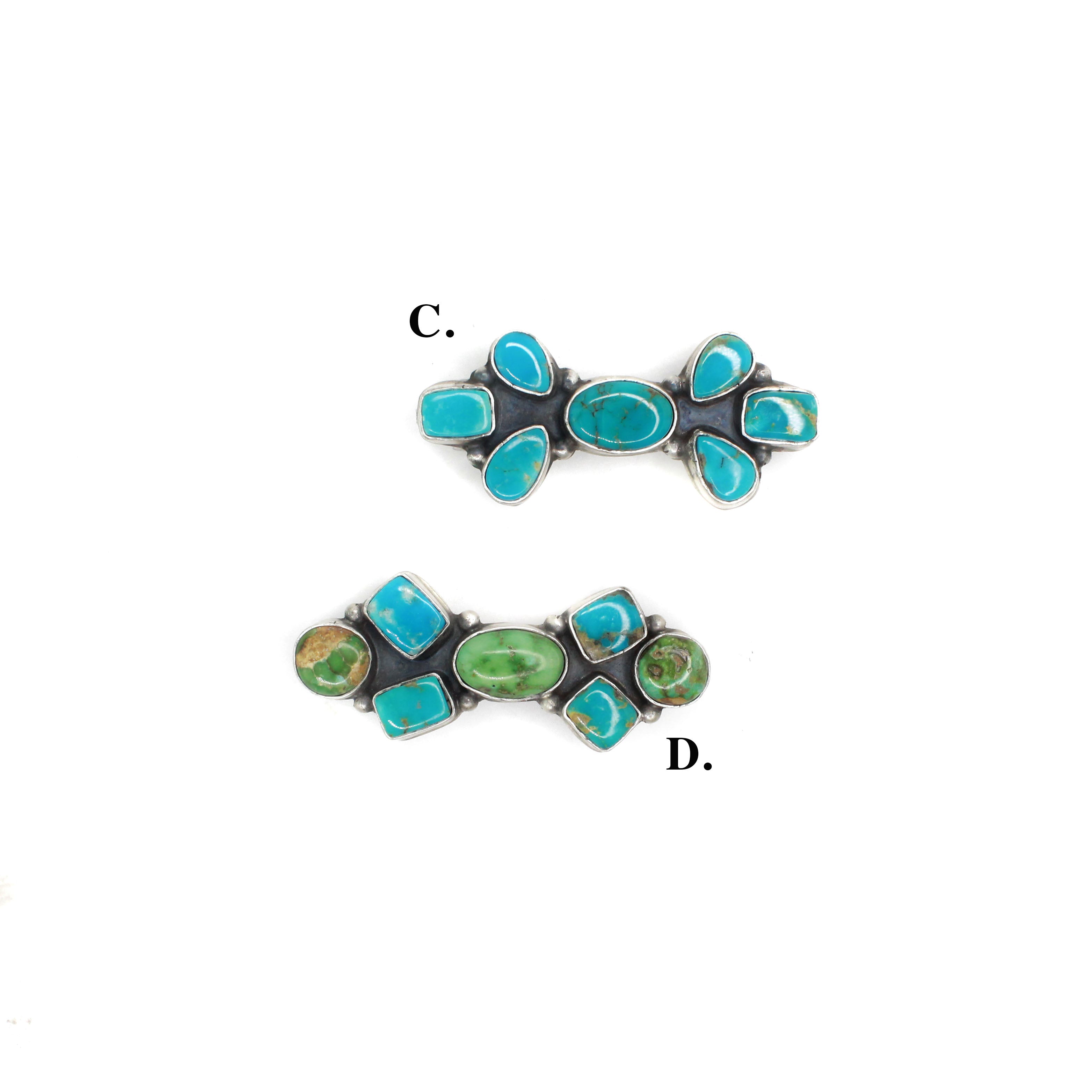 Sonoran turquoise, mined from the Campitos Mountain near Cananea, Sonora, Mexico. This region produces several distinctive types, including Sonoran Gold, known for its vibrant colors like aqua blue, lime, and two-tone blue and green with a golden-brown matrix; Sonoran Rose, a natural bright blue turquoise; and Sonoran Blue, valued for its hardness, shiny pyrite flakes, and black oxide veins.