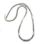 Creating hand-rolled silver beads is a celebrated tradition among Navajo silversmiths and an icon of Navajo jewelry. Handmade beads are meticulously crafted, with each bead being the result of an extremely labor-intensive process. These beads are shaped by hand using tools such as hammers, pliers, and files. The lengthy process includes melting, rolling, cutting, shaping, soldering & filing each sterling silver bead by BY HAND. This meticulous time honored method is a highly skilled trade that few artists have mastered.