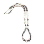 Creating hand-rolled silver beads is a celebrated tradition among Navajo silversmiths and an icon of Navajo jewelry. Handmade beads are meticulously crafted, with each bead being the result of an extremely labor-intensive process. These beads are shaped by hand using tools such as hammers, pliers, and files. The lengthy process includes melting, rolling, cutting, shaping, soldering & filing each sterling silver bead by BY HAND. This meticulous time honored method is a highly skilled trade that few artists have mastered.